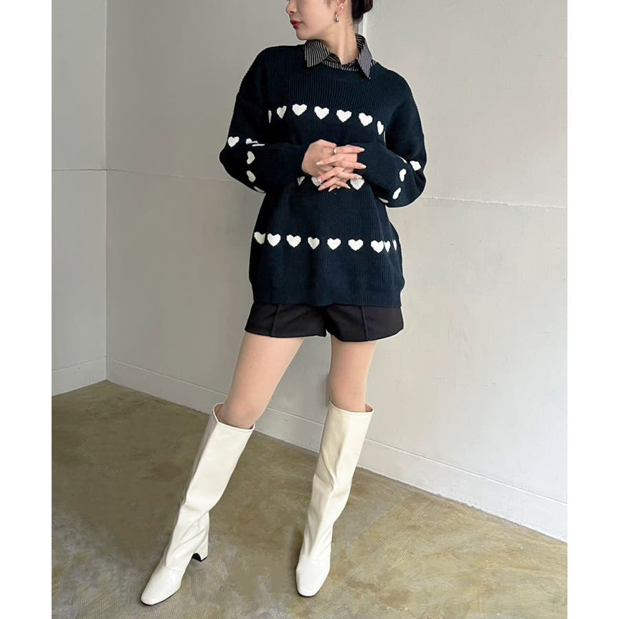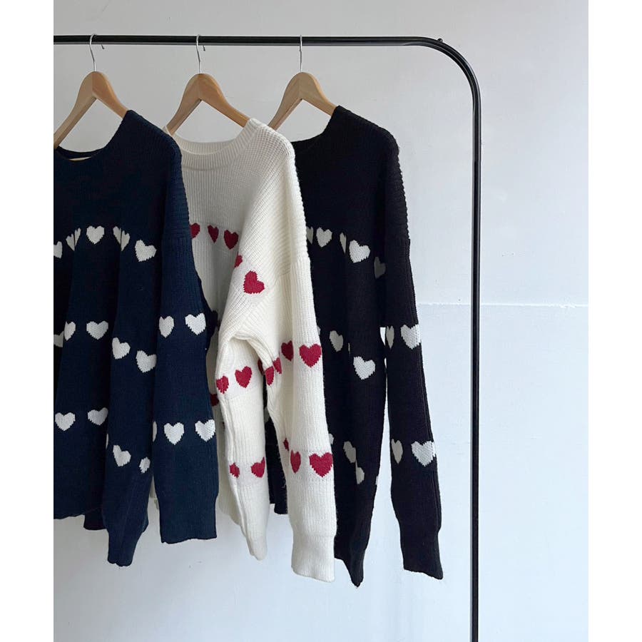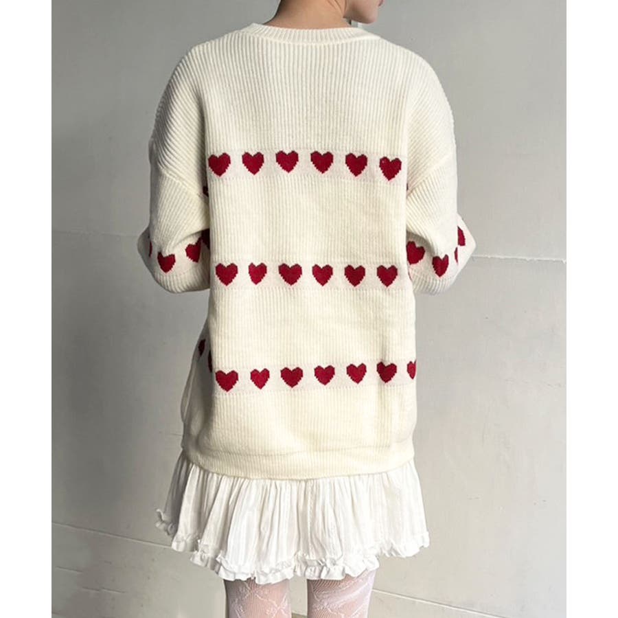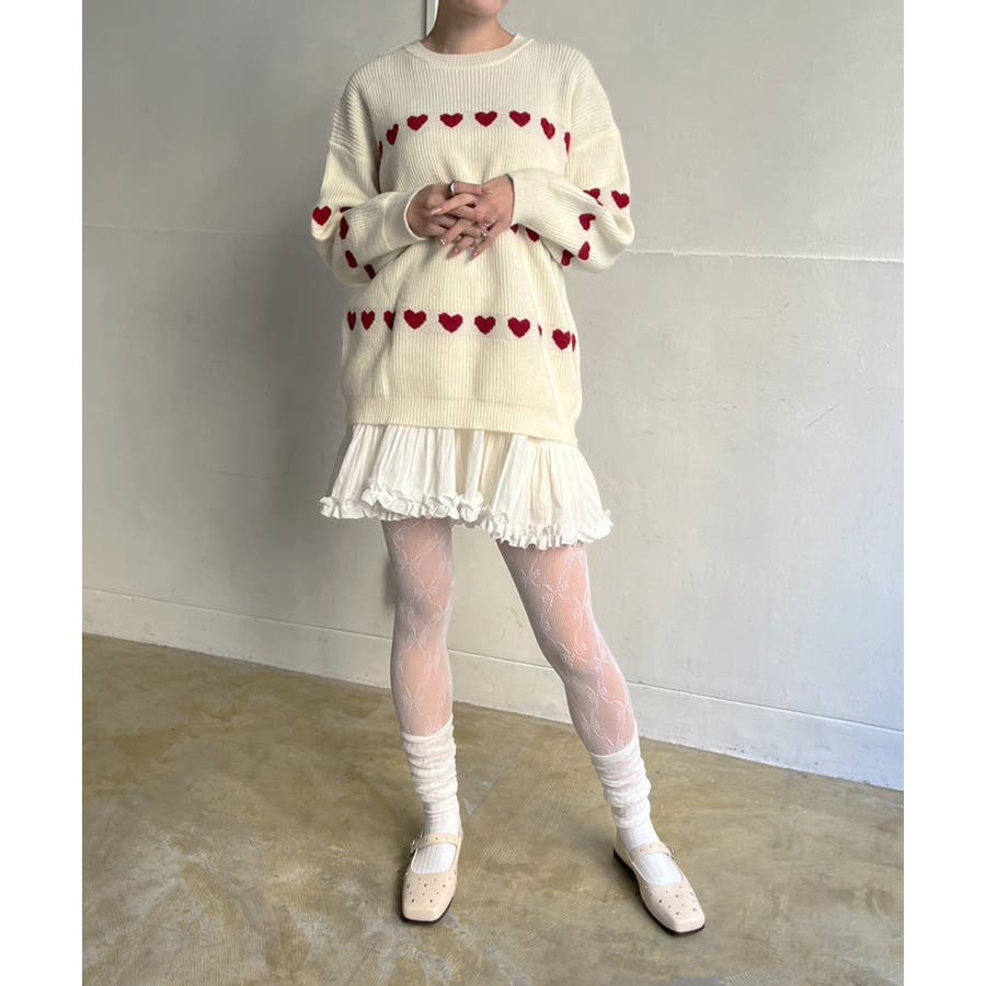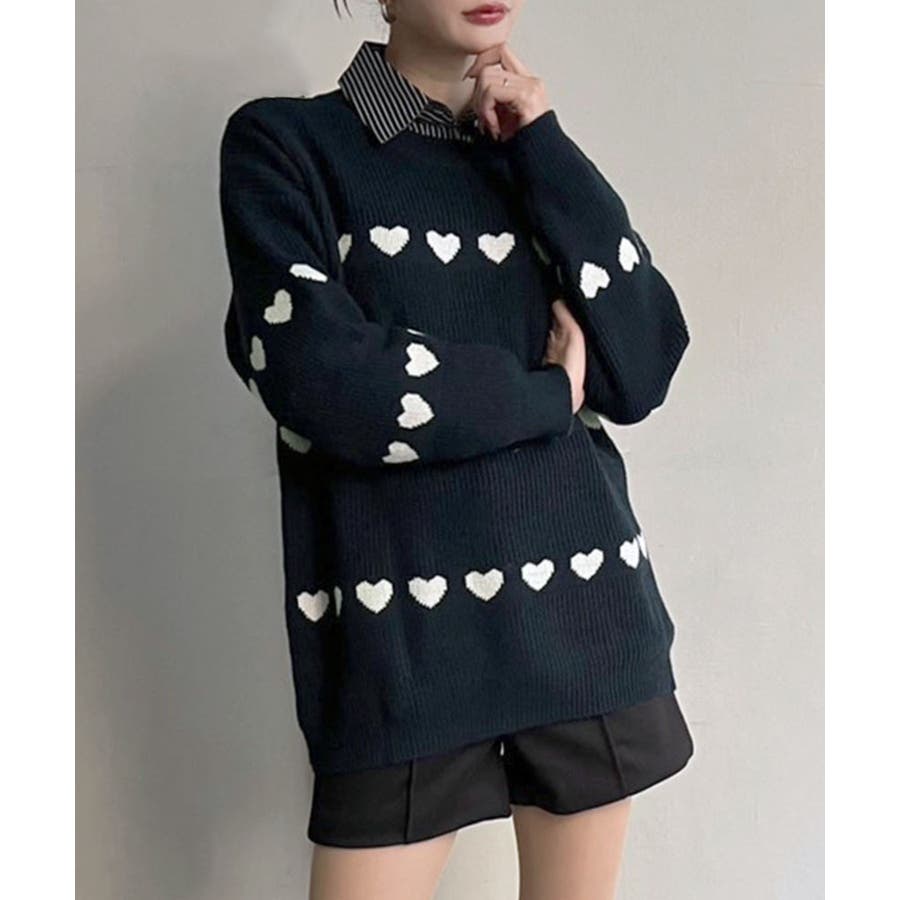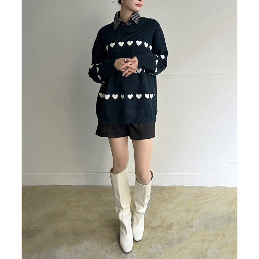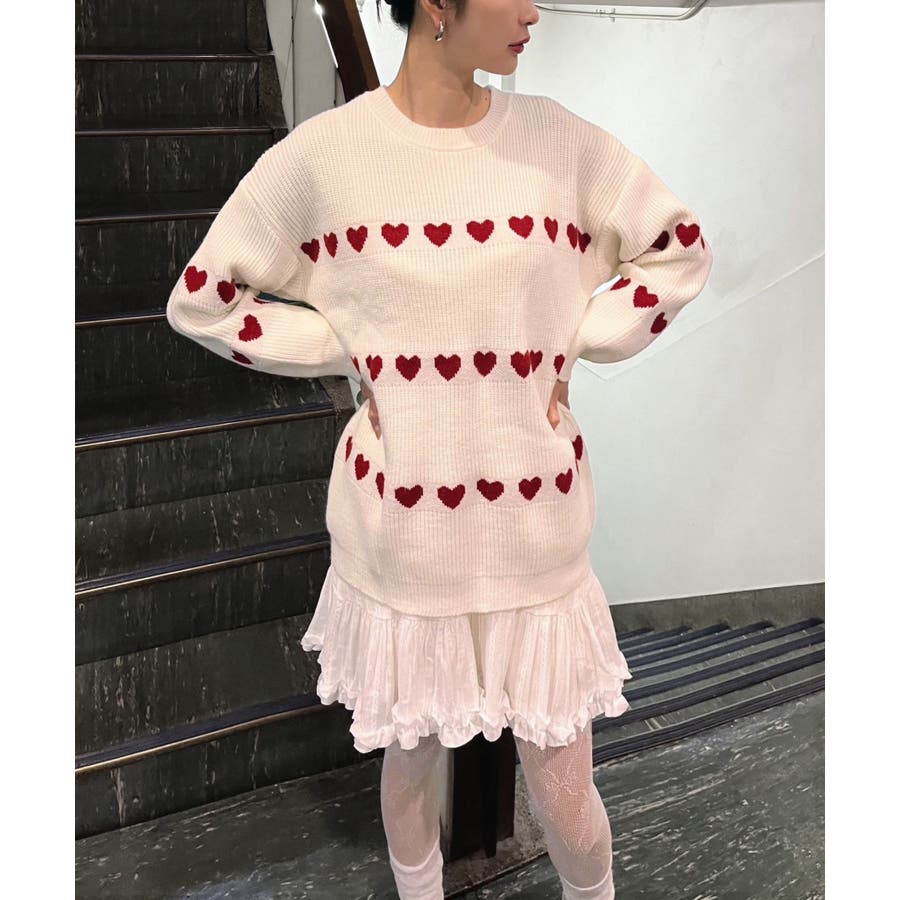 ジャガード編みのハートシェイプが目を惹くオーバーサイズニット。