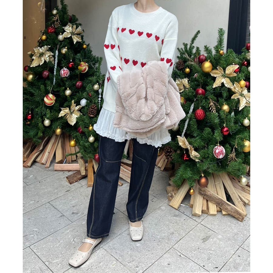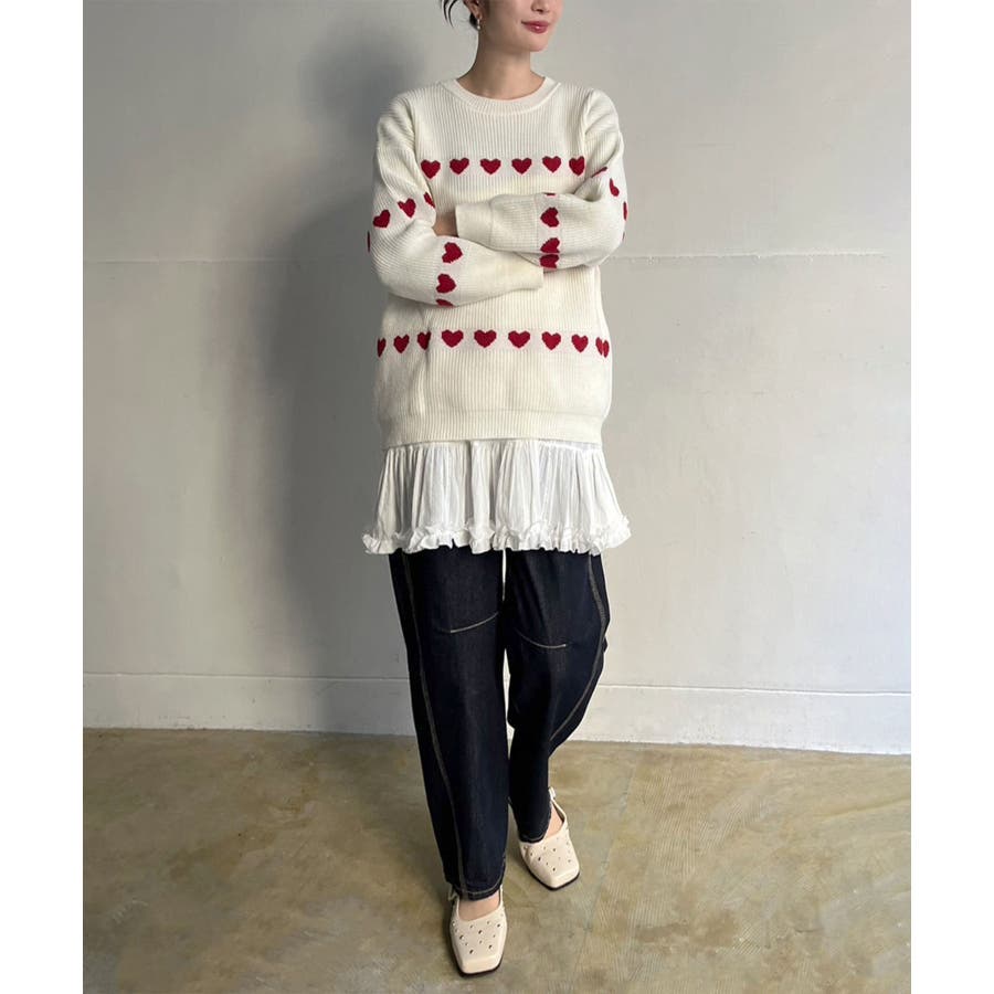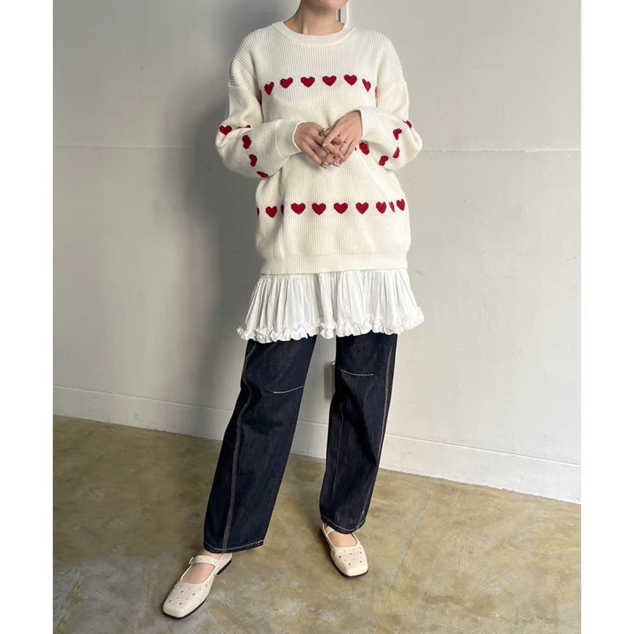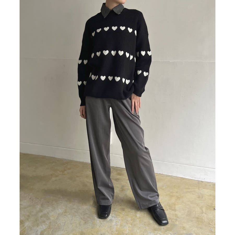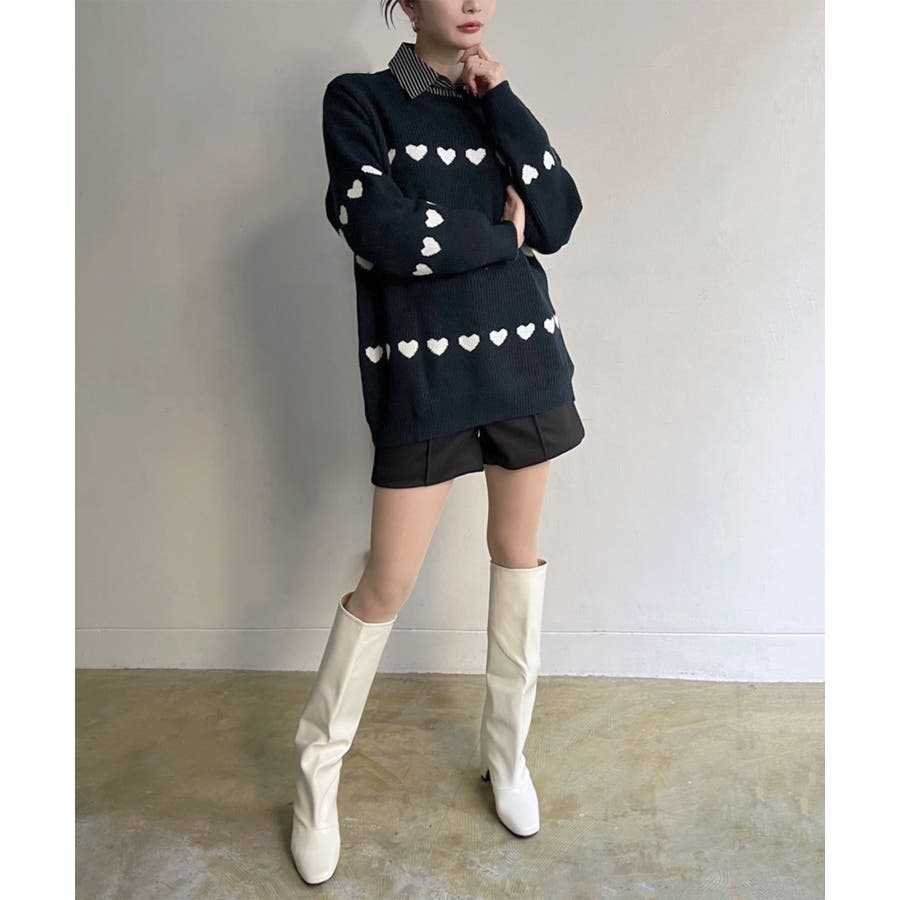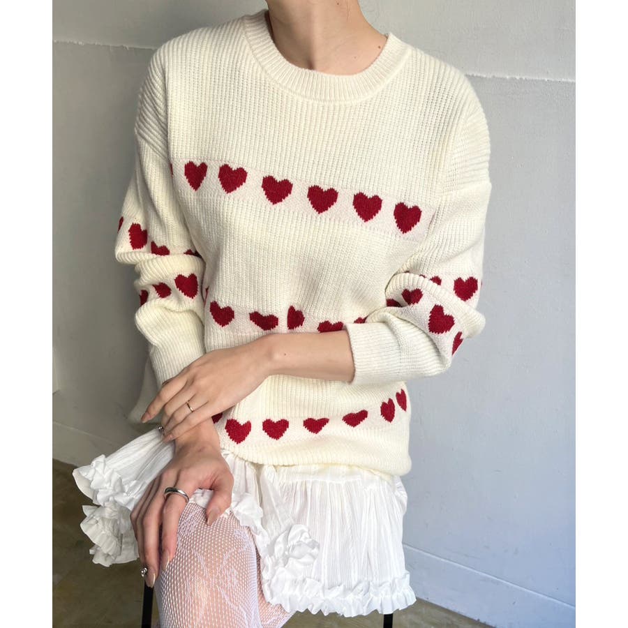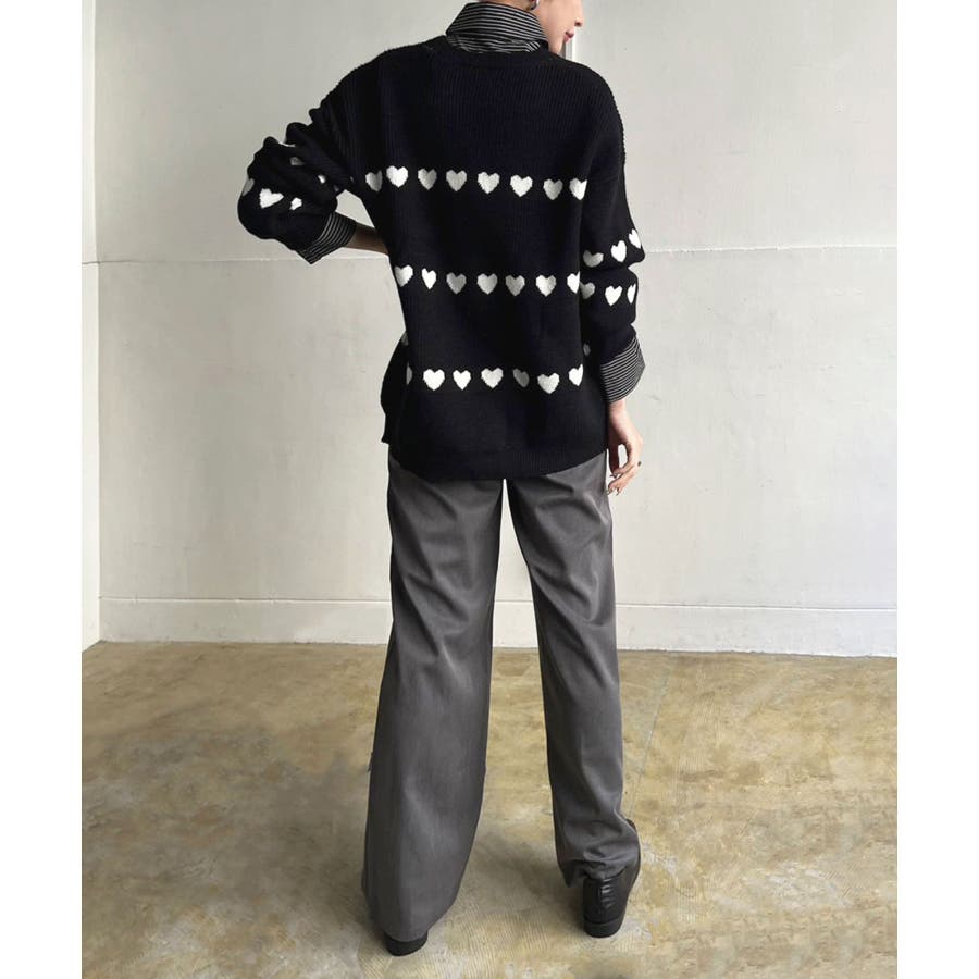 ジャガード編みのハートシェイプが目を惹くオーバーサイズニット。