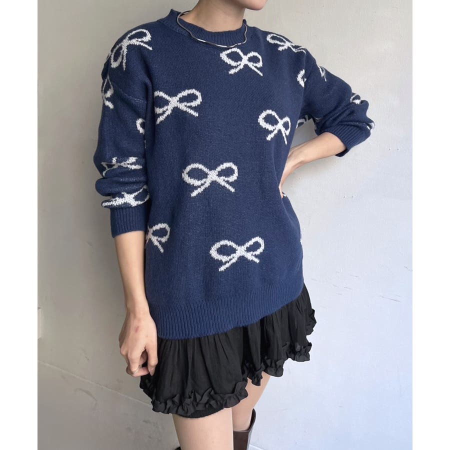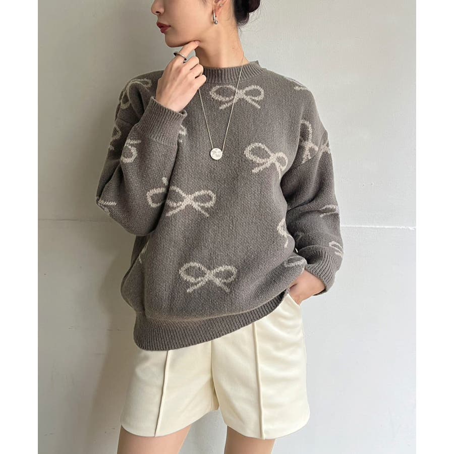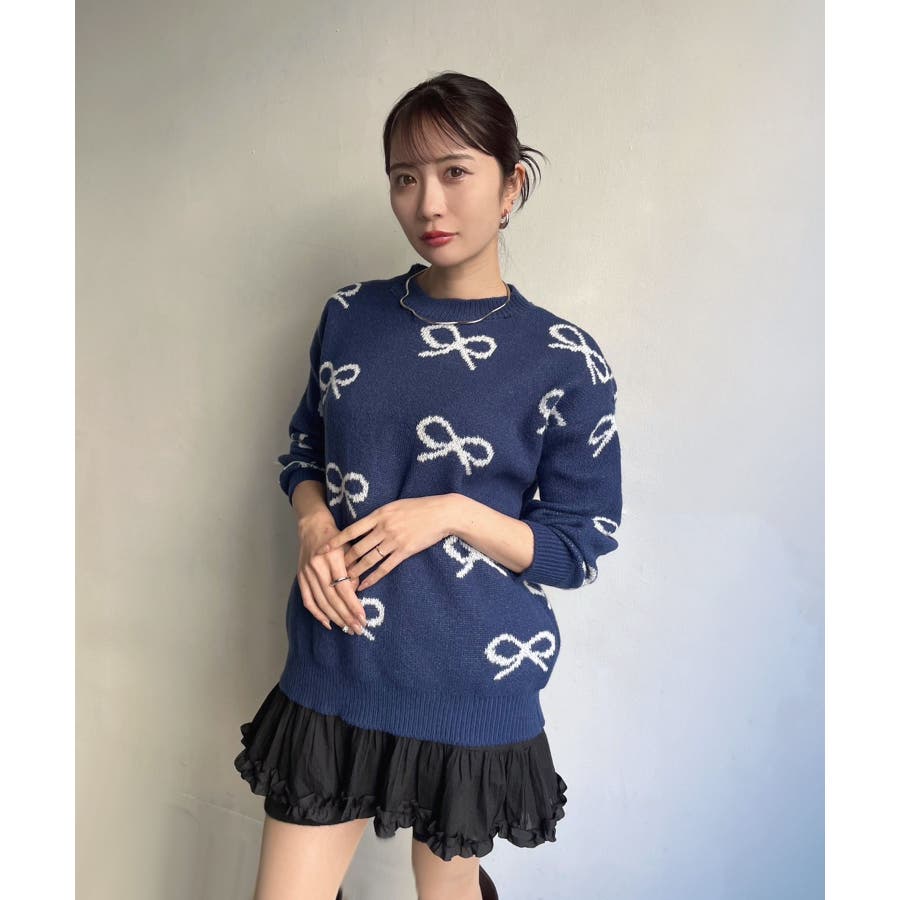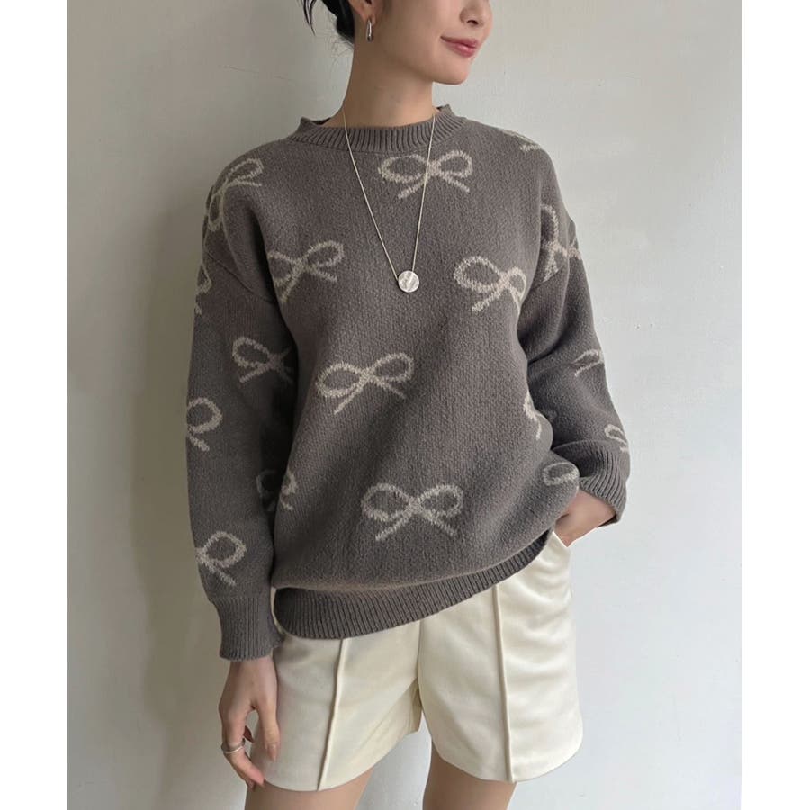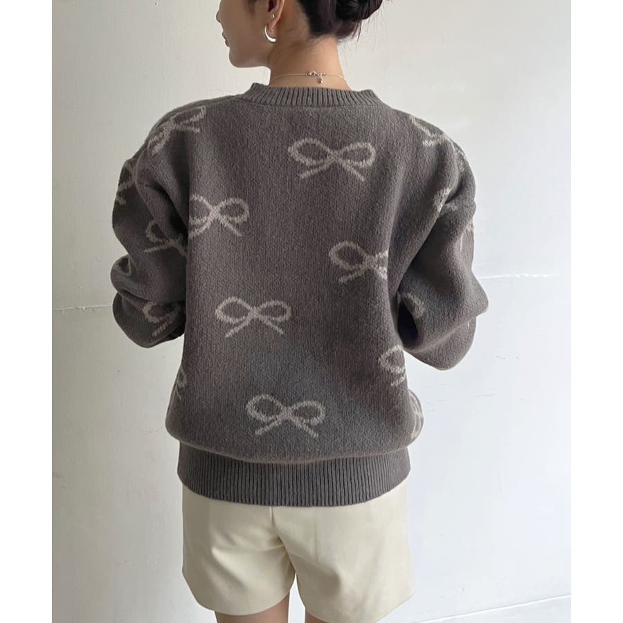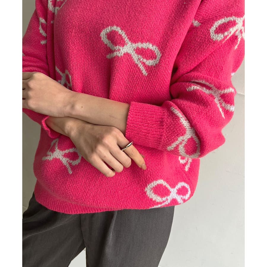 リボンジャガードニットプルオーバー