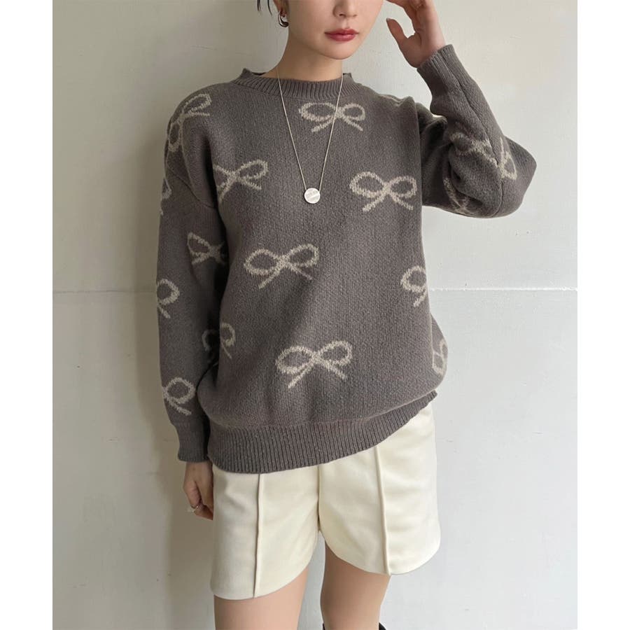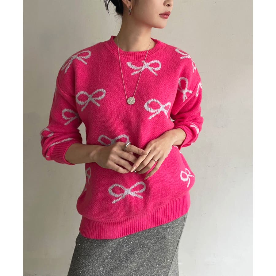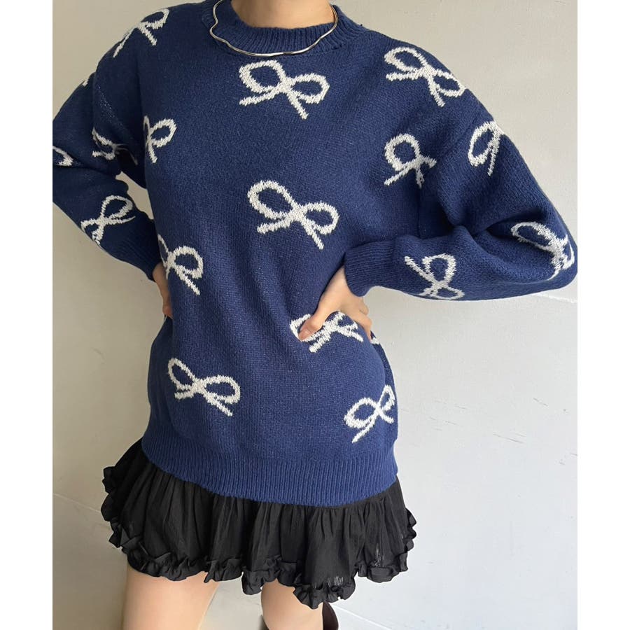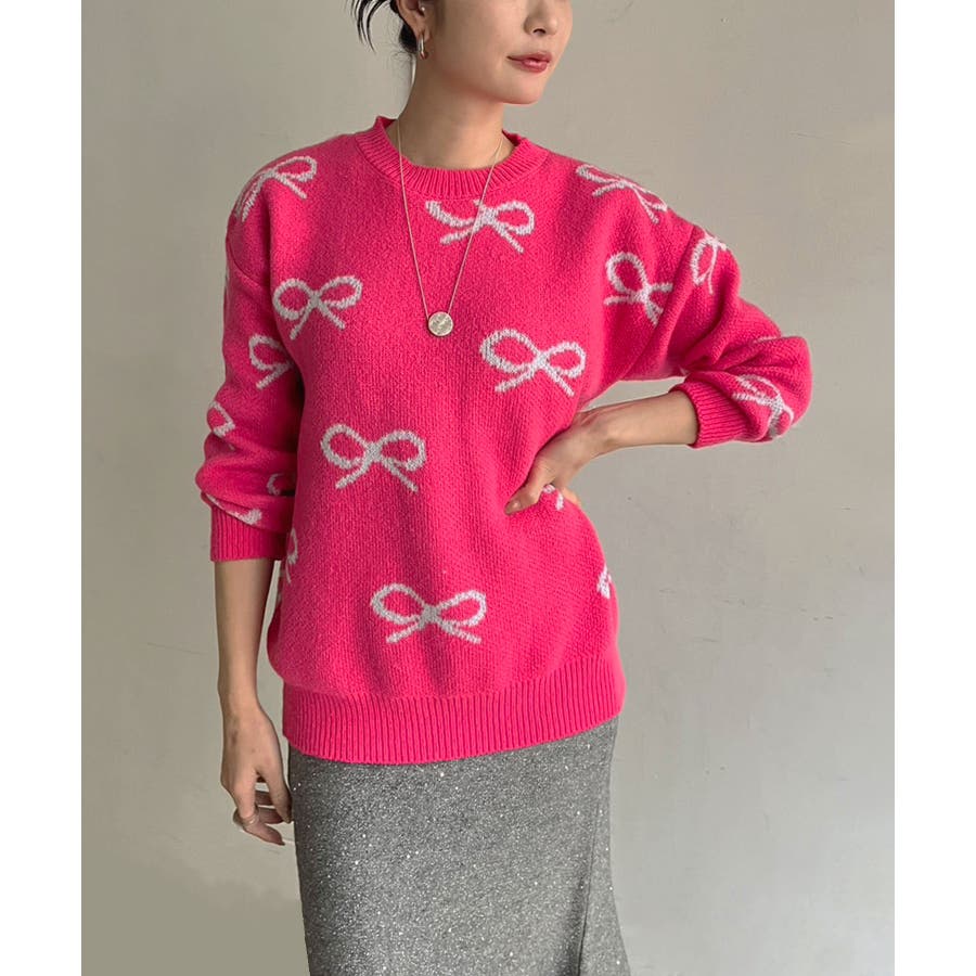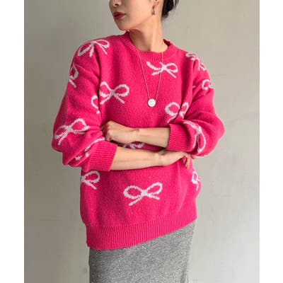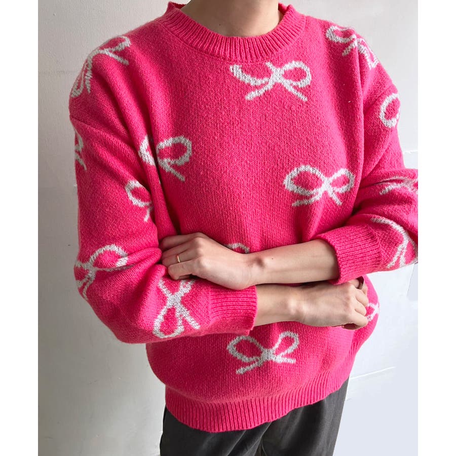 リボンジャガードニットプルオーバー