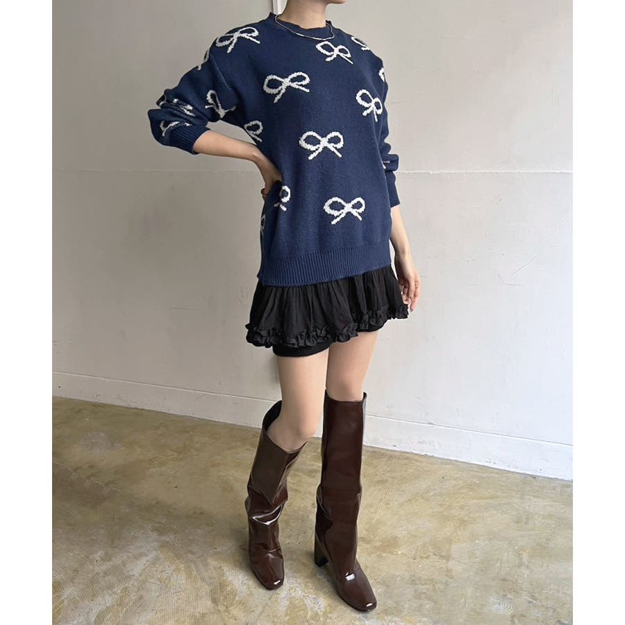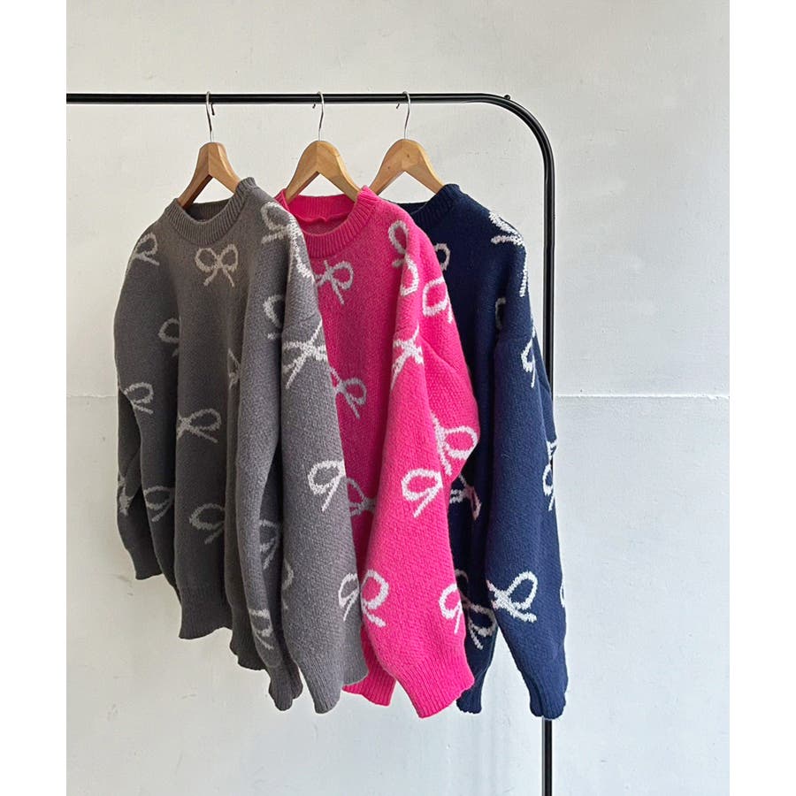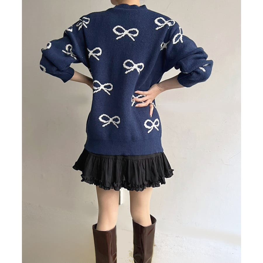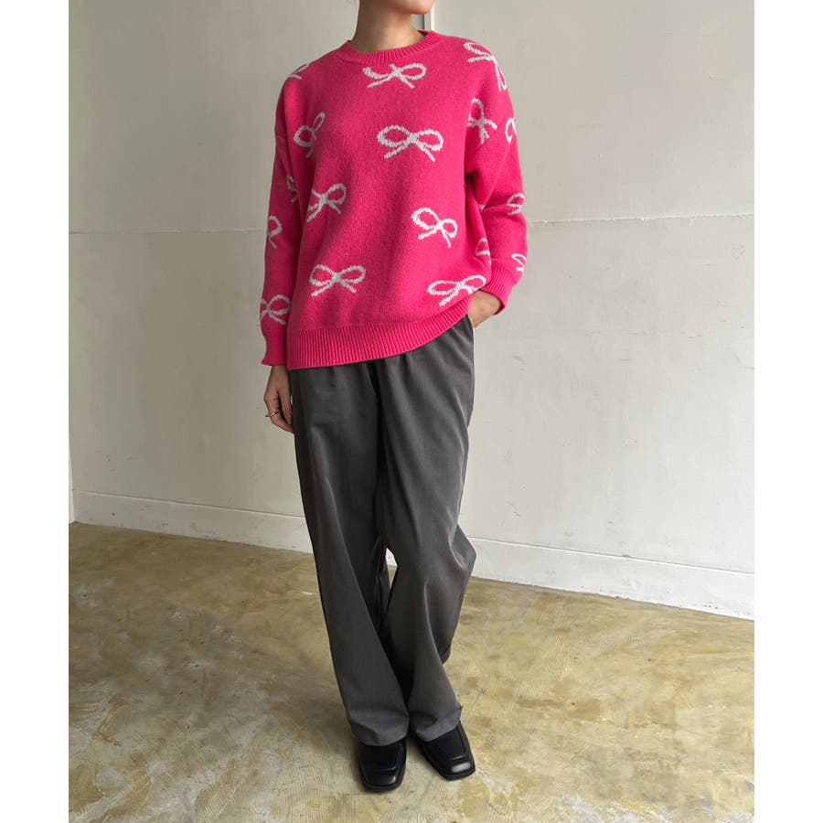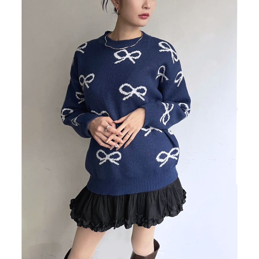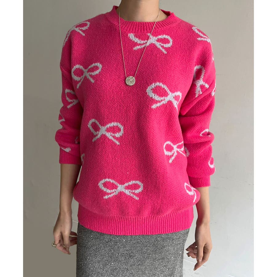 リボンジャガードニットプルオーバー
