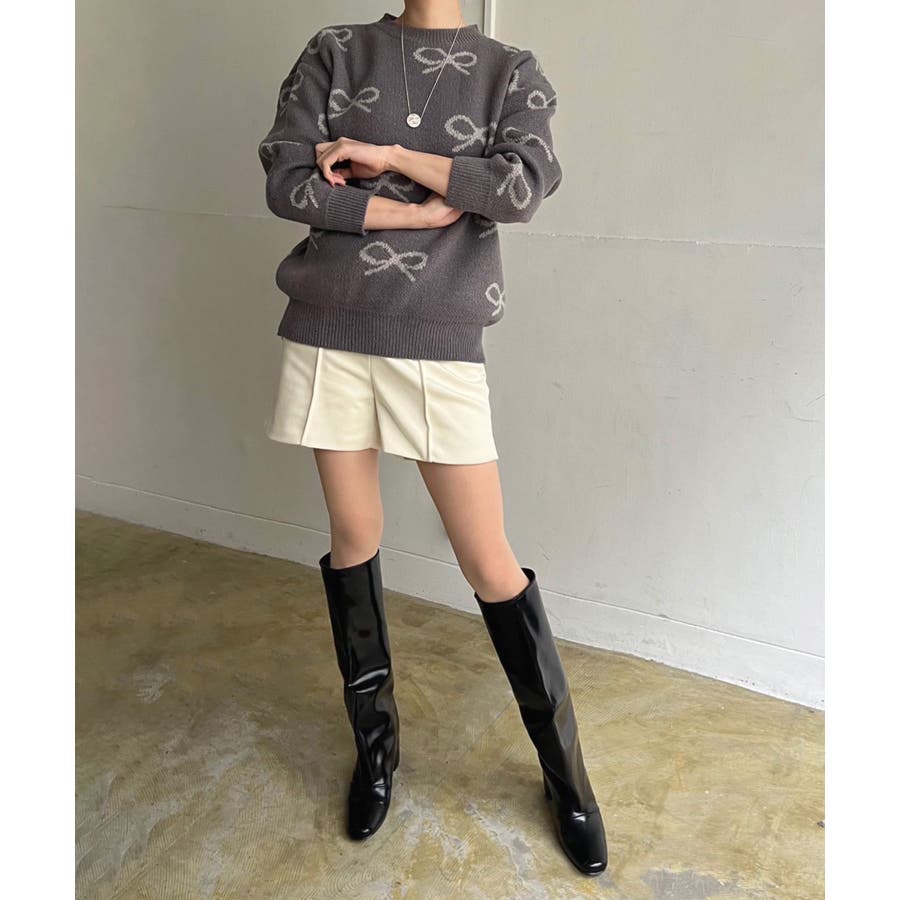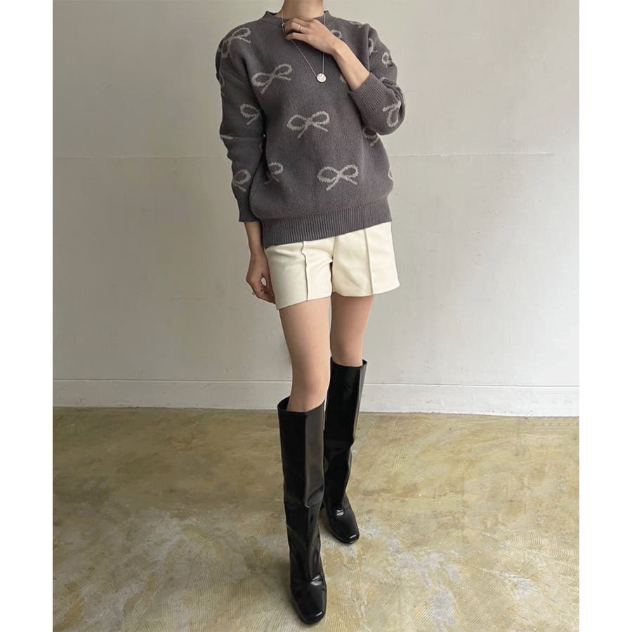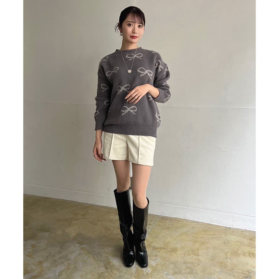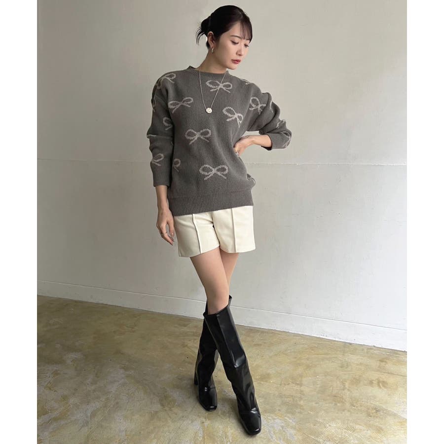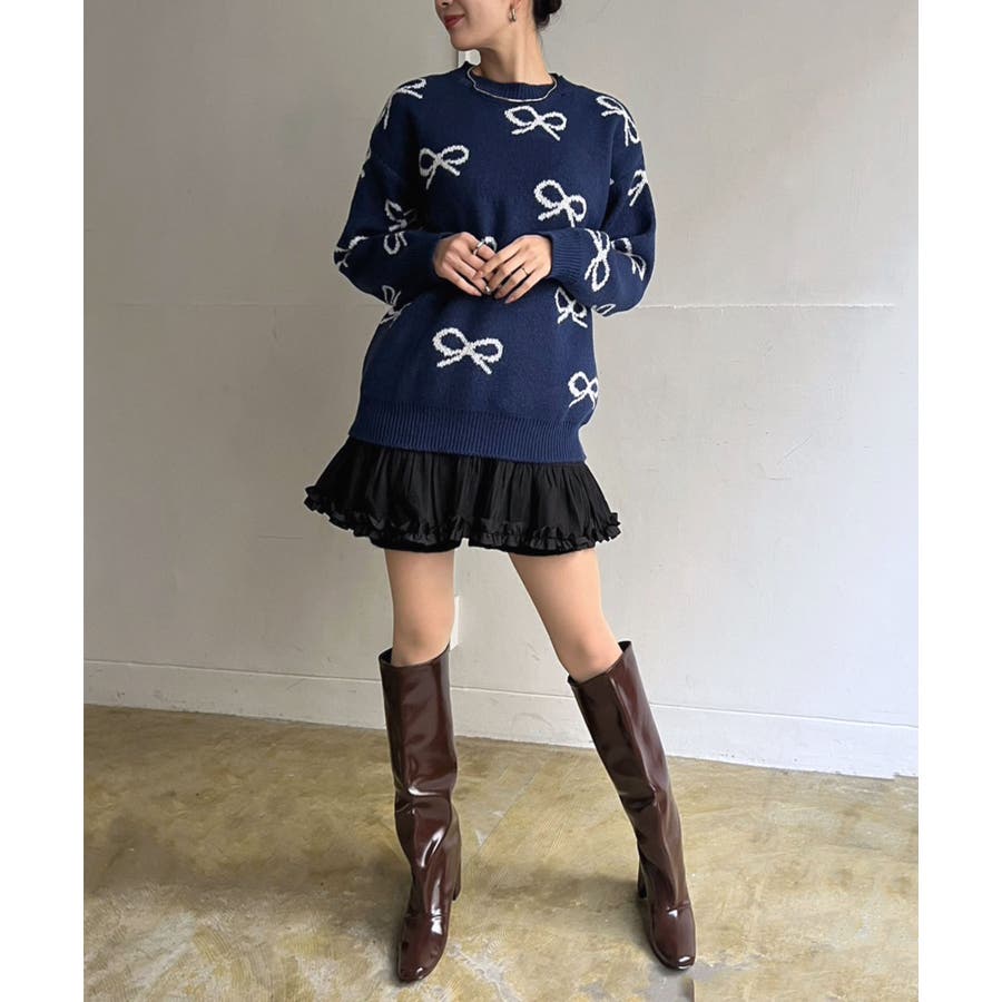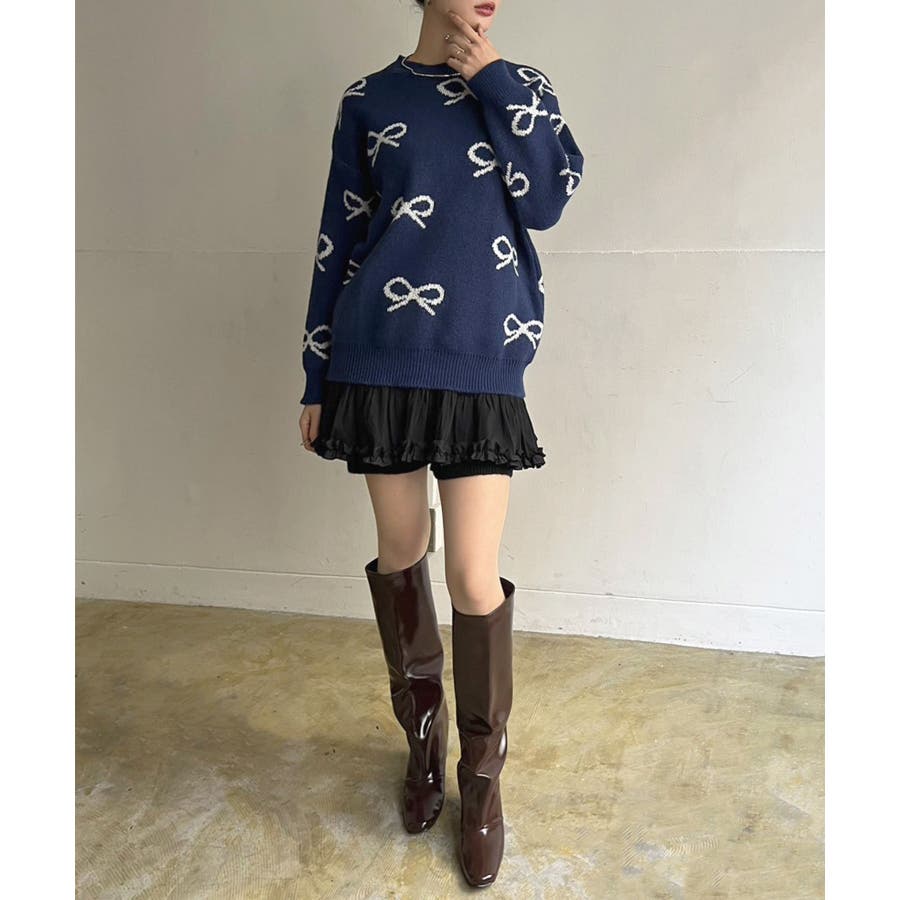 リボンジャガードニットプルオーバー