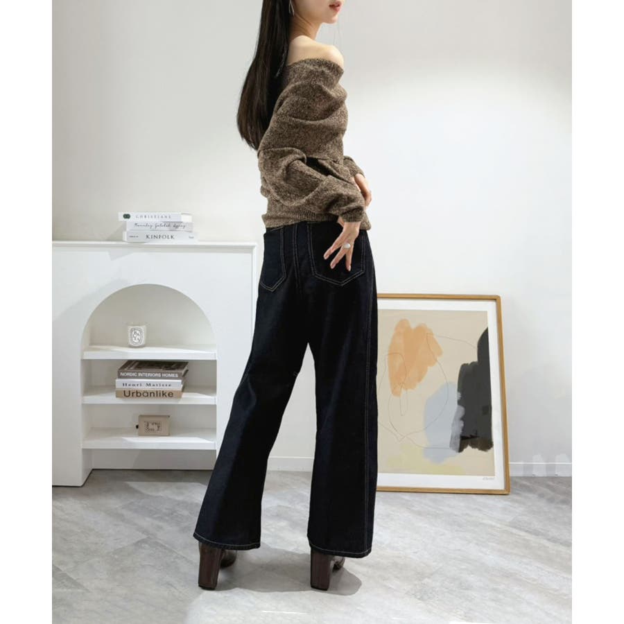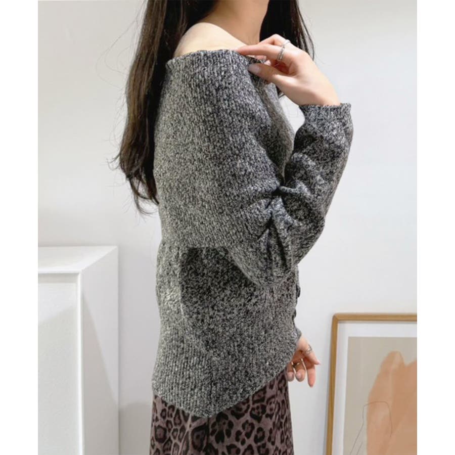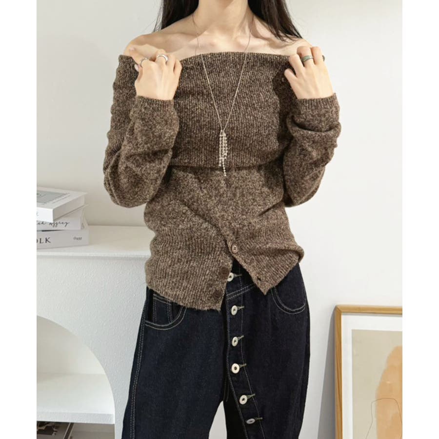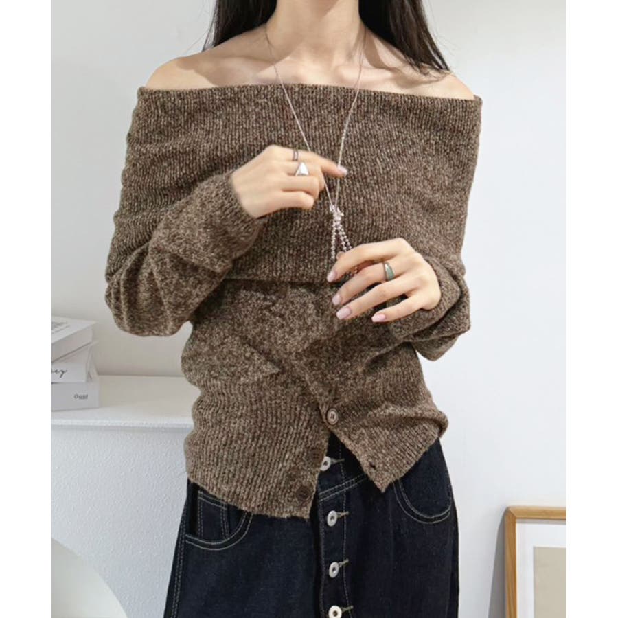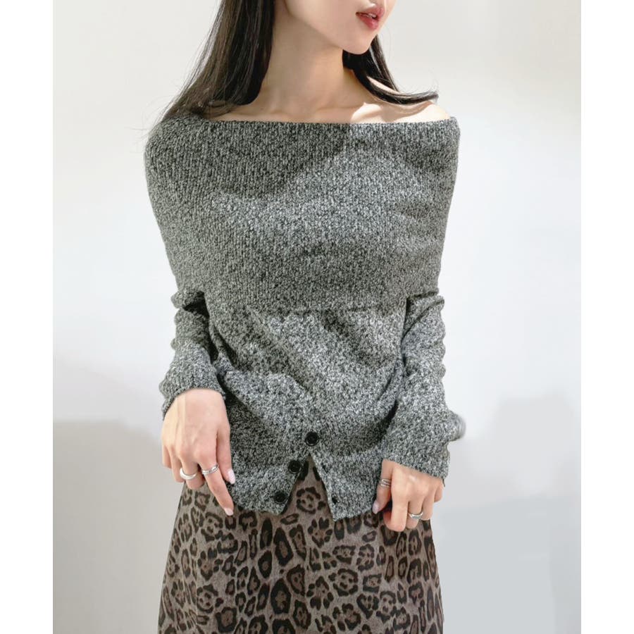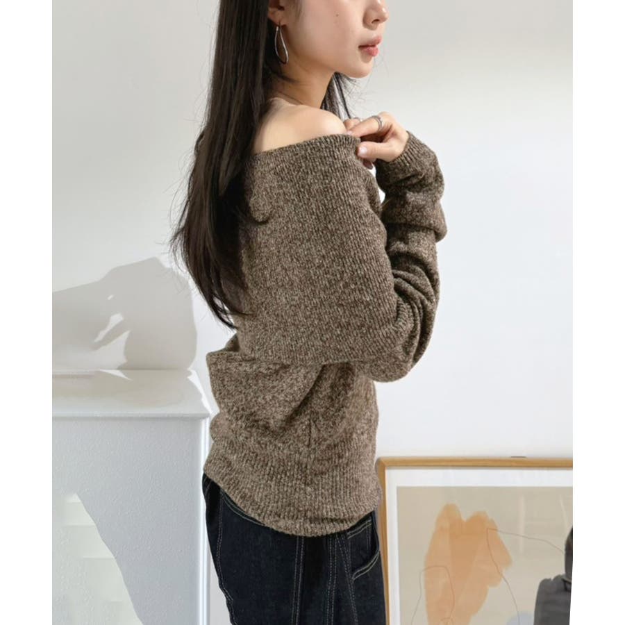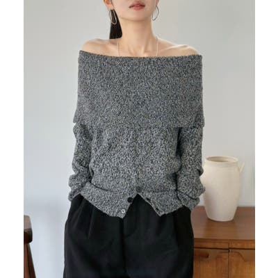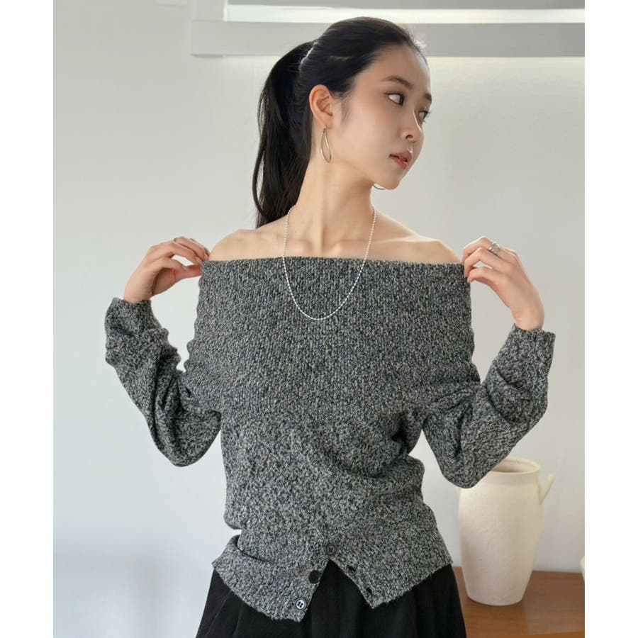 ワイドオフショルミックス編みニットトップス
