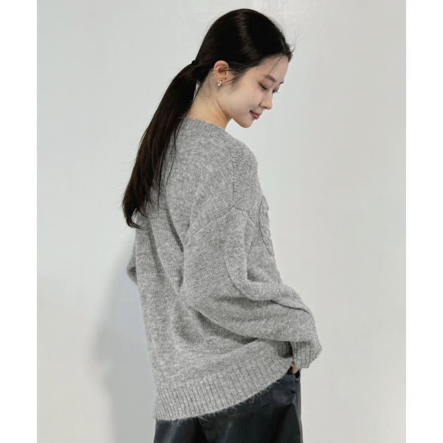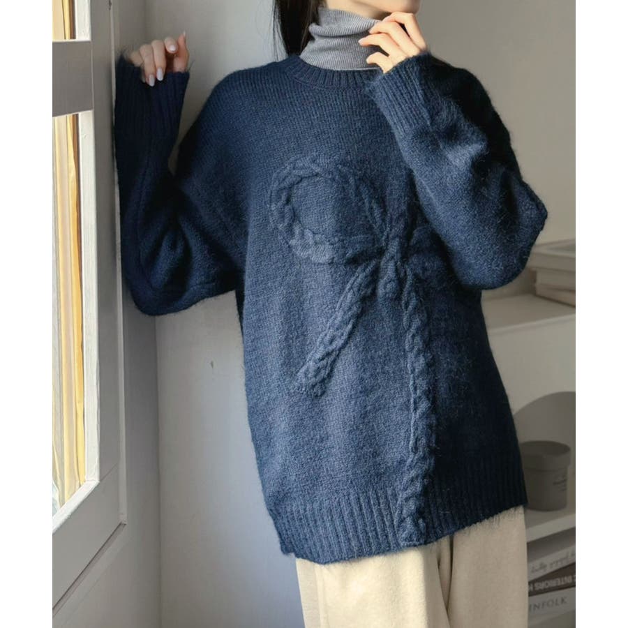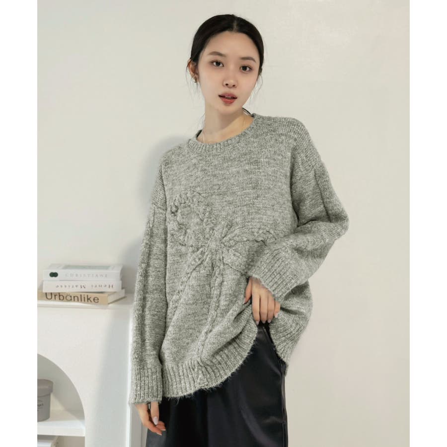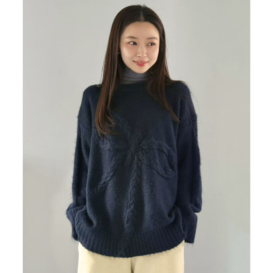 ケーブルリボンルーズニットプルオーバー