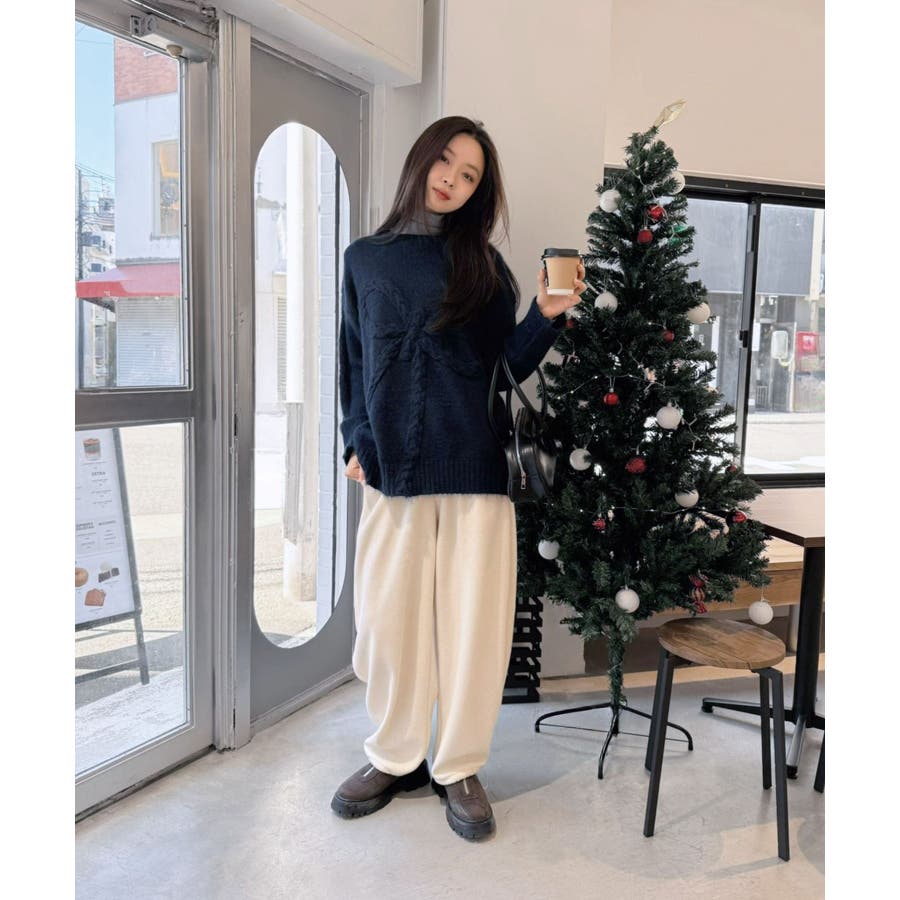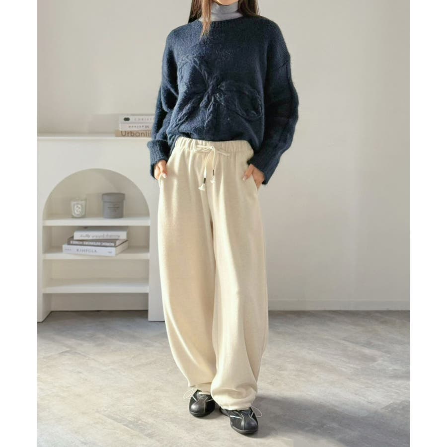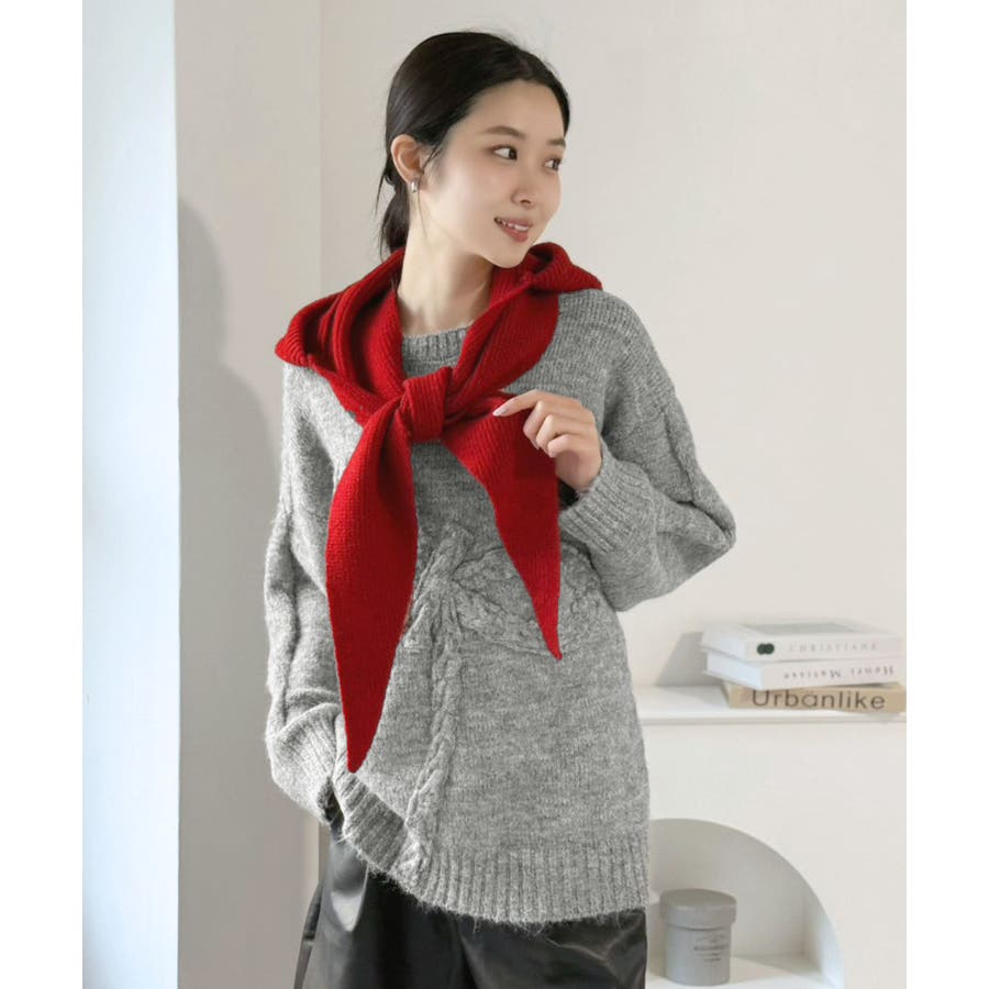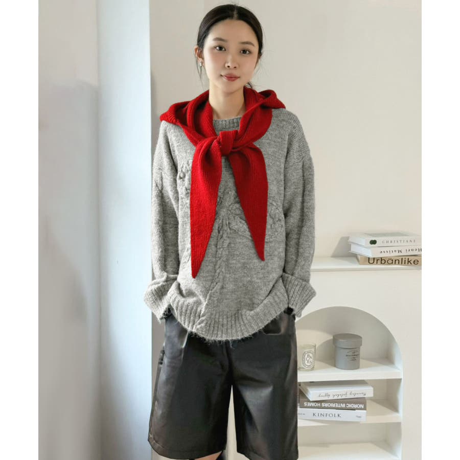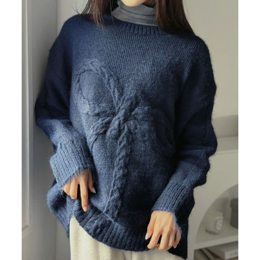 ケーブルリボンルーズニットプルオーバー