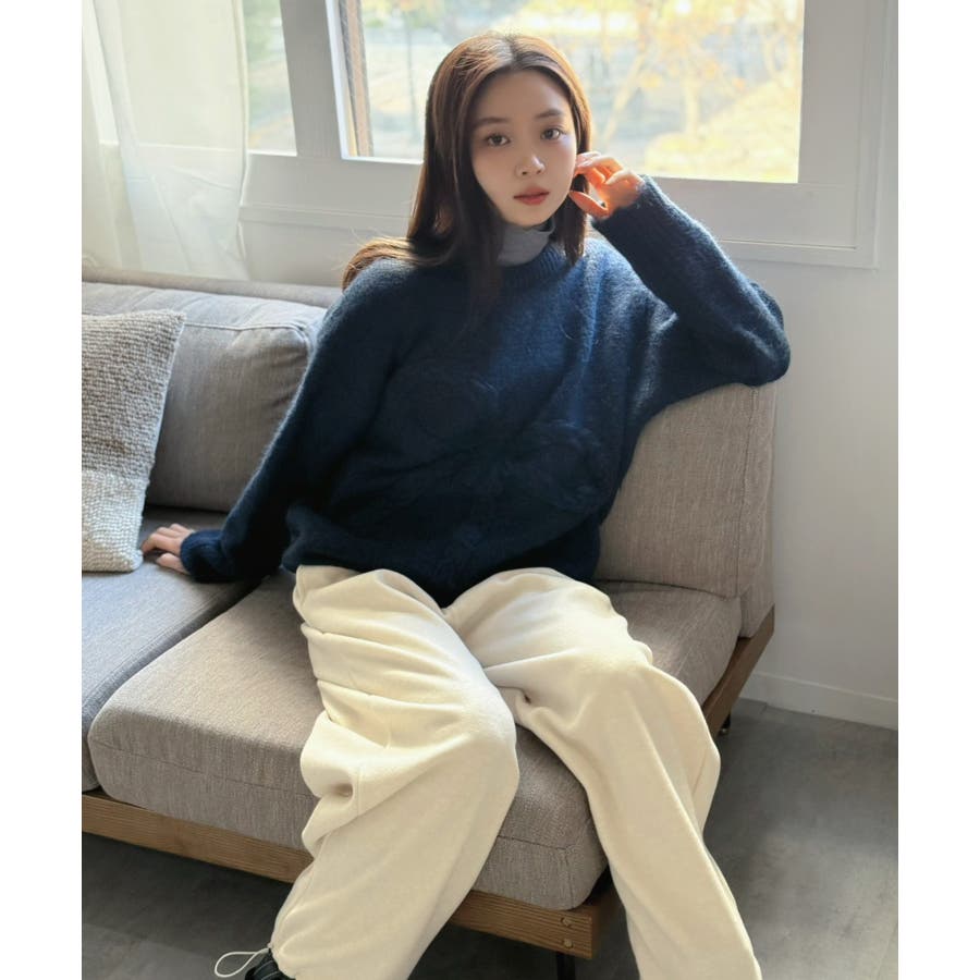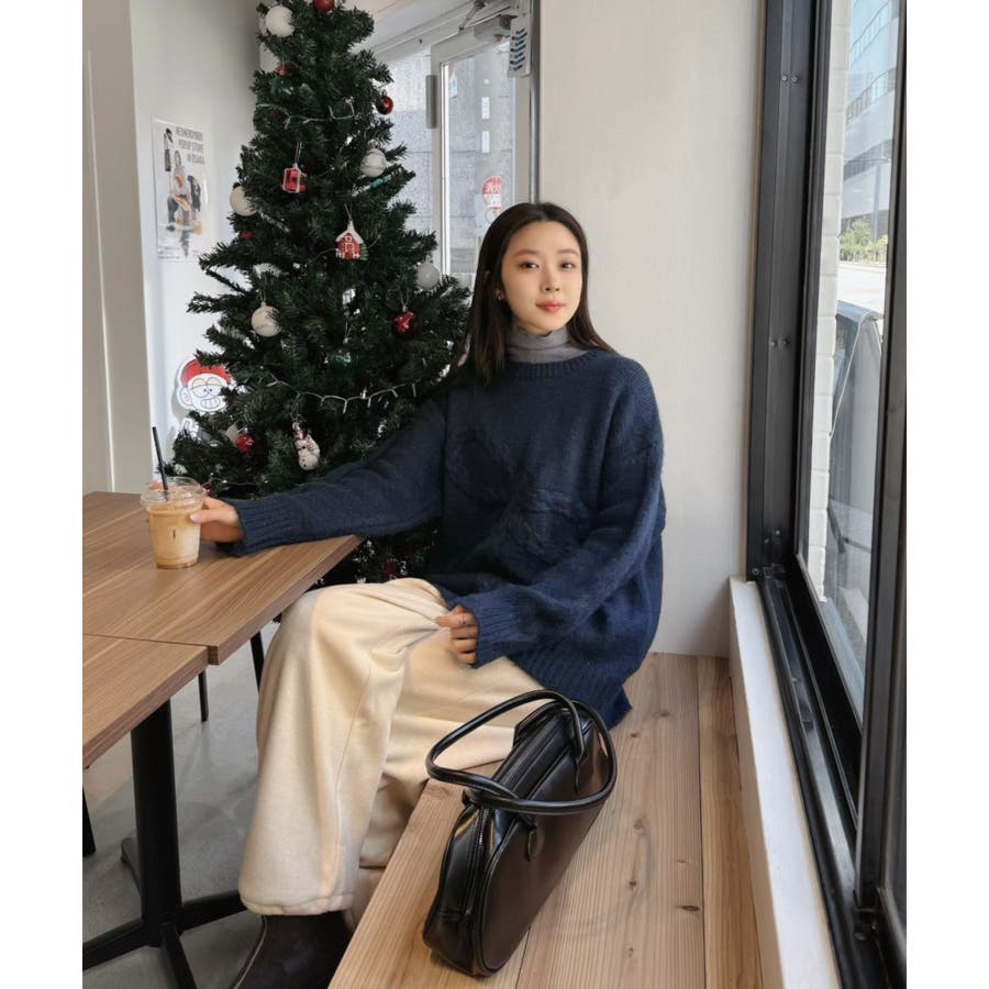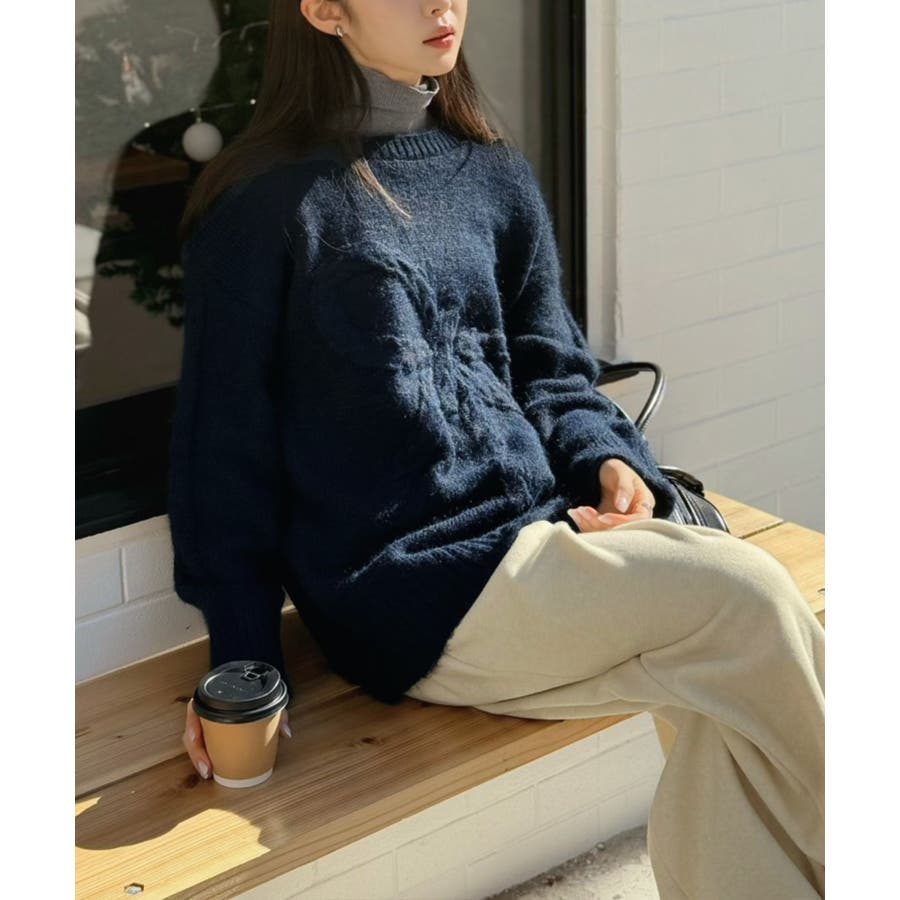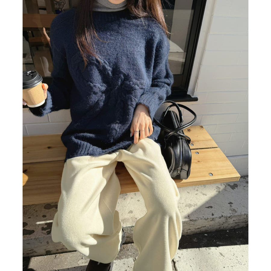 オーバーサイズのボディーにケーブル編みの