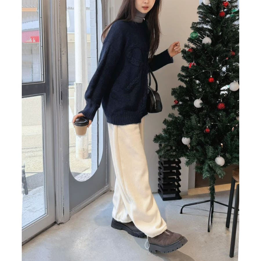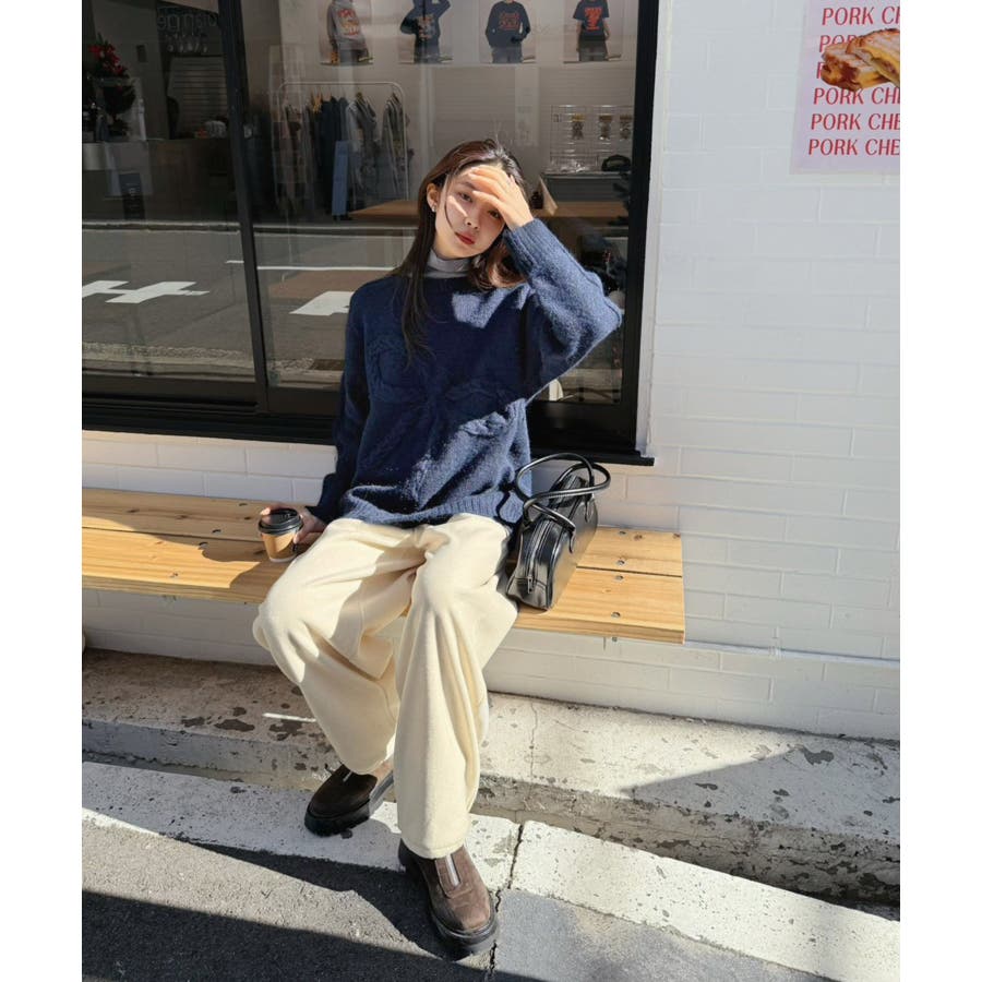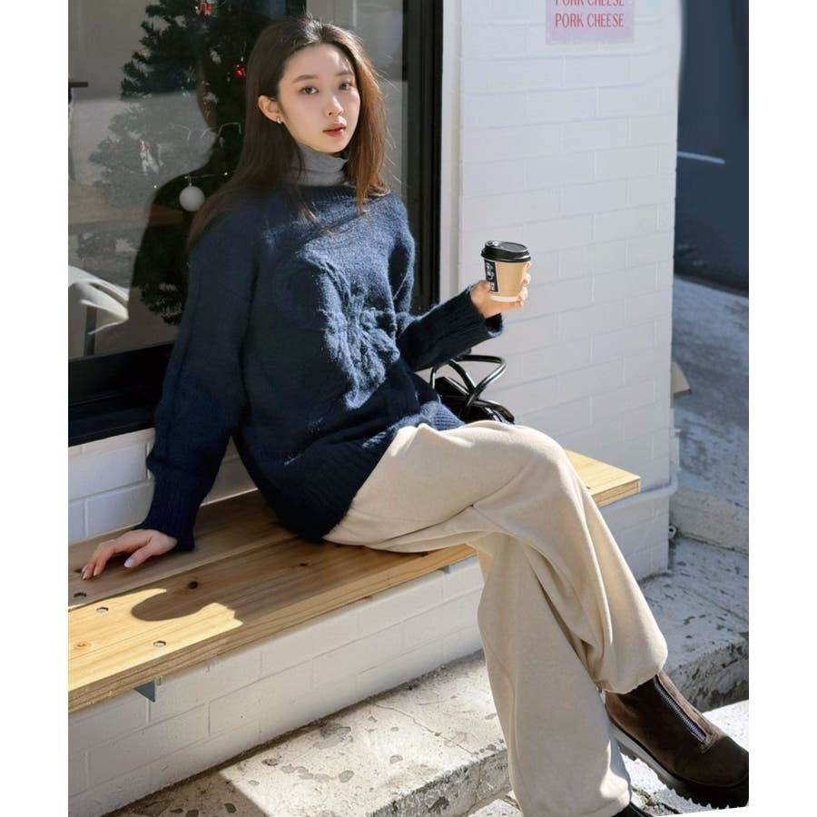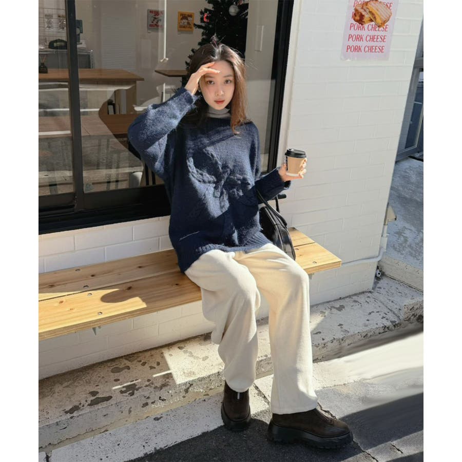 オーバーサイズのボディーにケーブル編みの