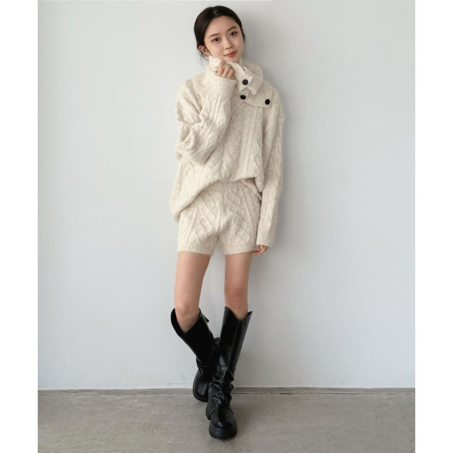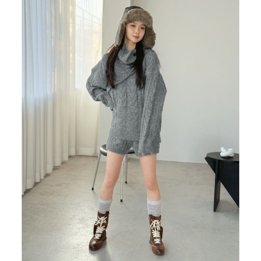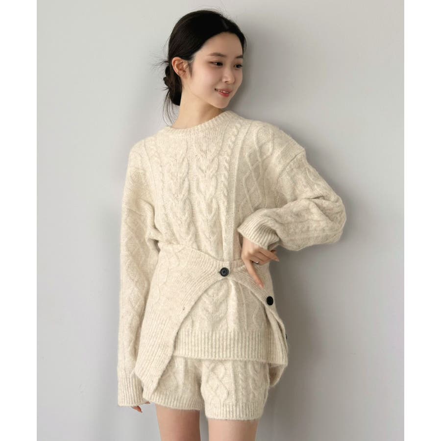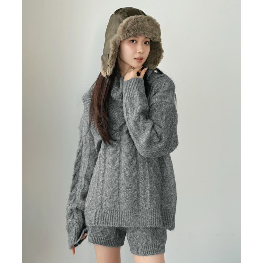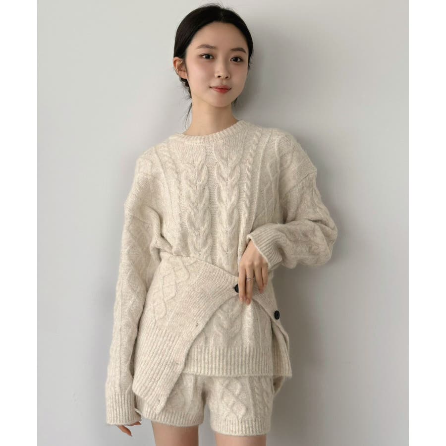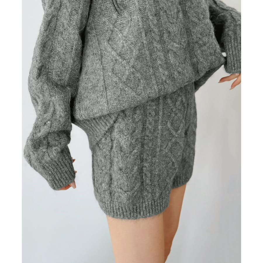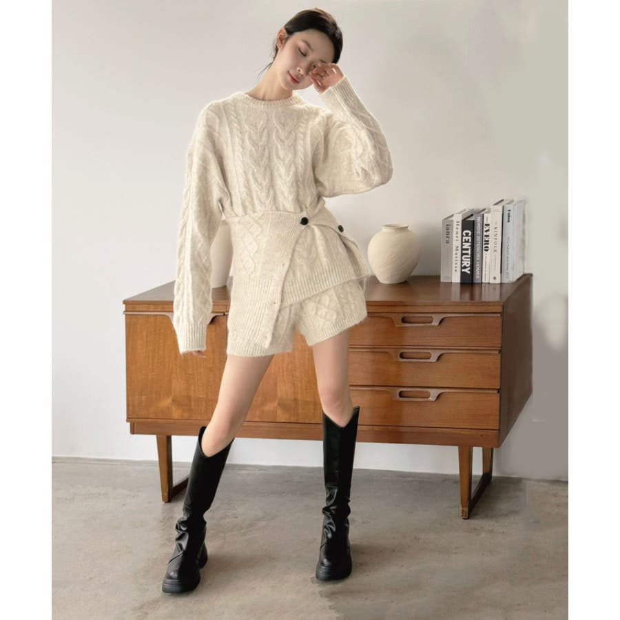【マルチコルセット付き】ケーブルニットプルオーバー×ショートパンツセットアップ