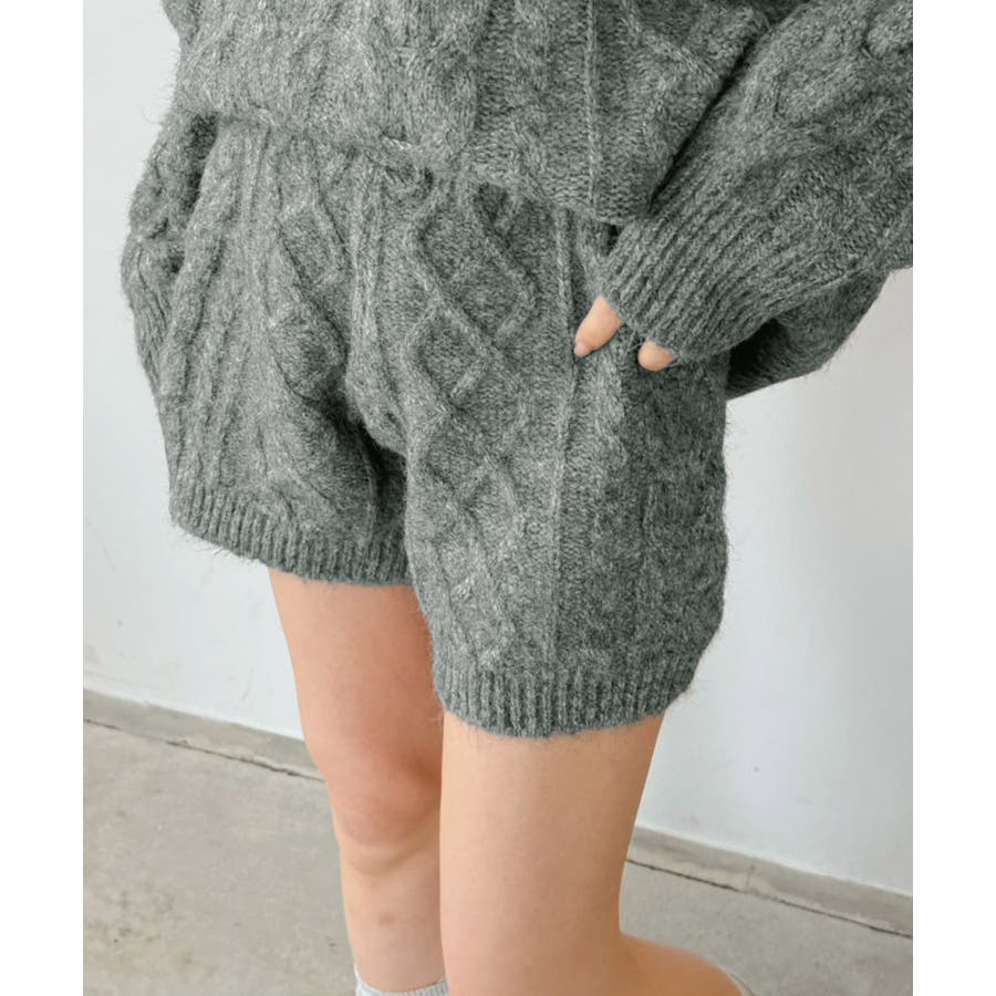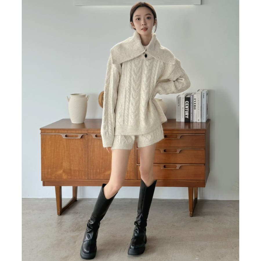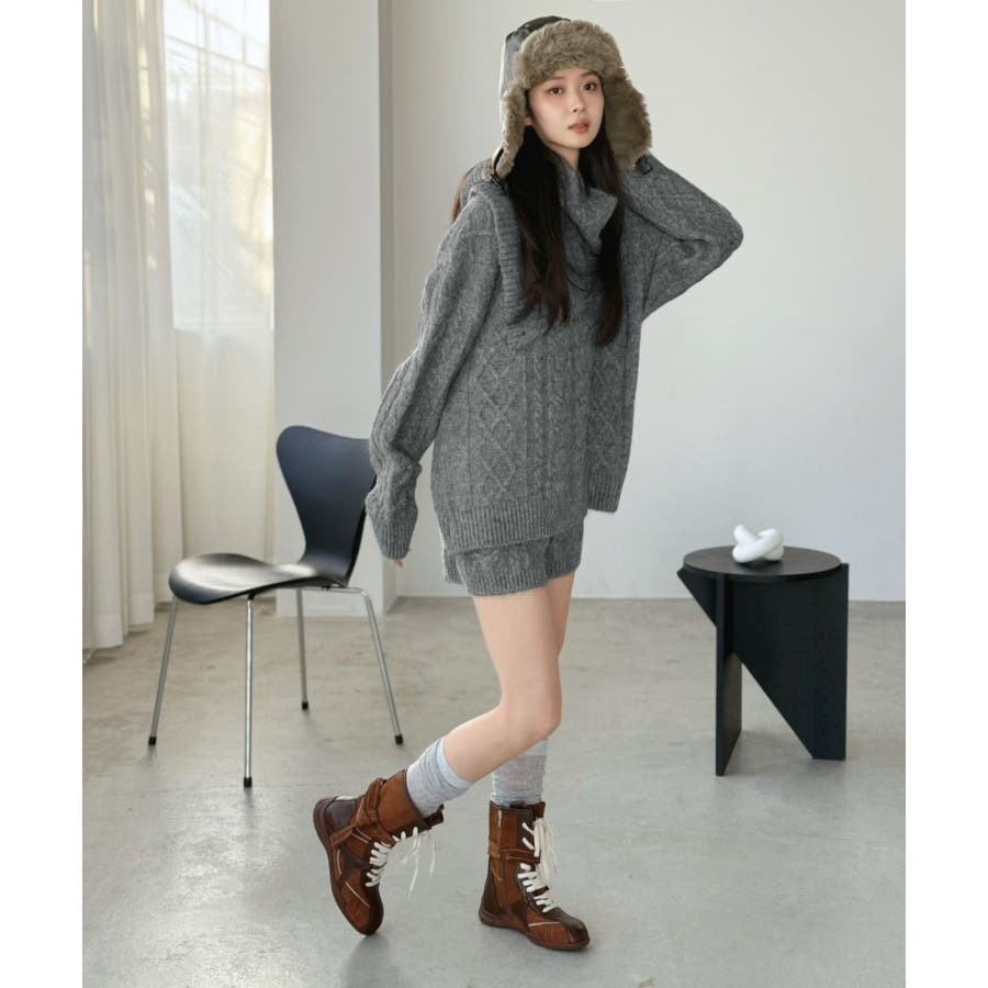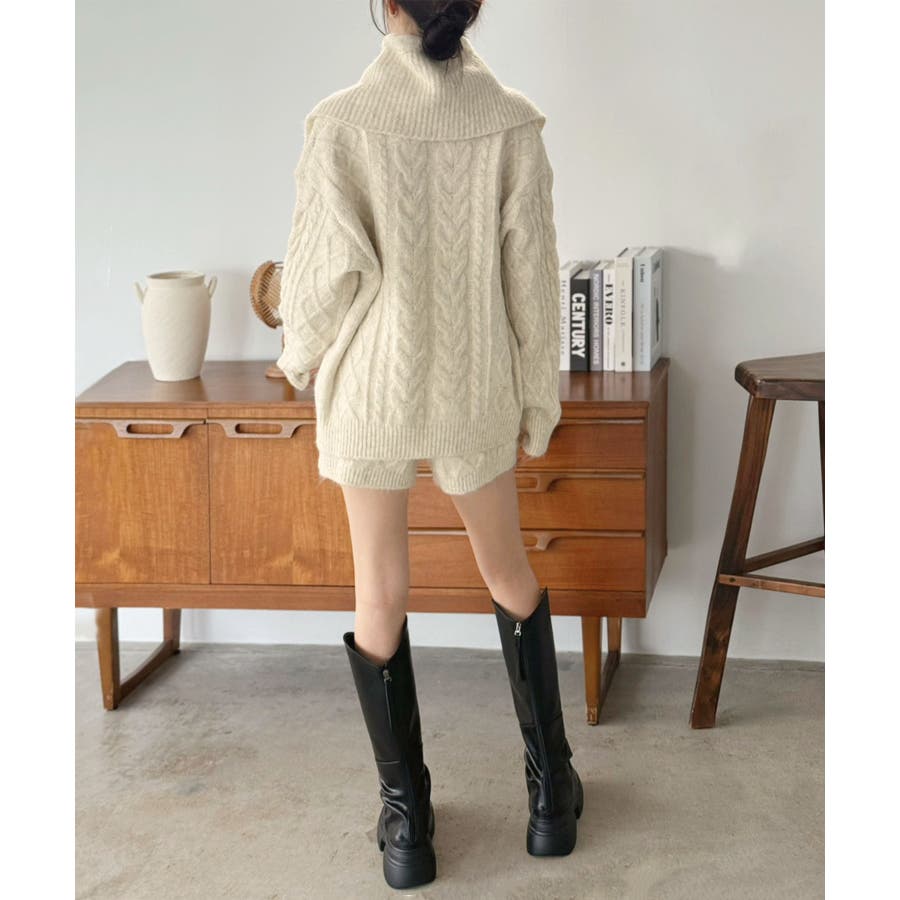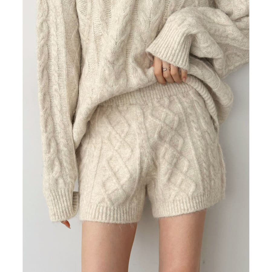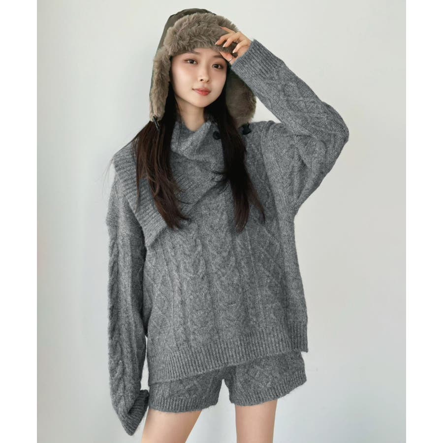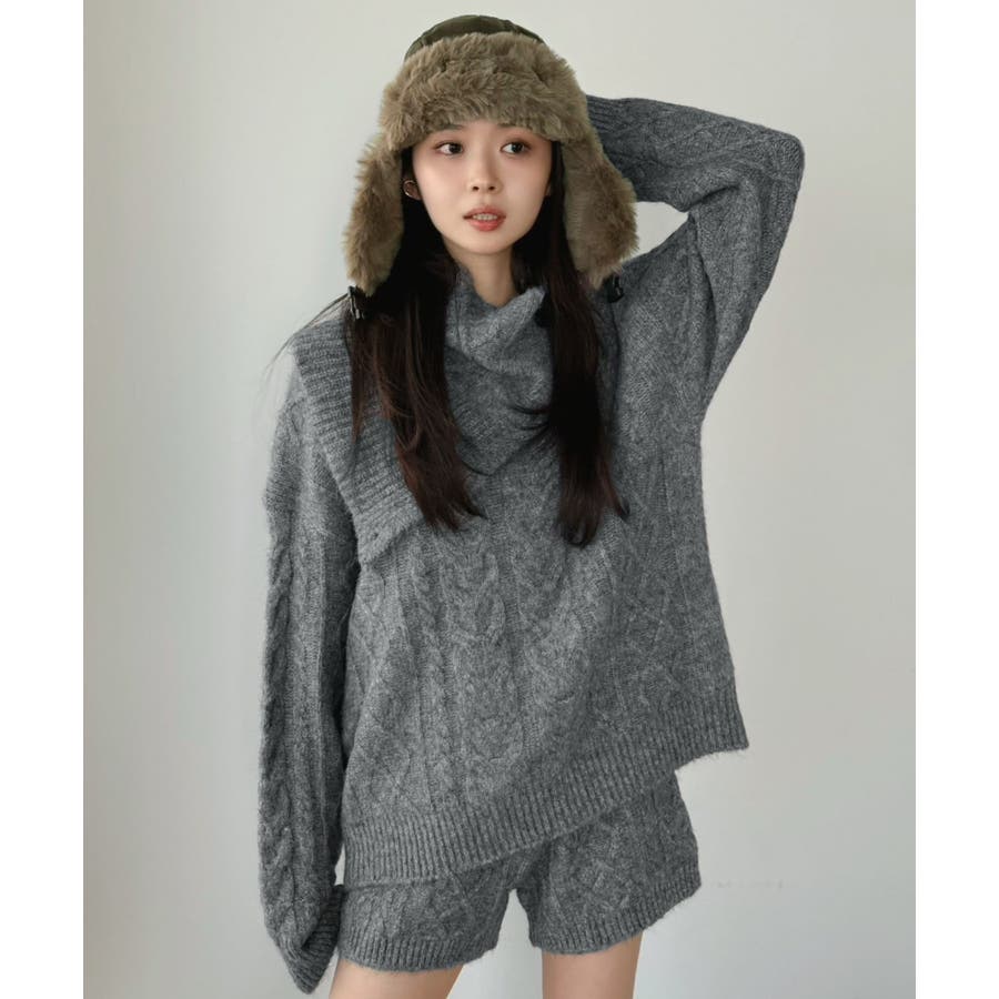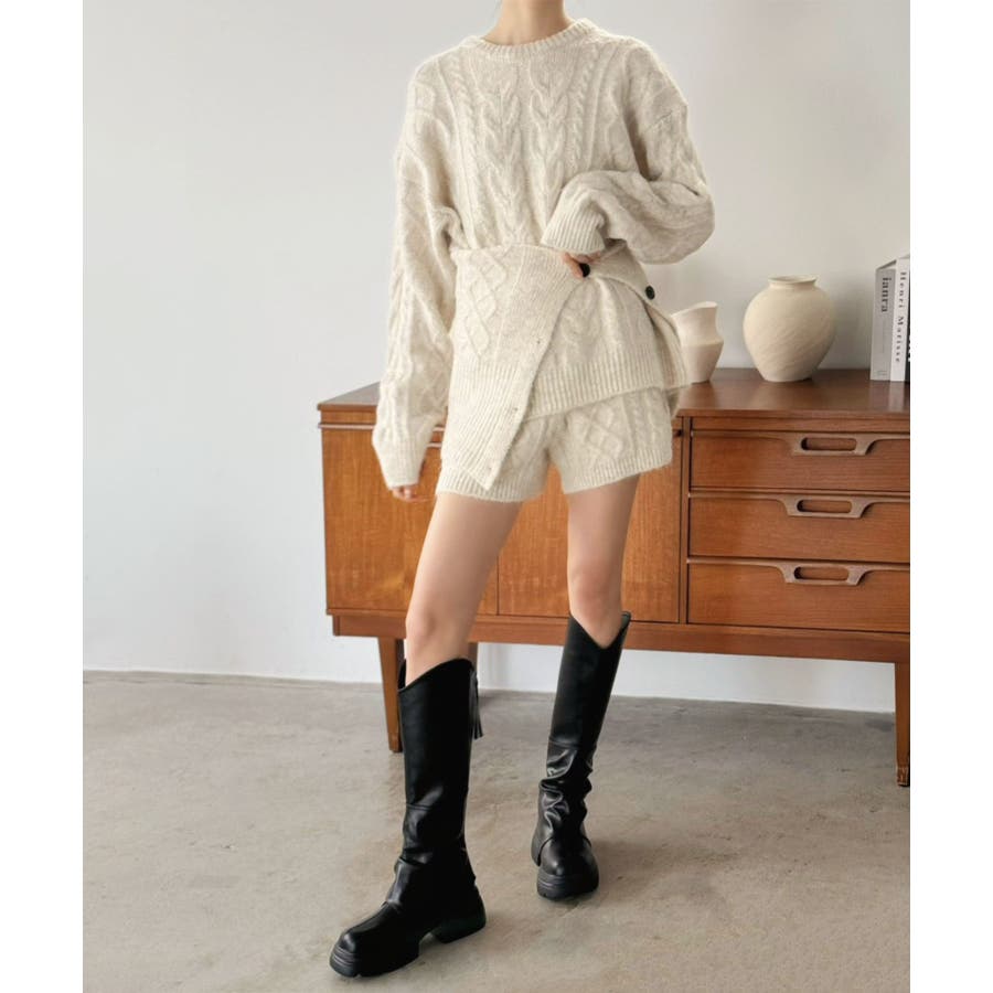 【マルチコルセット付き】ケーブルニットプルオーバー×ショートパンツセットアップ