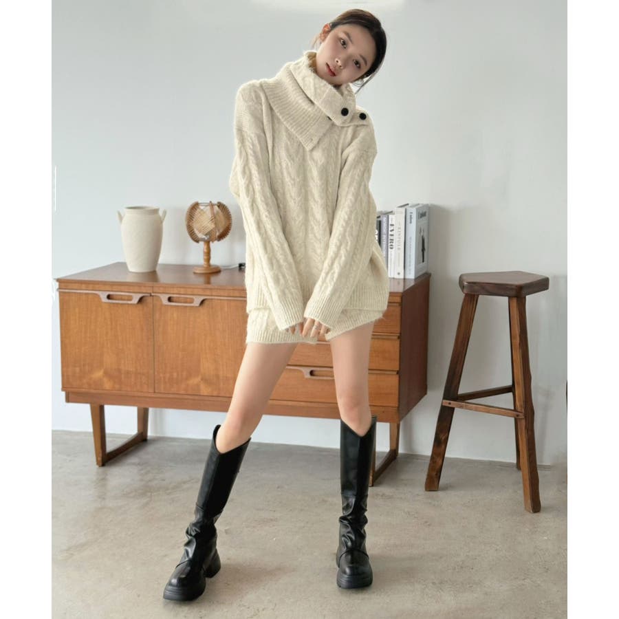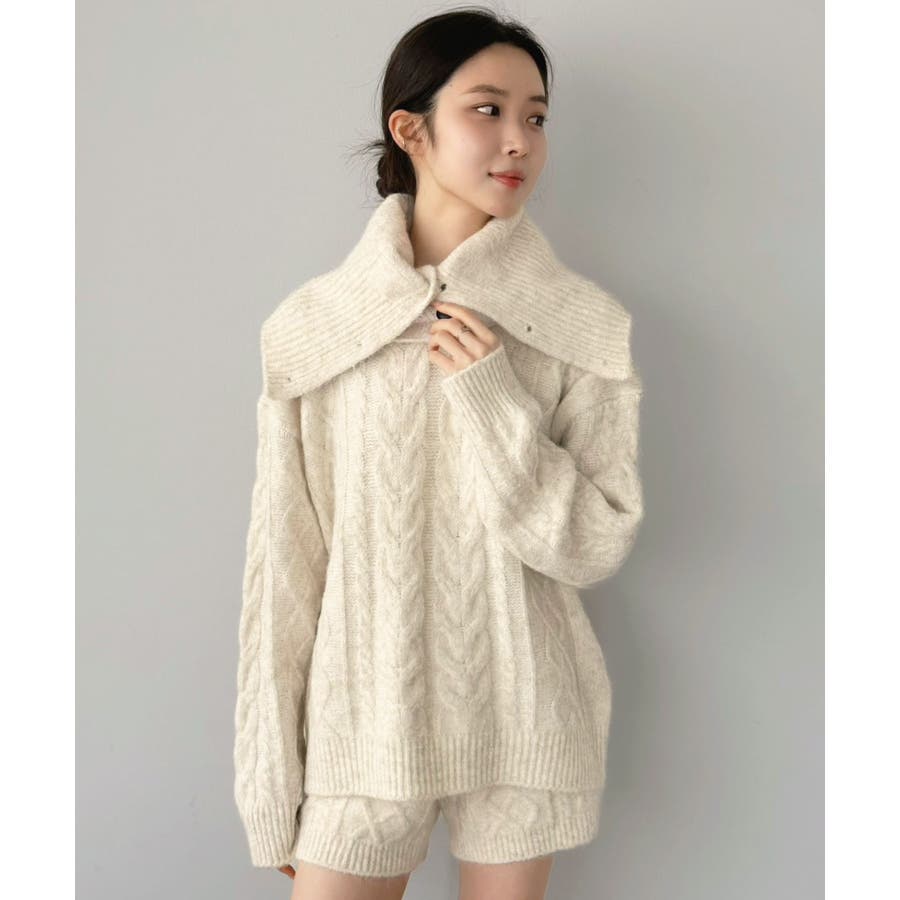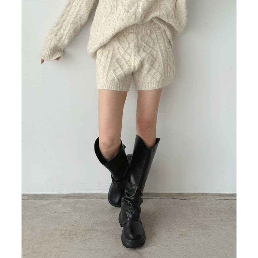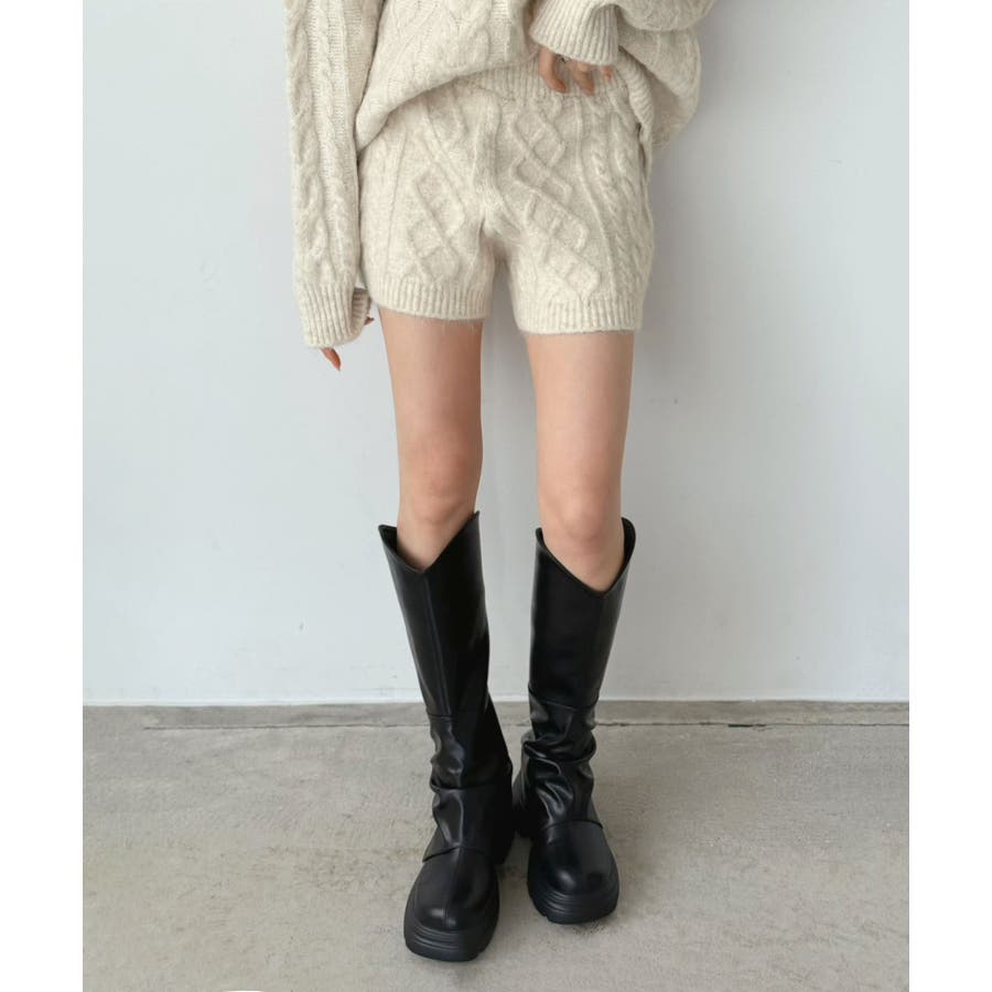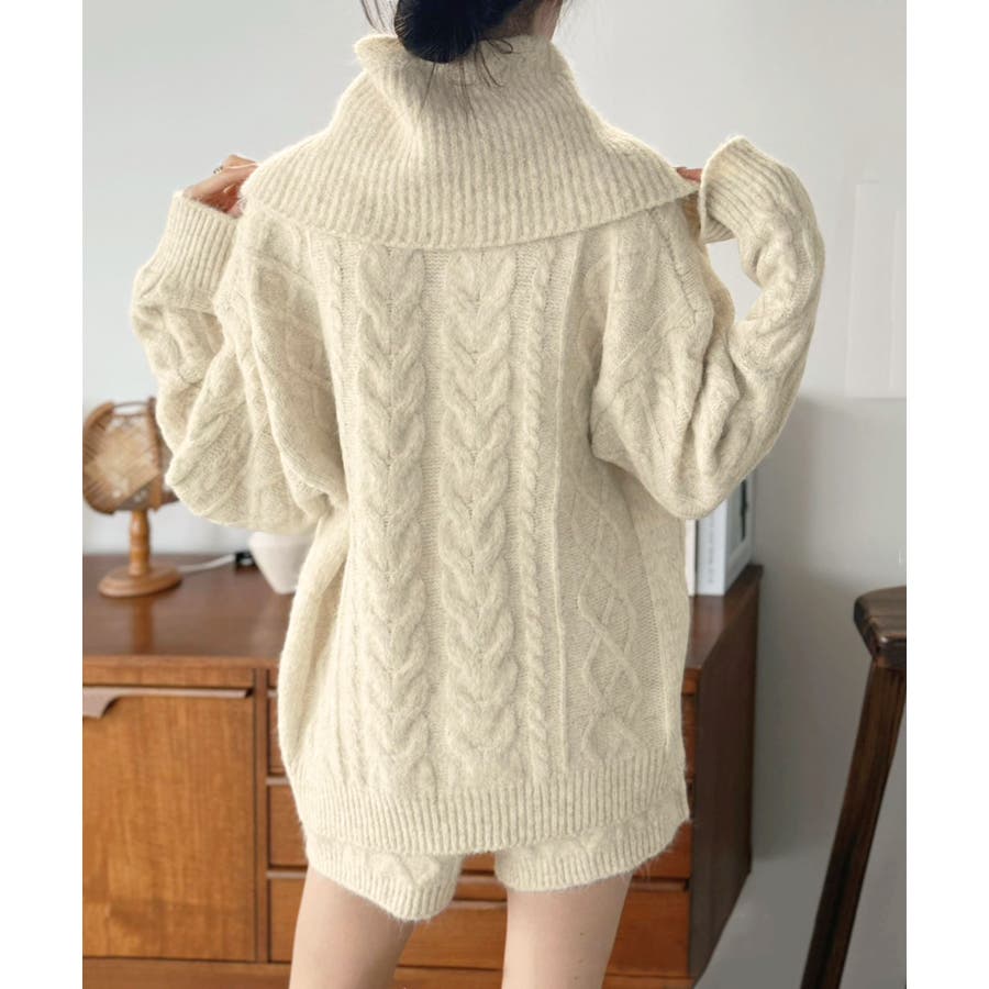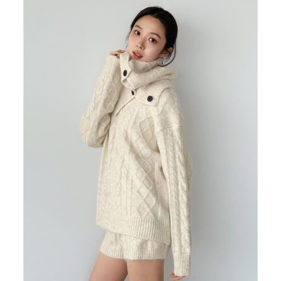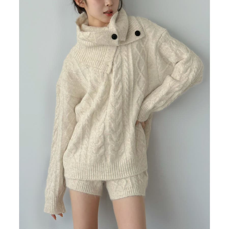 【マルチコルセット付き】ケーブルニットプルオーバー×ショートパンツセットアップ