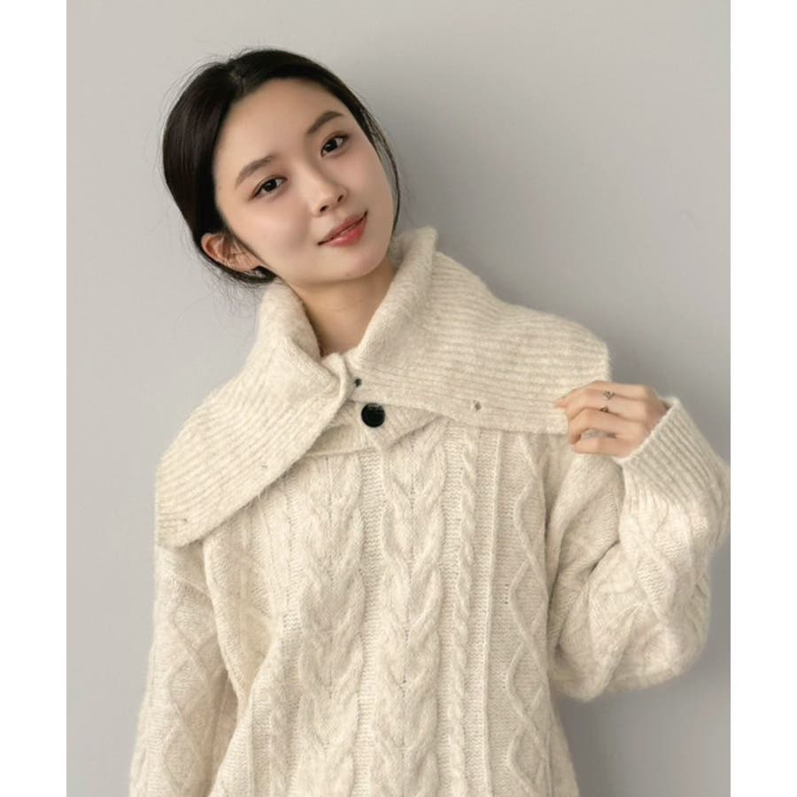 シンプルなケーブル編みなので、無地アイテムだけでなく