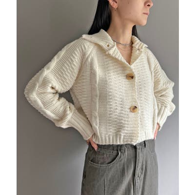 ベースの柄編みにケーブル編みをアクセントに入れたニットカーディガン。