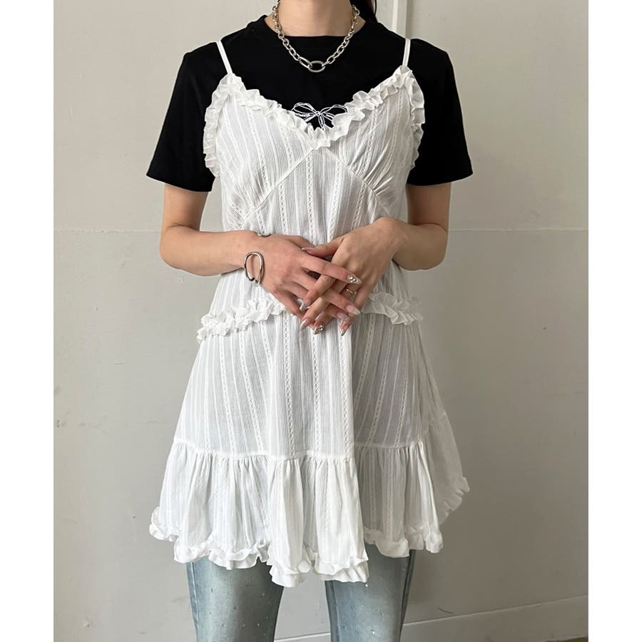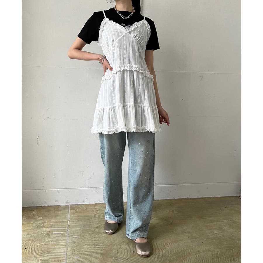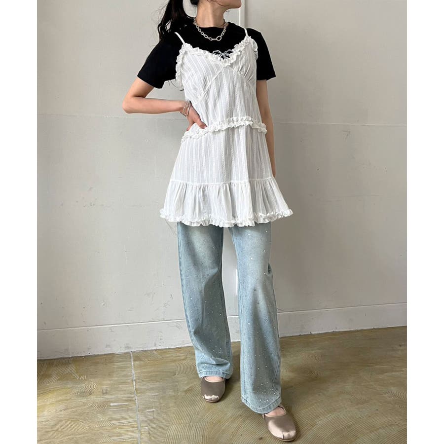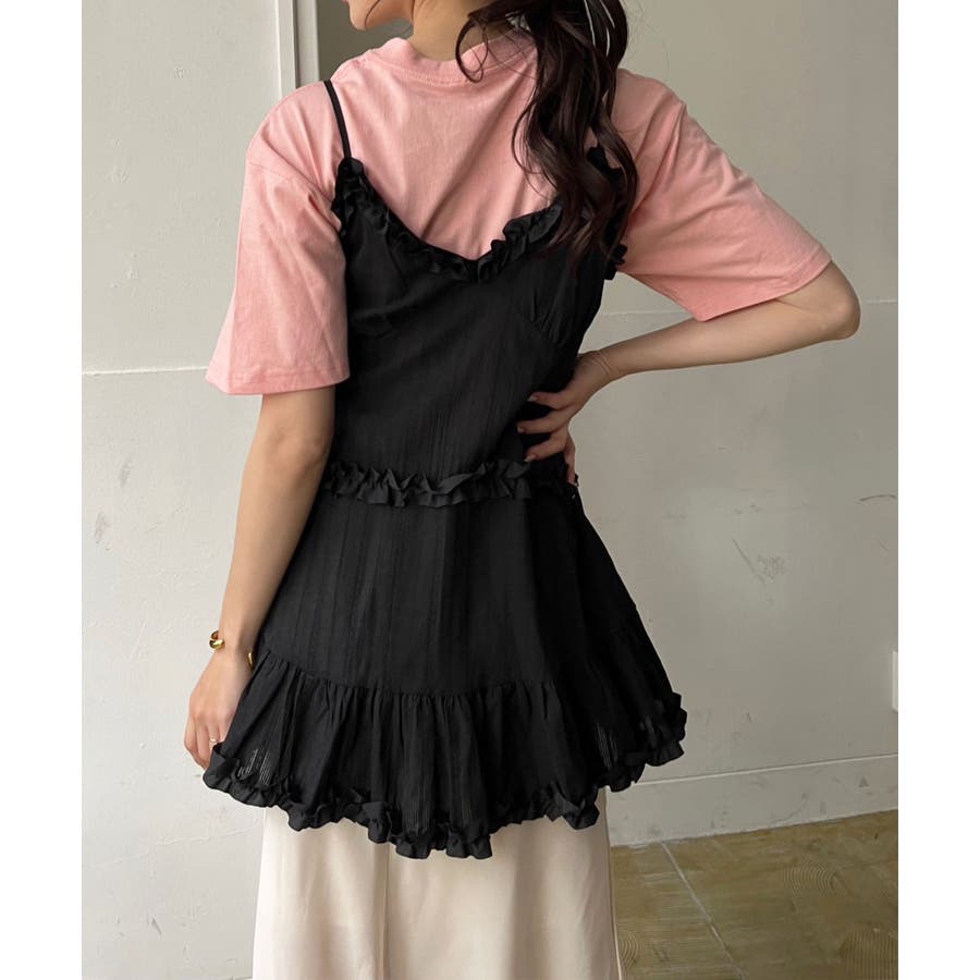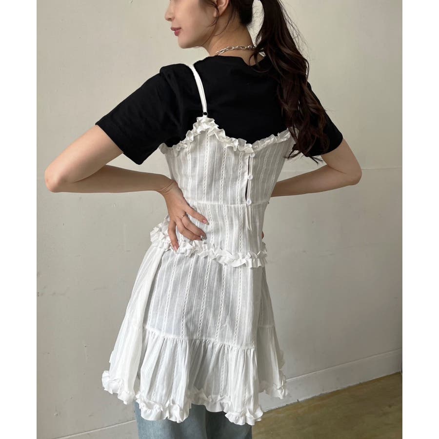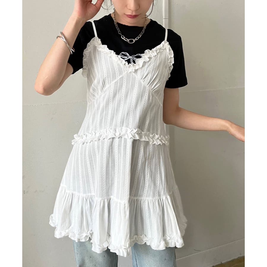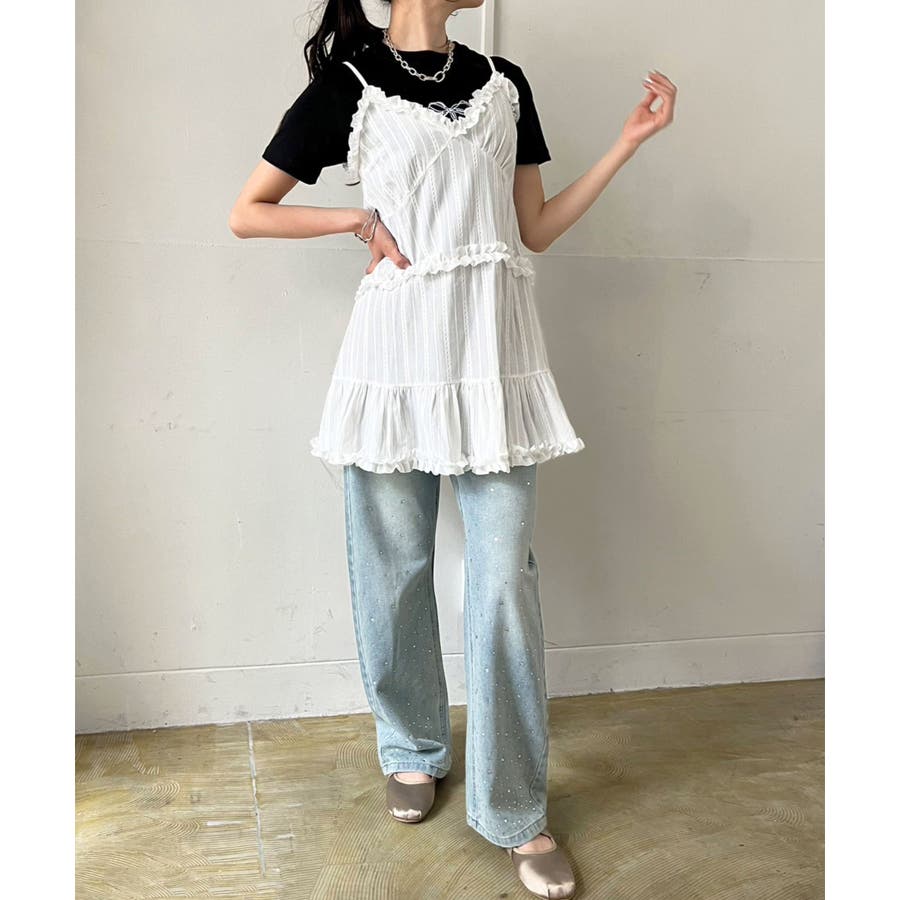 フリル×コットンストライプビスチェディテールキャミチュニック