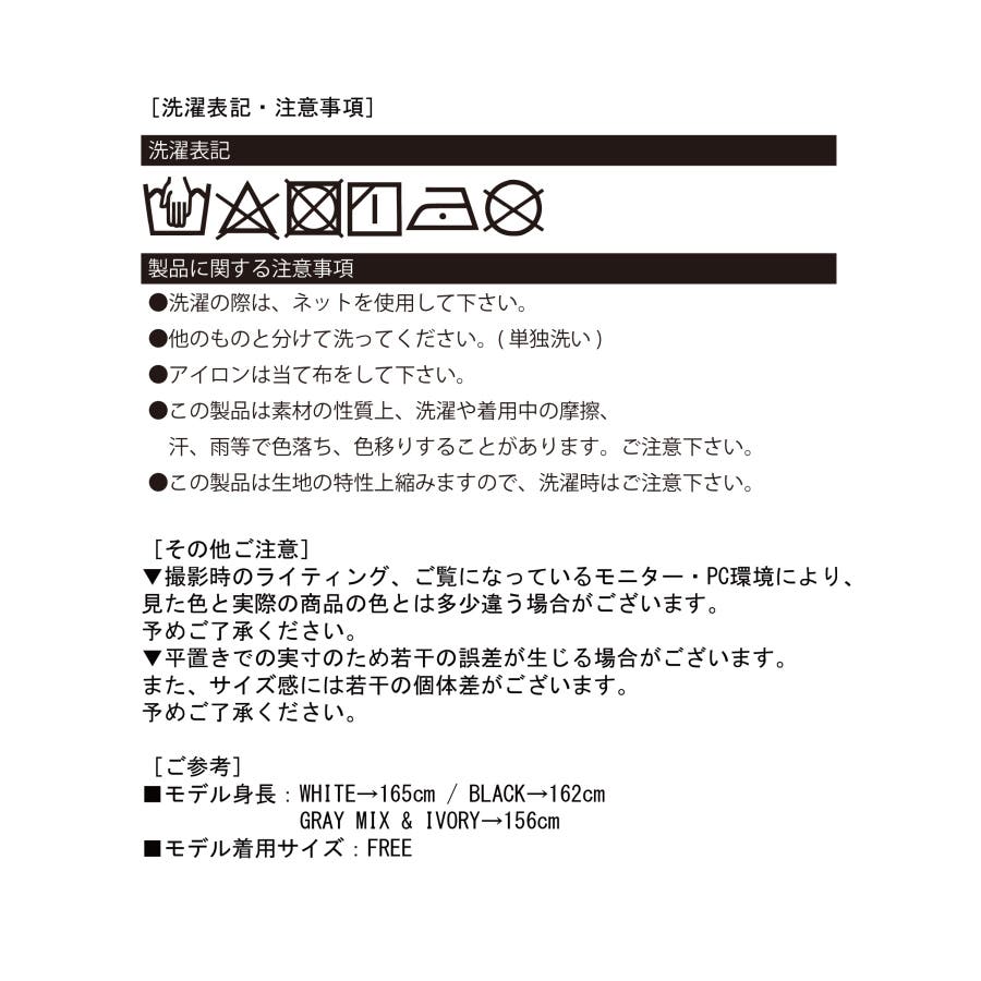 | 素材 | WHITE・BLACK→本体:綿100% / 別布:ポリエステル100% |