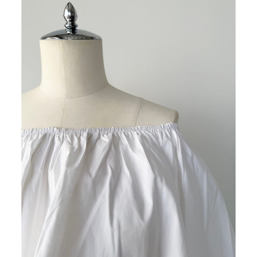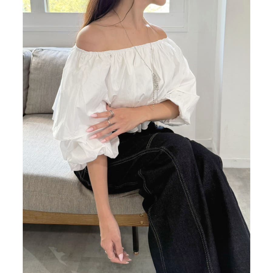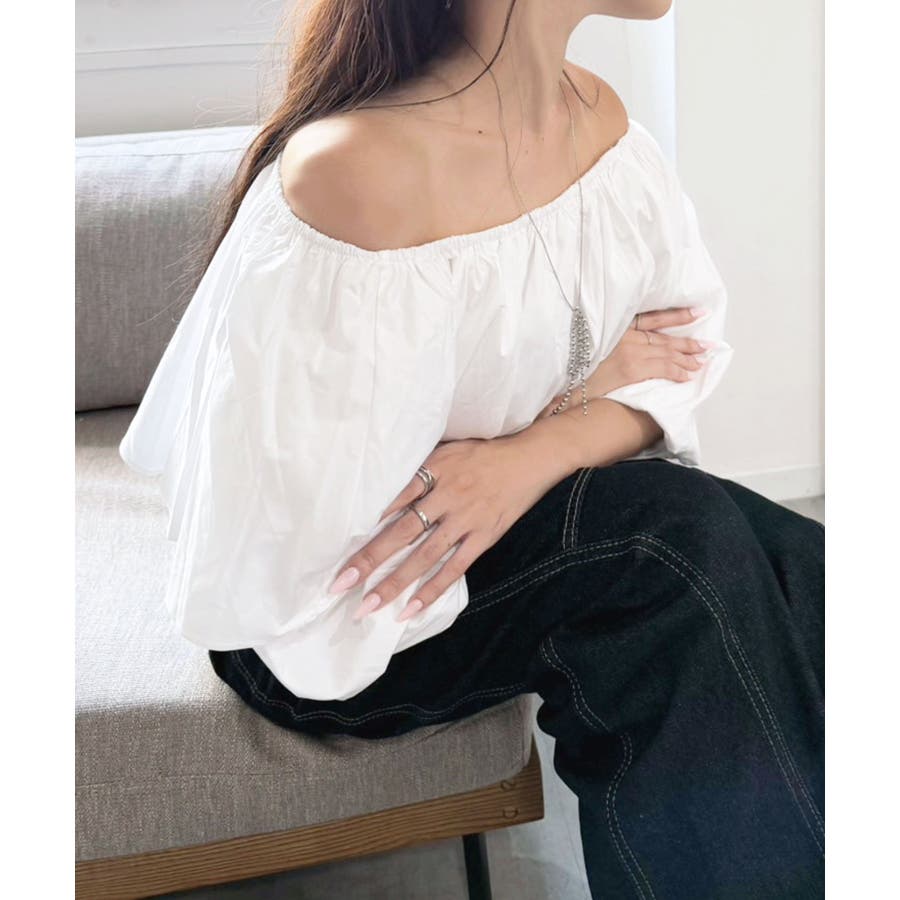 シンプルなコットン素材で仕立てたオフショルダーデザインのブラウス。