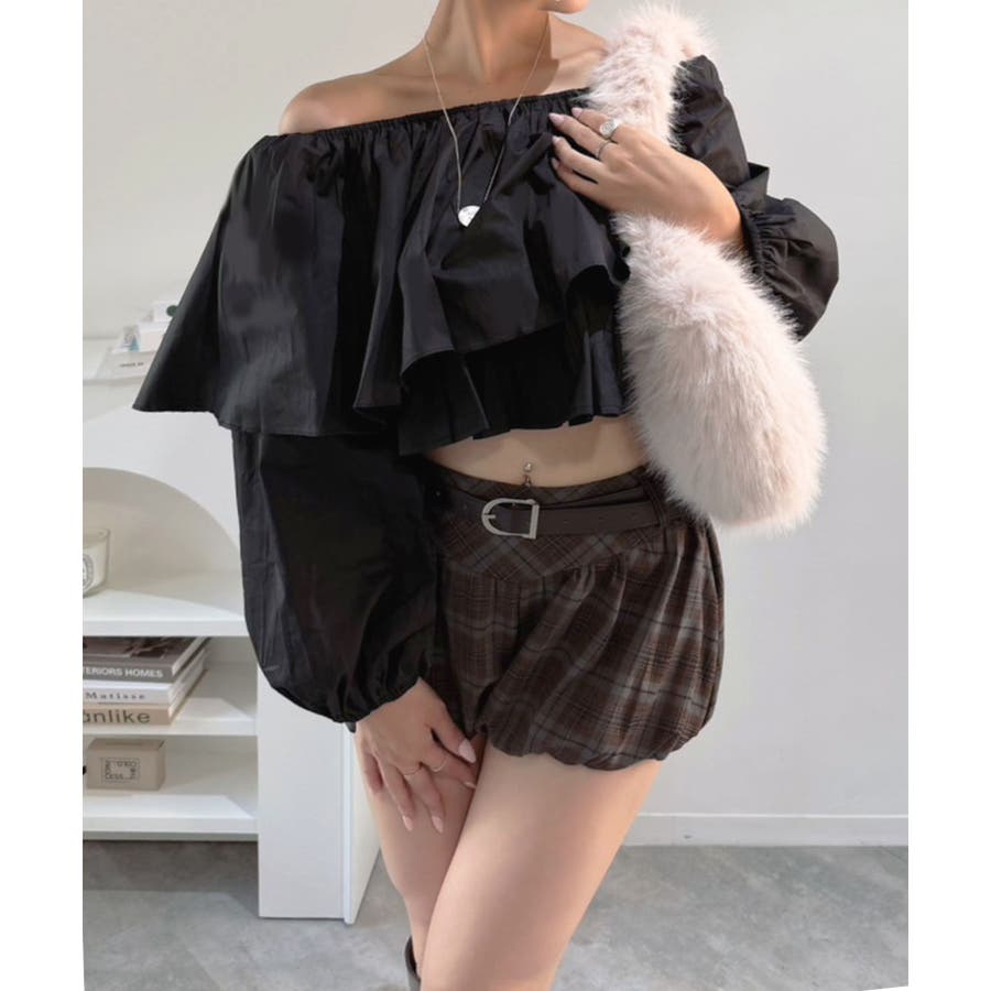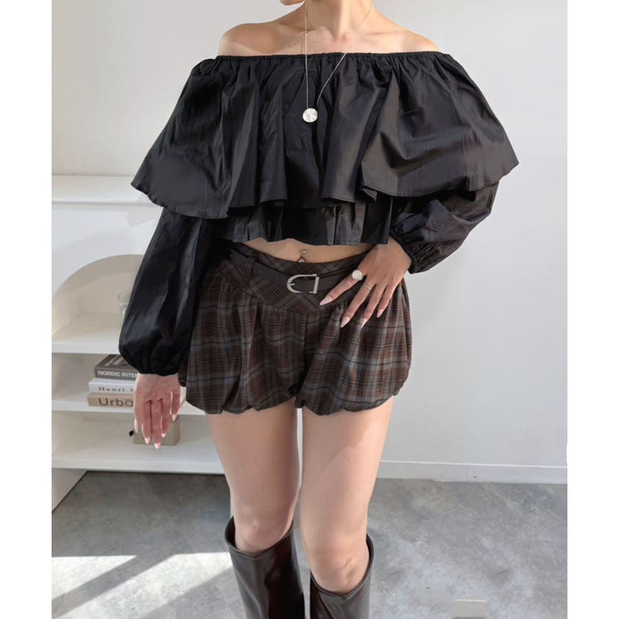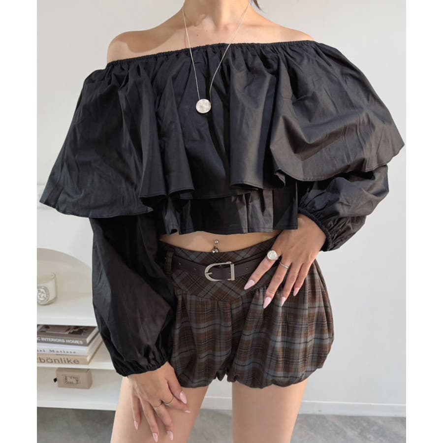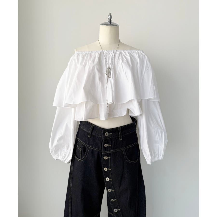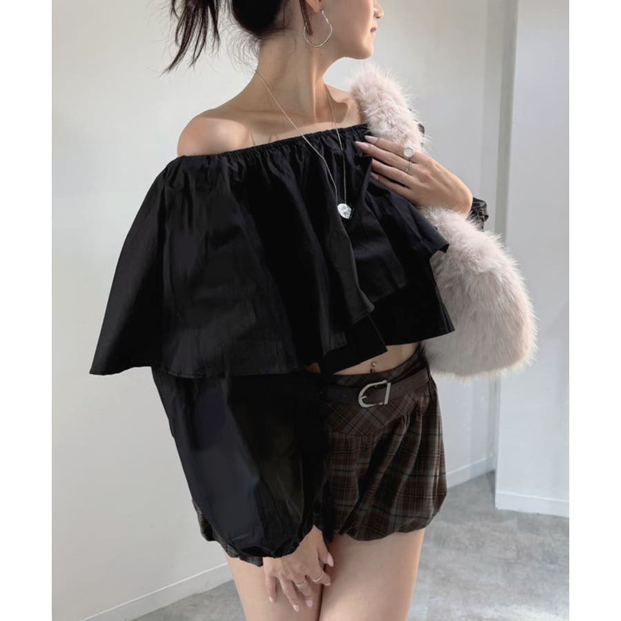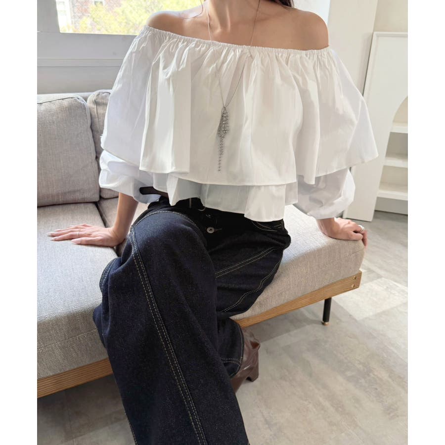 ラッフルフリルオフショルブラウス