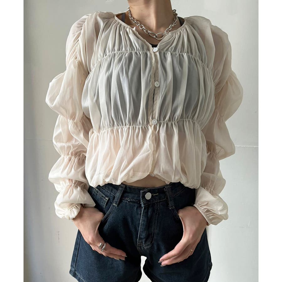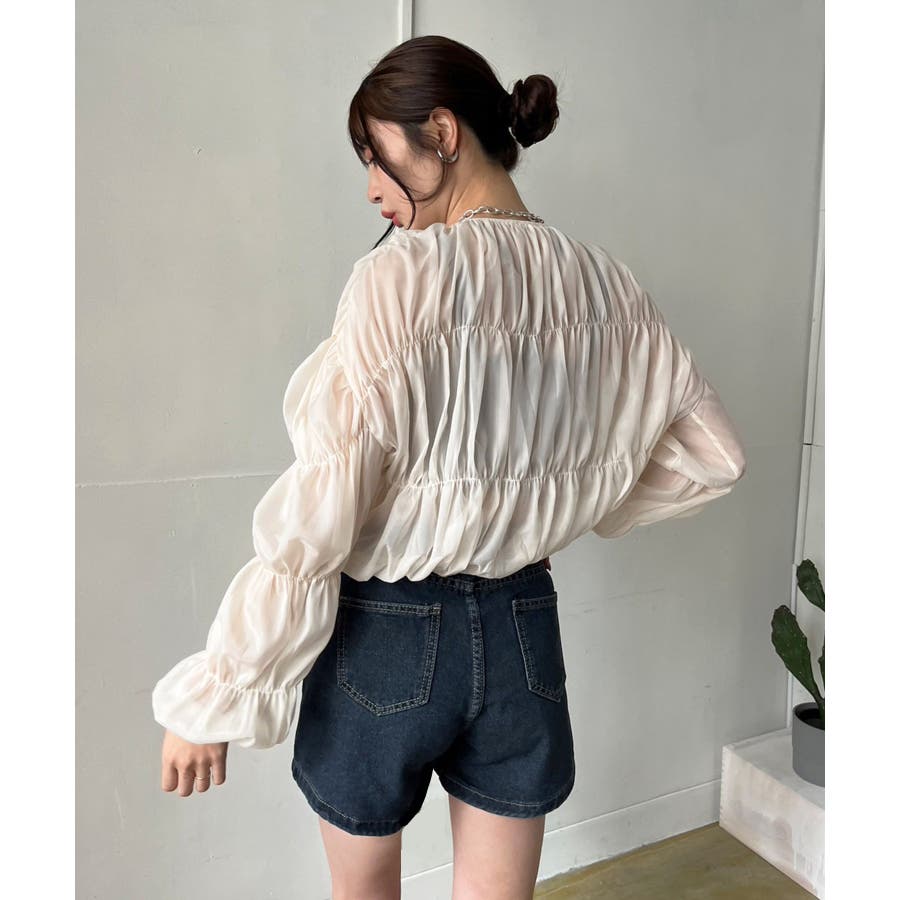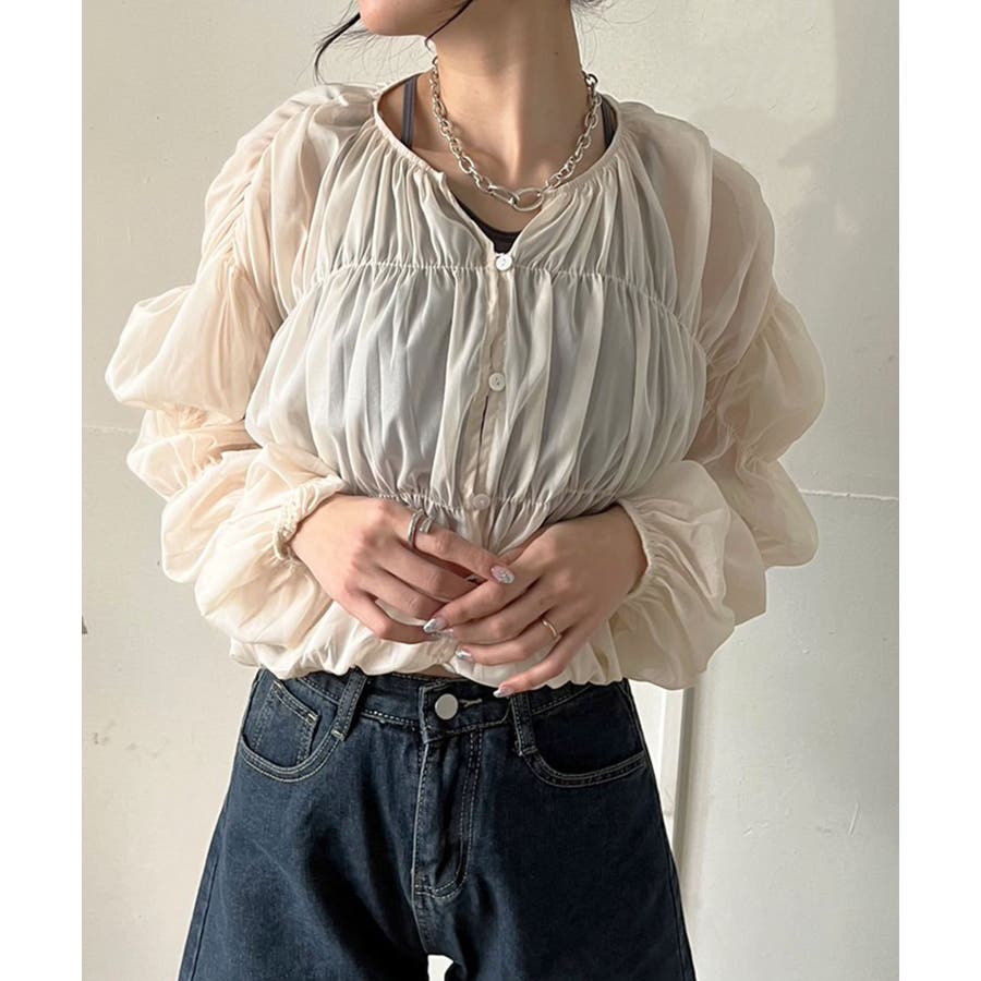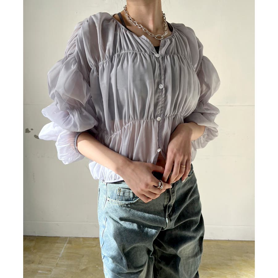 シアー素材で野暮ったくならず、ボリュームがありつつも抜けのある1枚です*