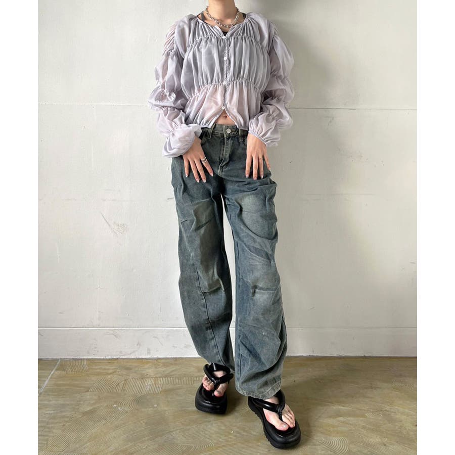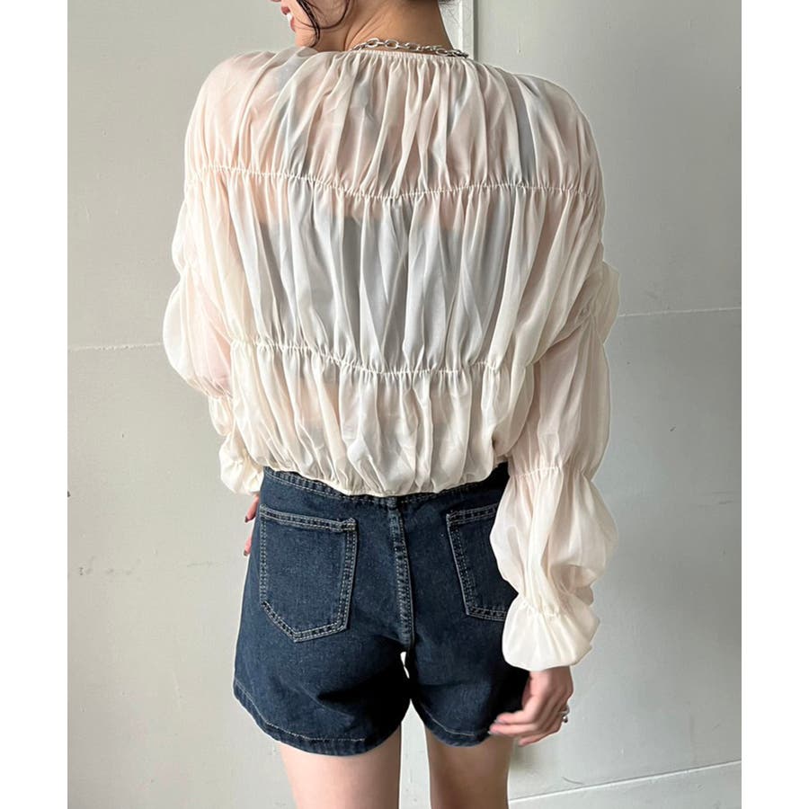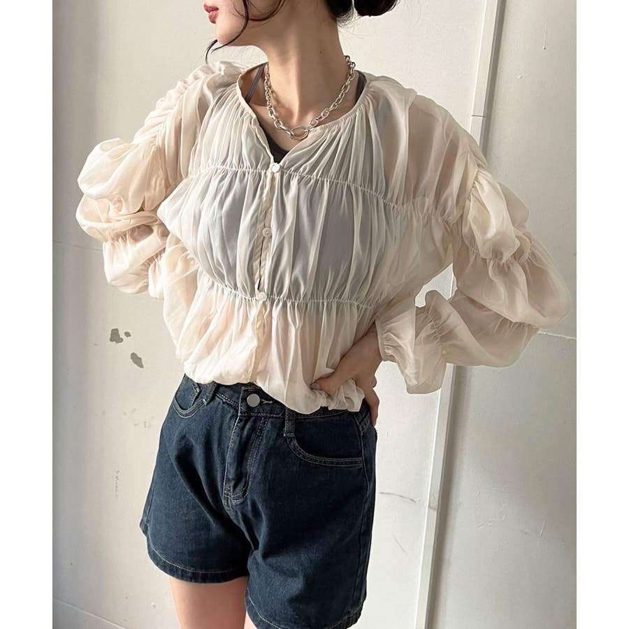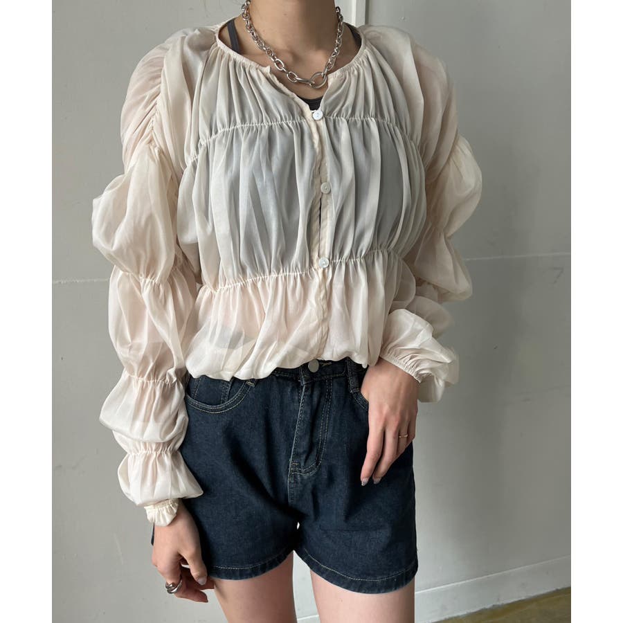 シアー素材で野暮ったくならず、ボリュームがありつつも抜けのある1枚です*