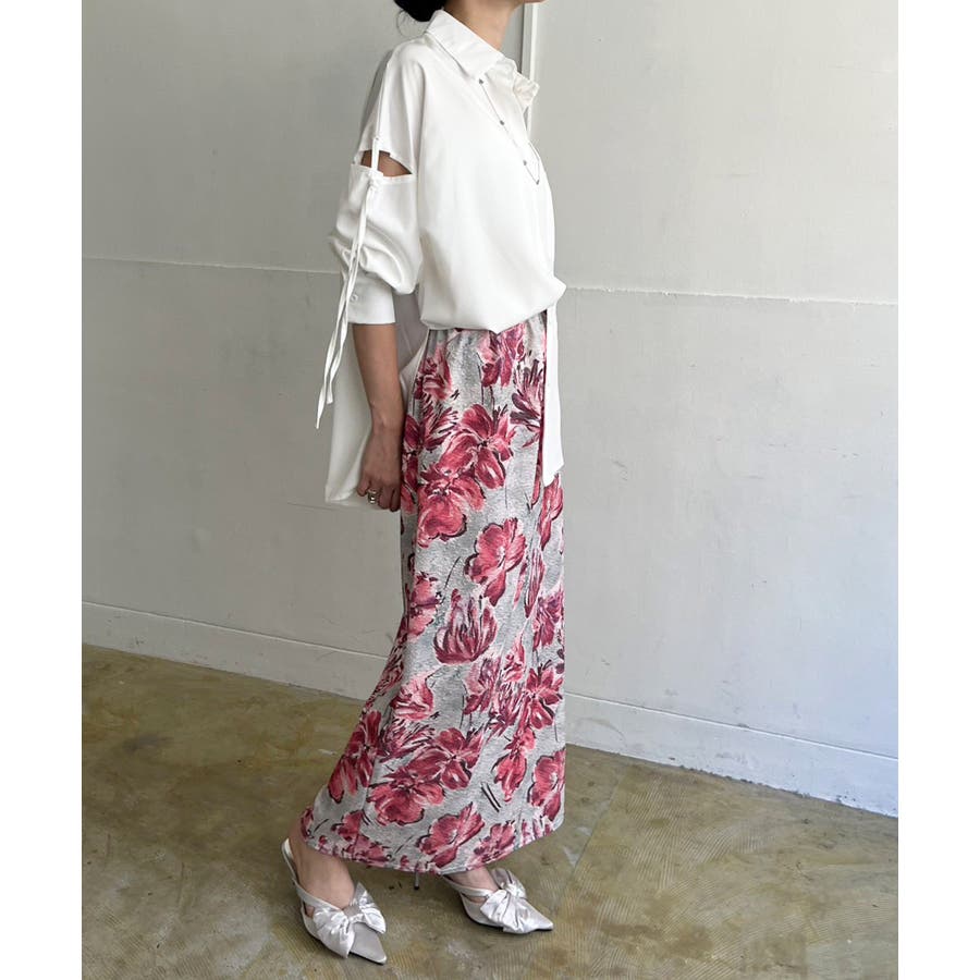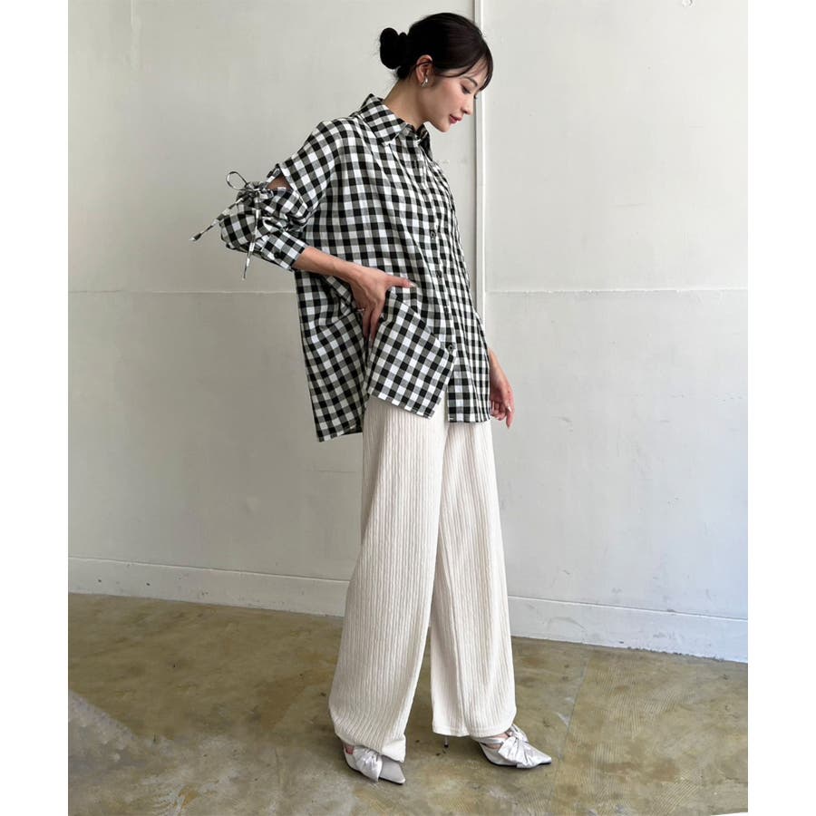 スラッシュ開きを入れたオーバーサイズシャツ。