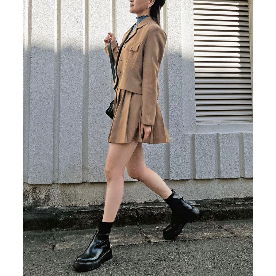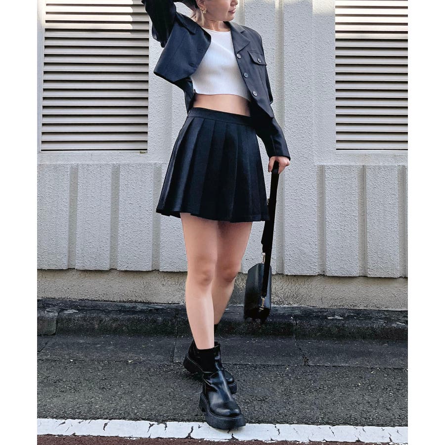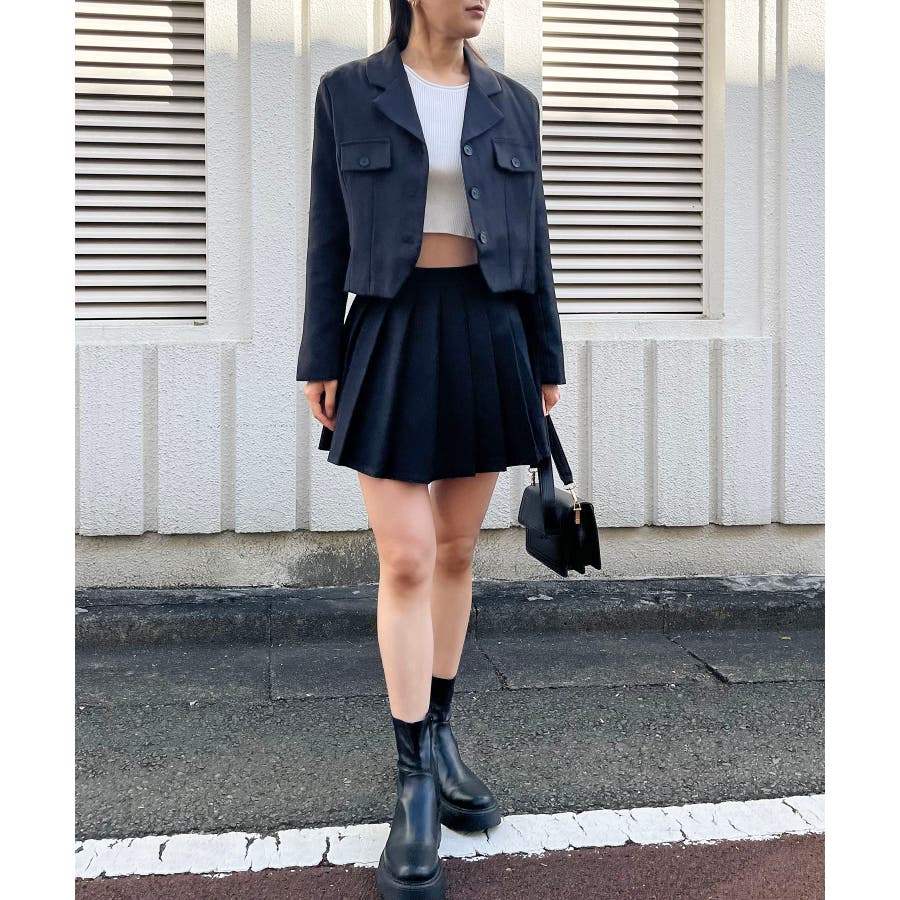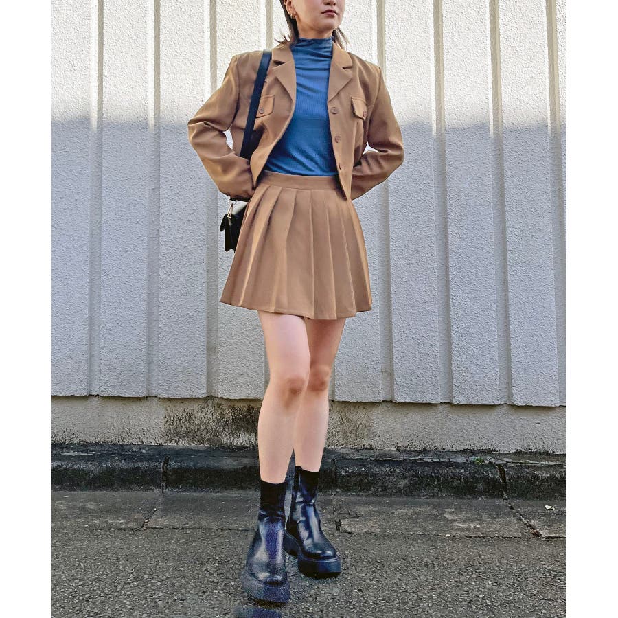 ショートジャケット×プリーツミニスカートにセットアップ。