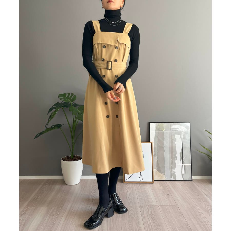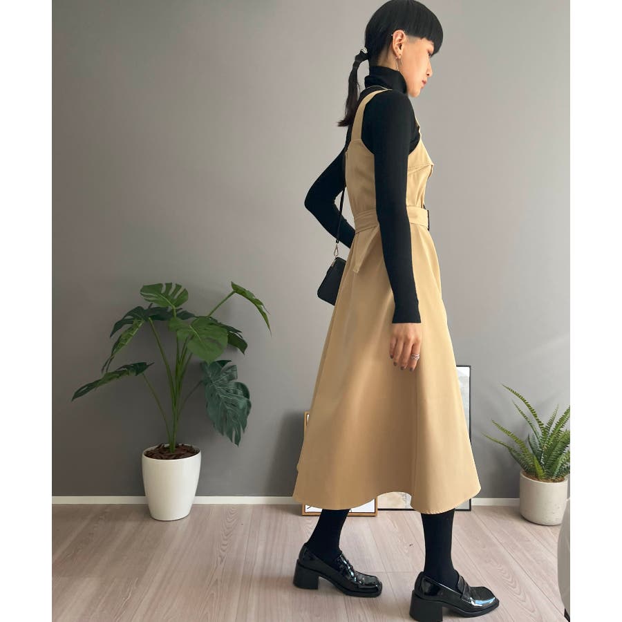トレンチのデザインをジャンパースカートに落とし込んだ