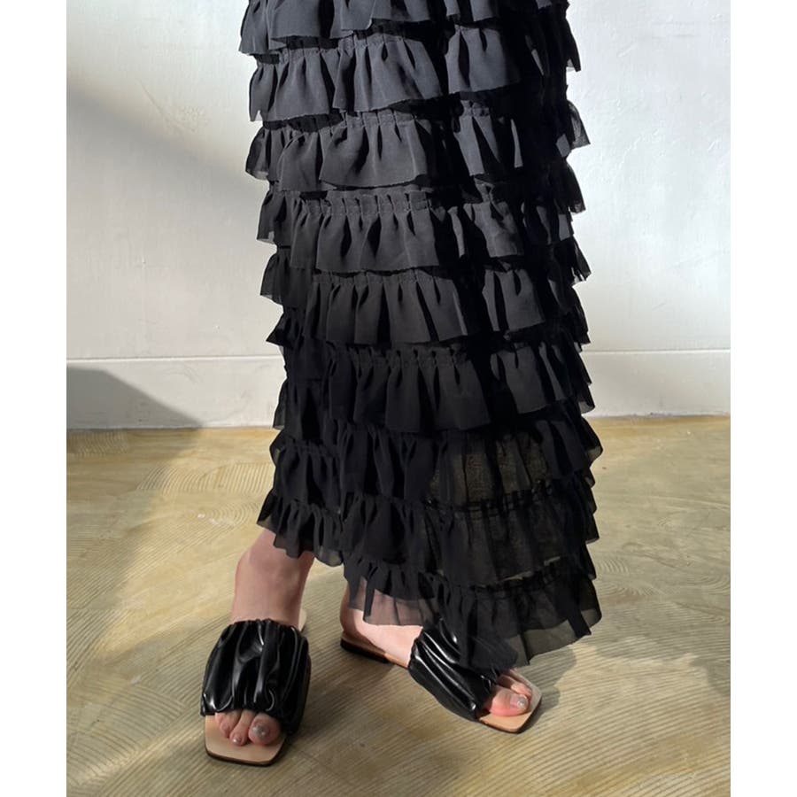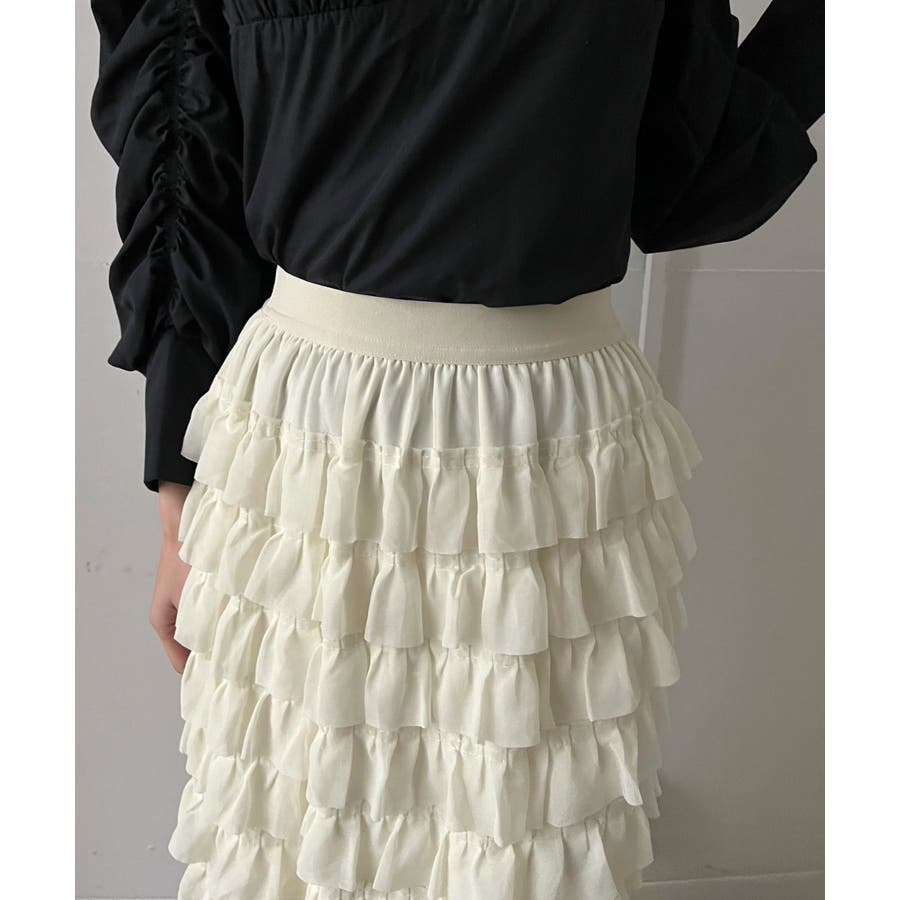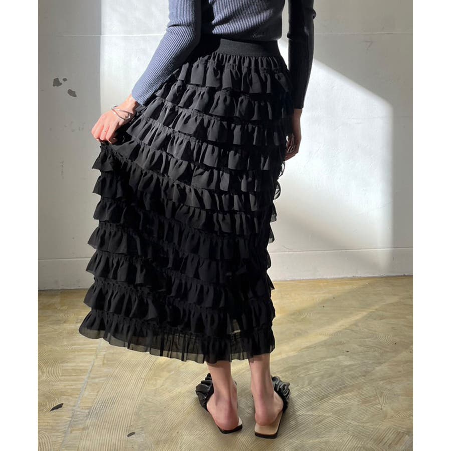 柔らかなシフォン生地でふんだんにフリルを縫い付けた