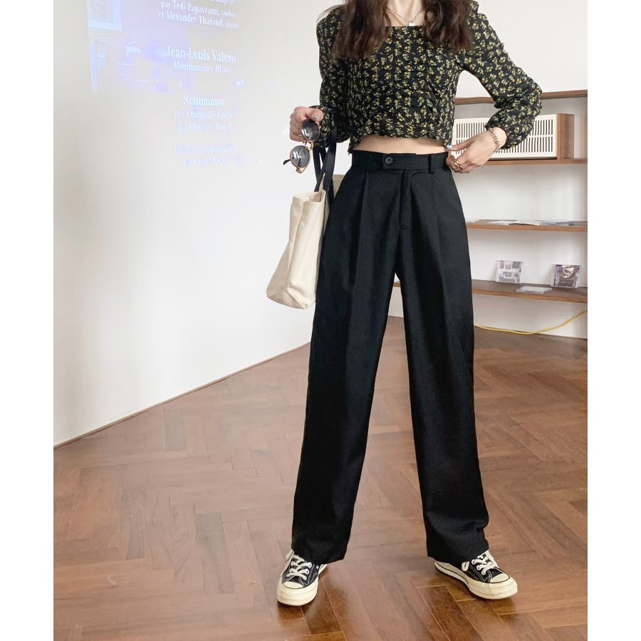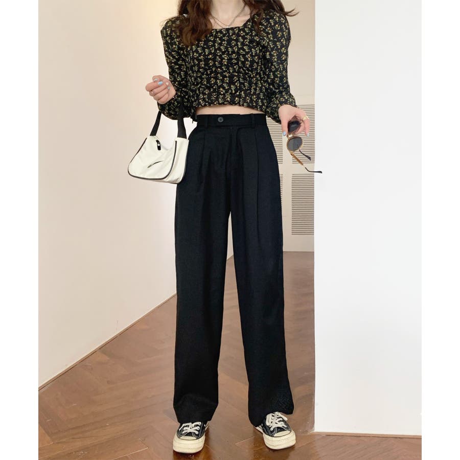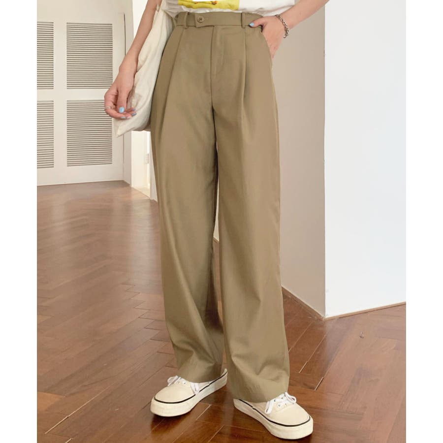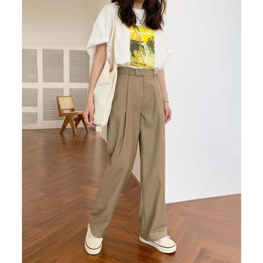 【柄と素材が選べる】ハイウエストセミワイドタックパンツ