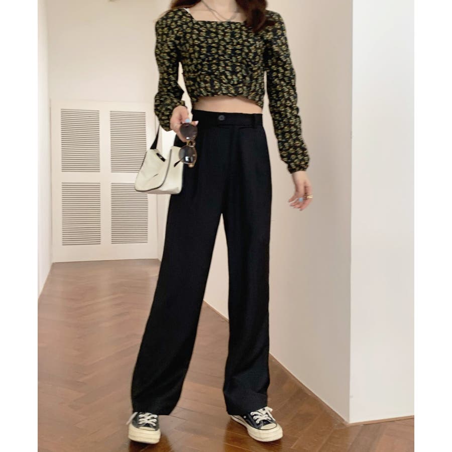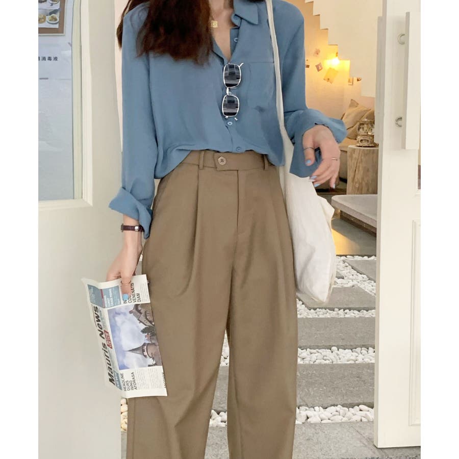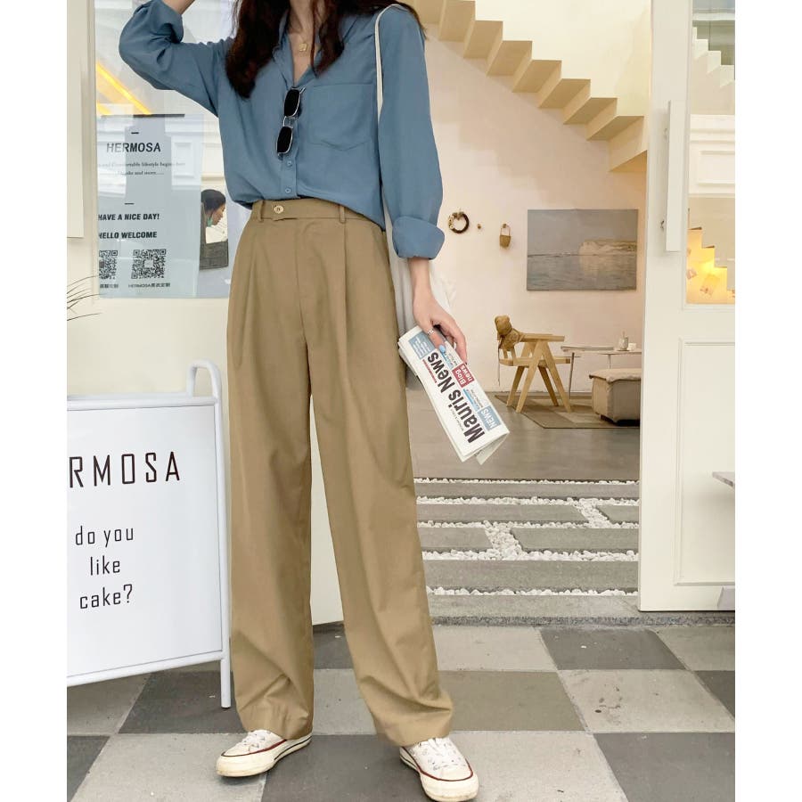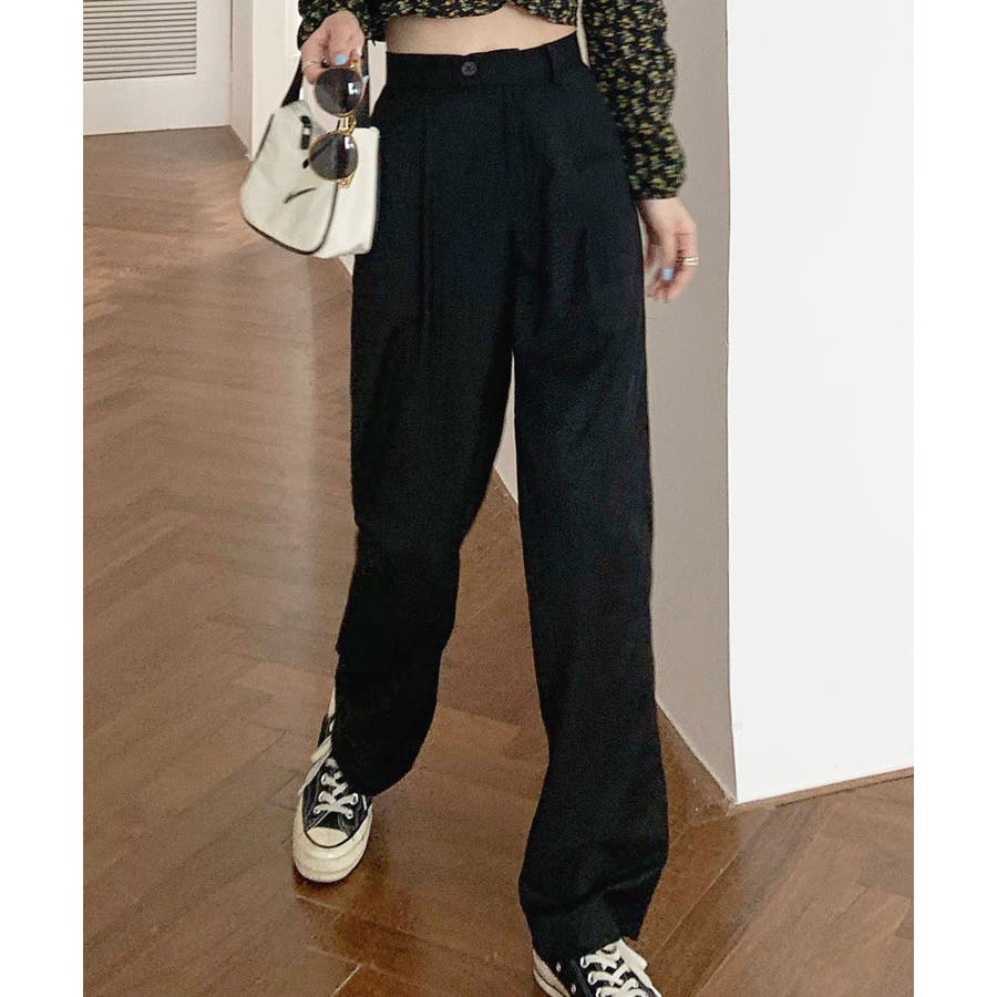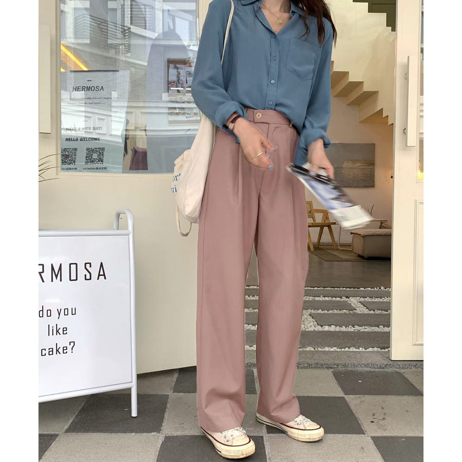 【柄と素材が選べる】ハイウエストセミワイドタックパンツ