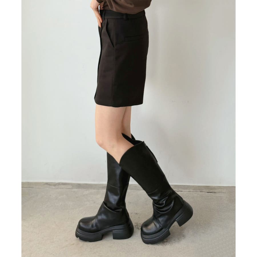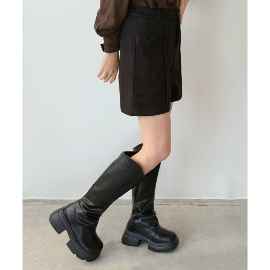 ロングブーツやコンバットブーツなど足元にもボリュームを持たせればよりスタイルアップに◎