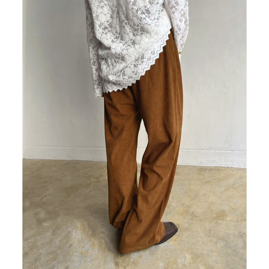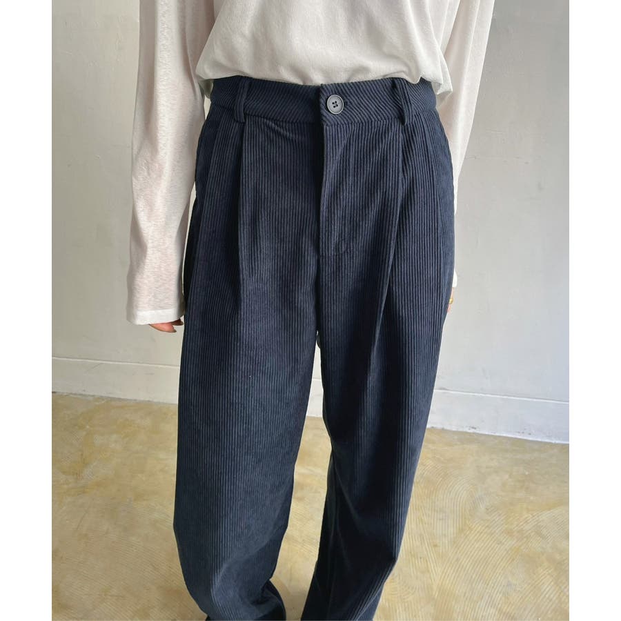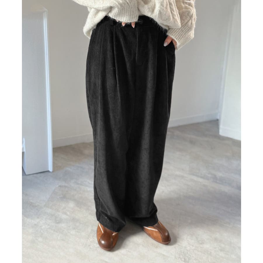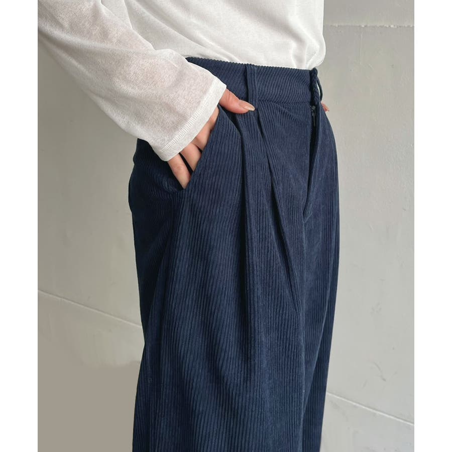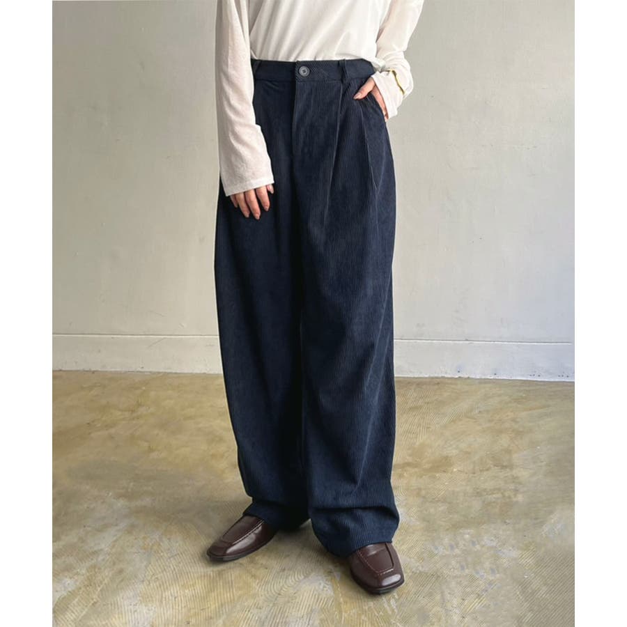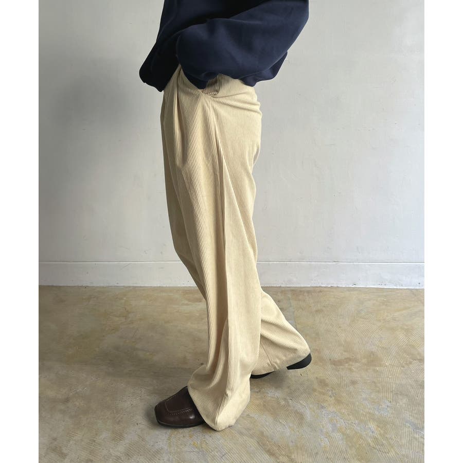 存在感のある畝が特徴のコーデュロイ生地を使用したワイドパンツ。