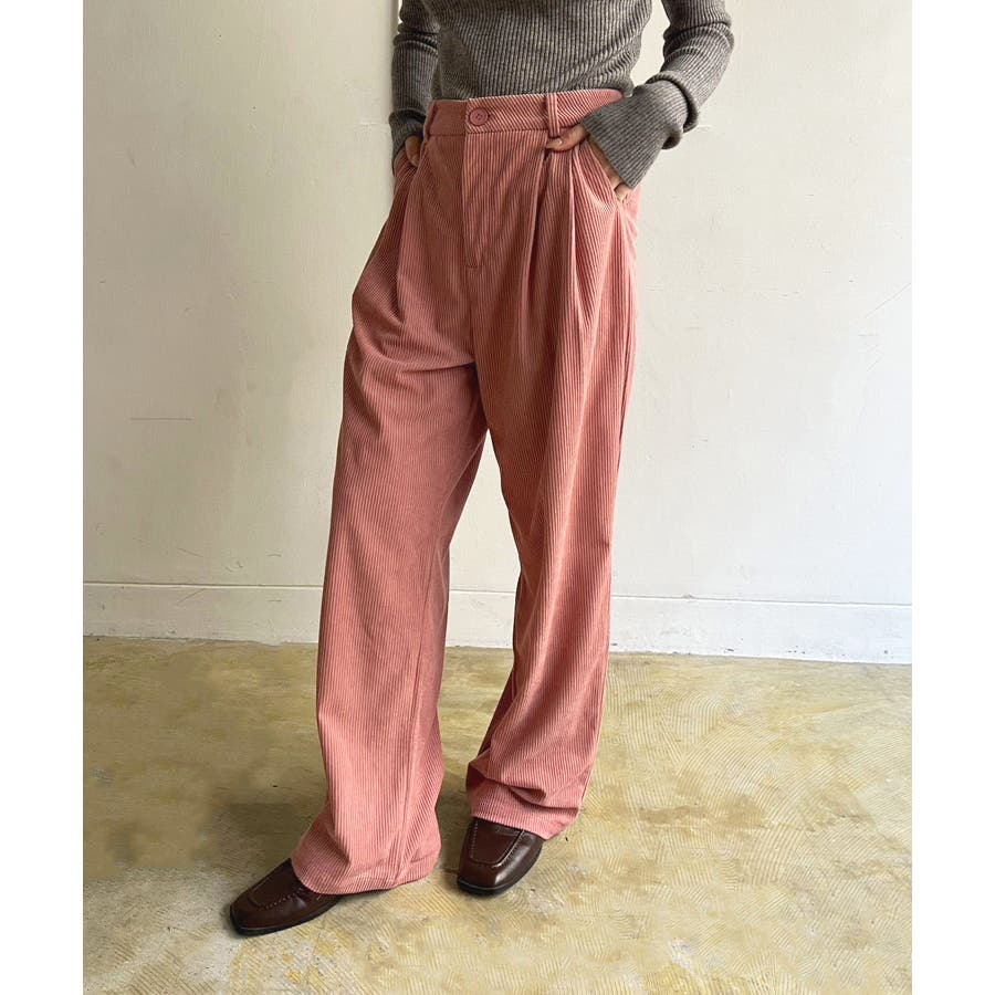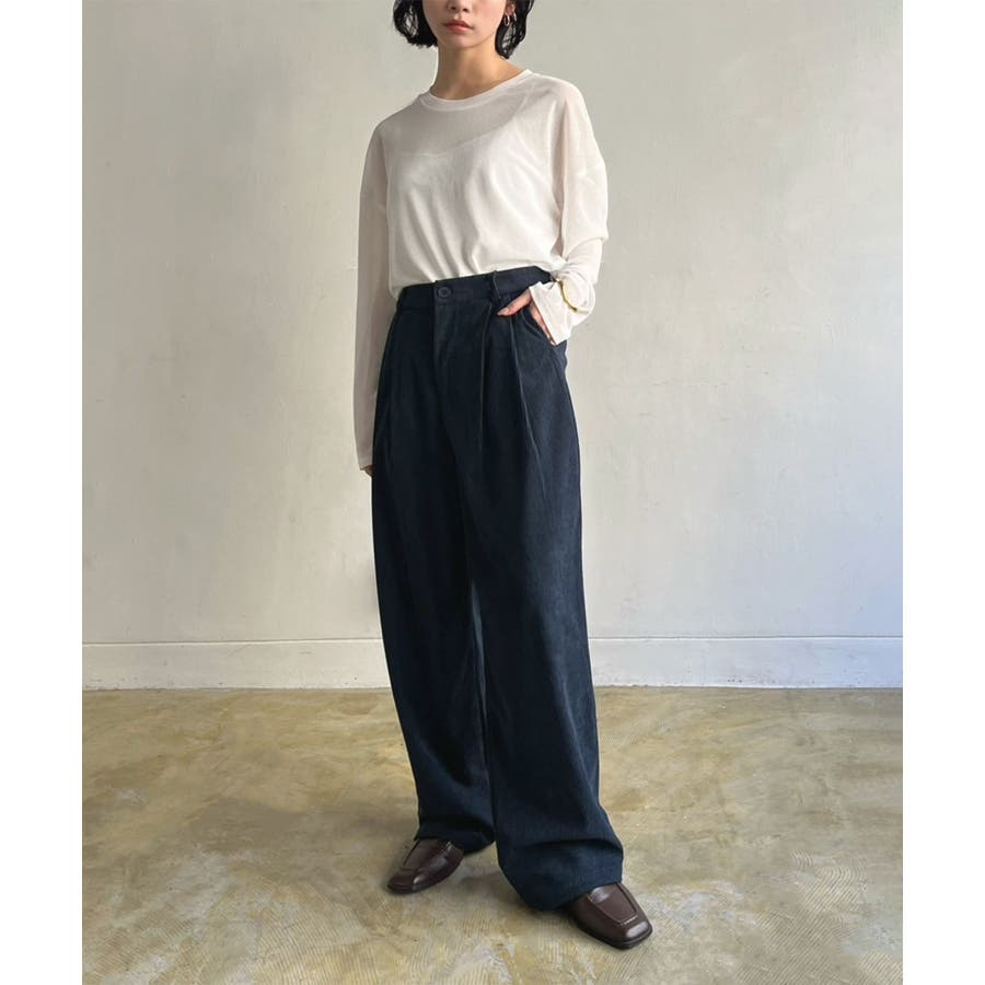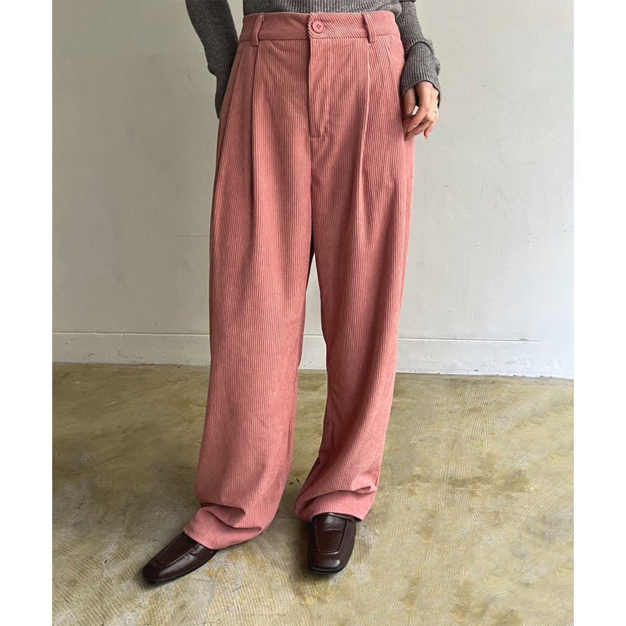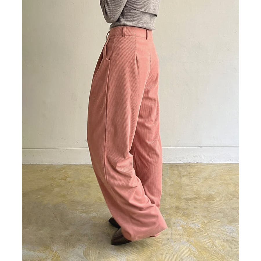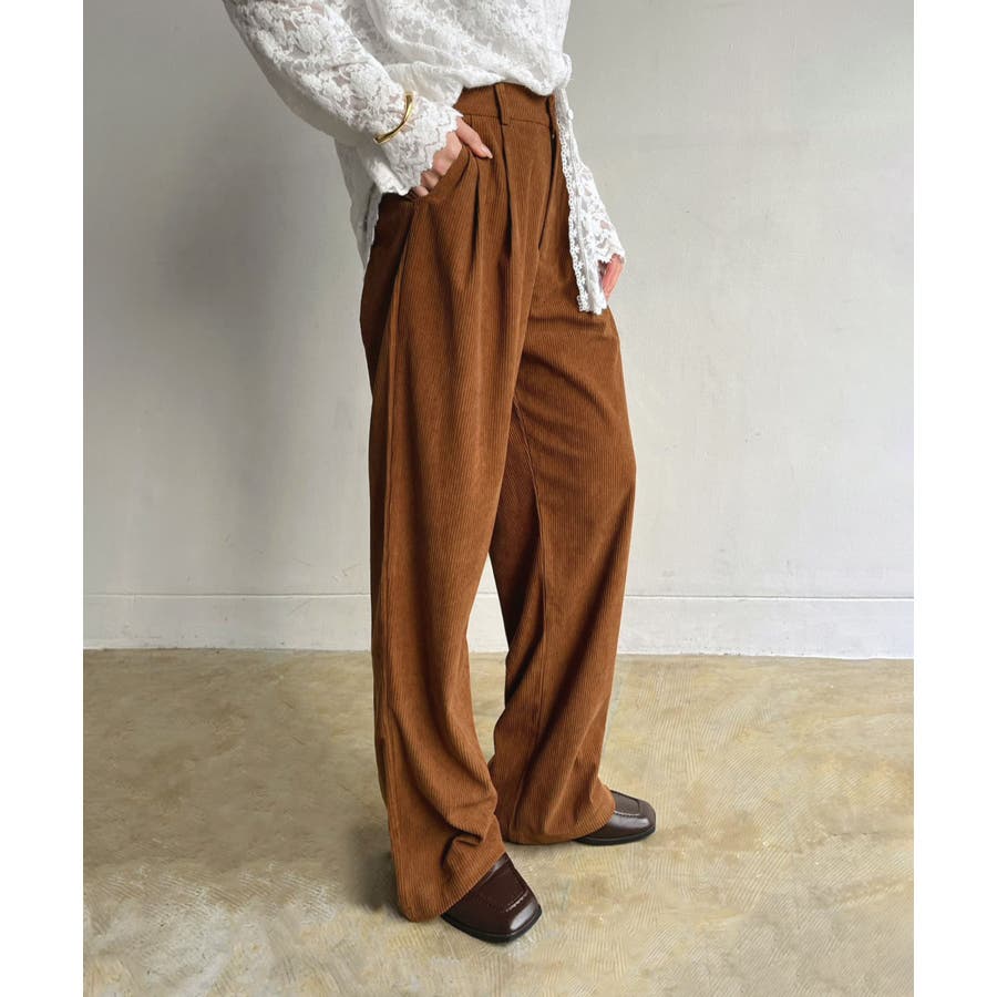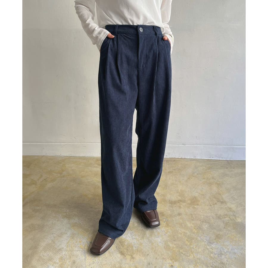存在感のある畝が特徴のコーデュロイ生地を使用したワイドパンツ。