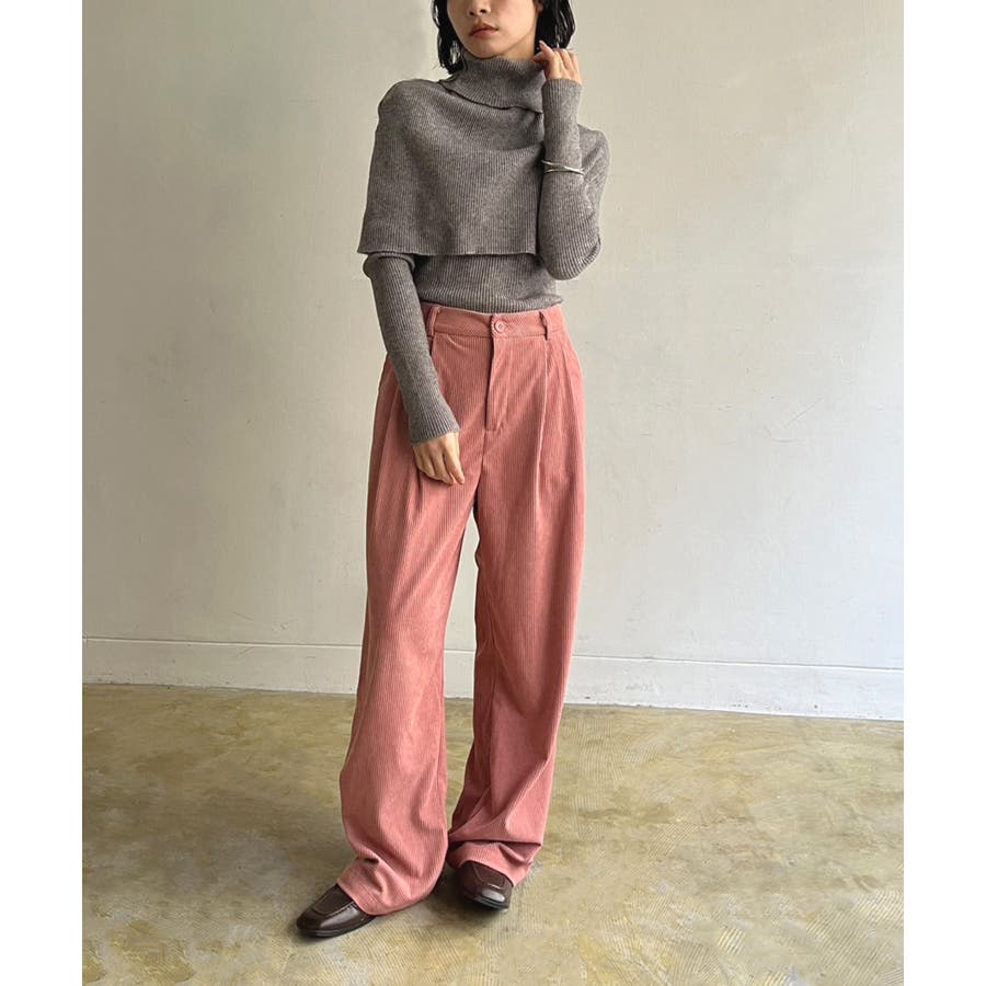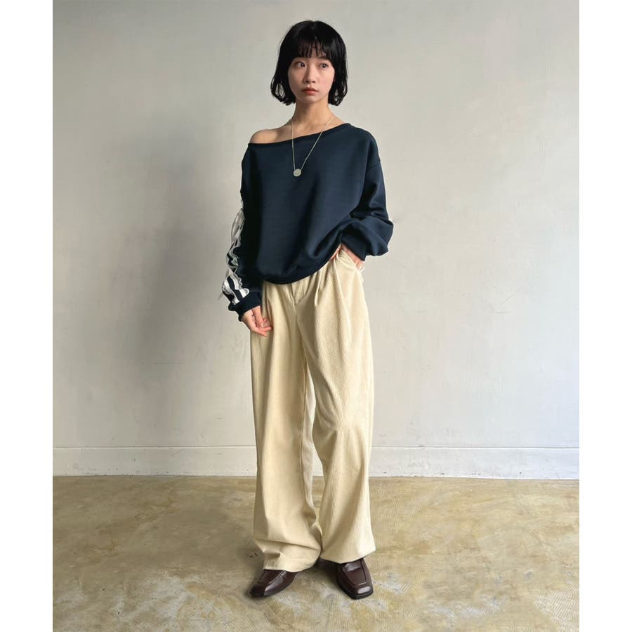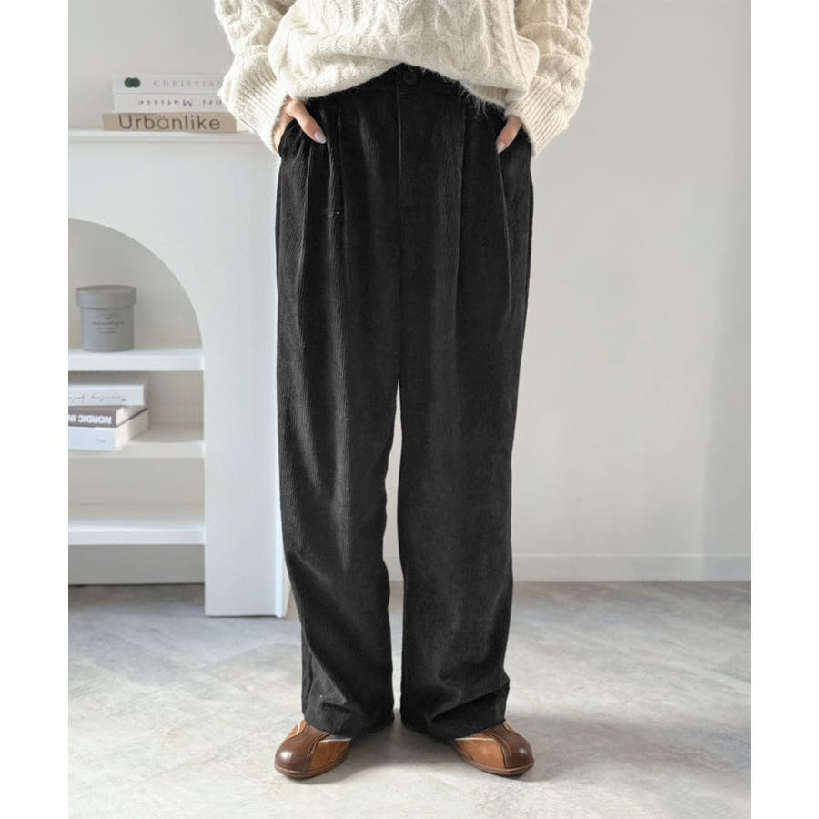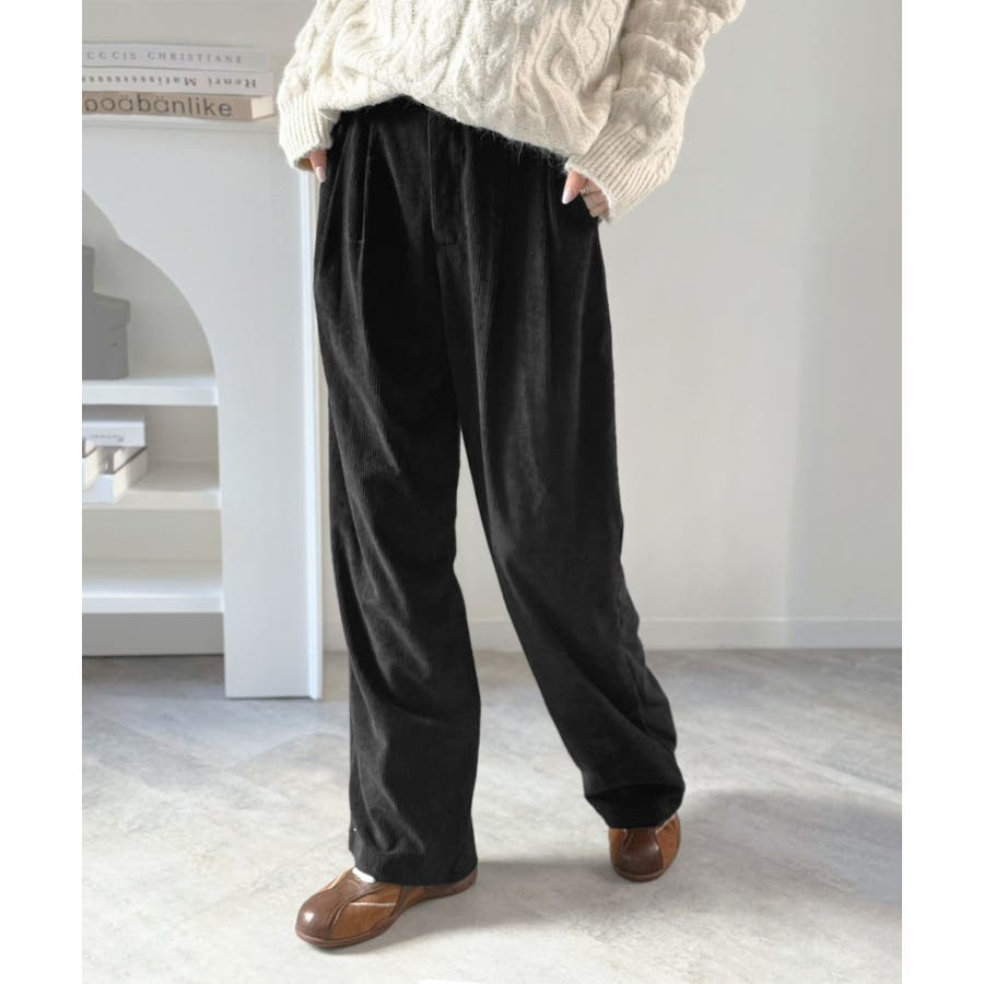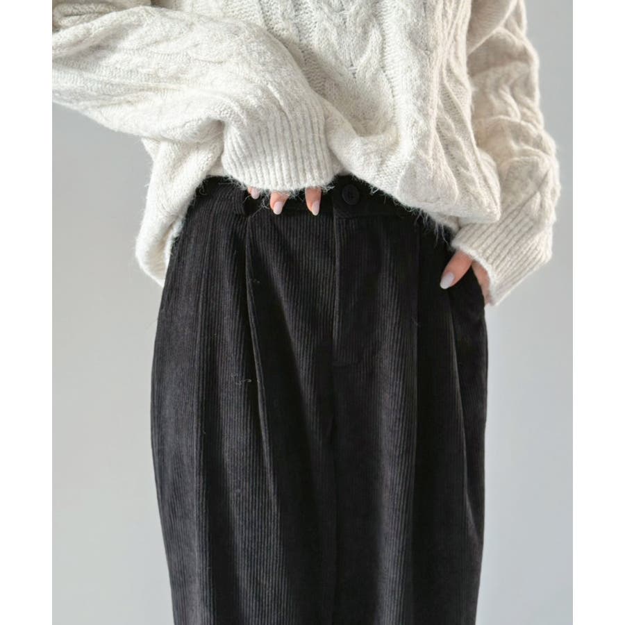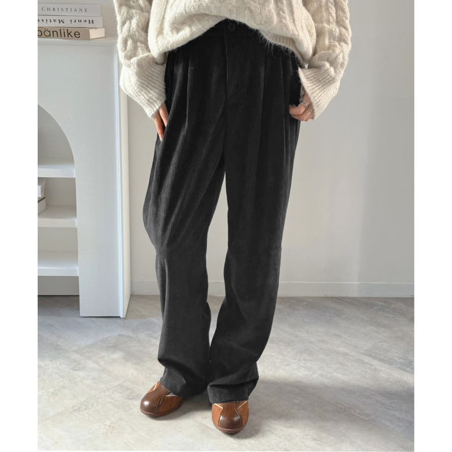 存在感のある畝が特徴のコーデュロイ生地を使用したワイドパンツ。