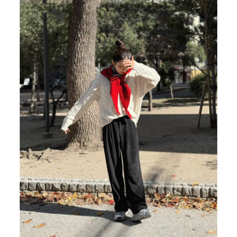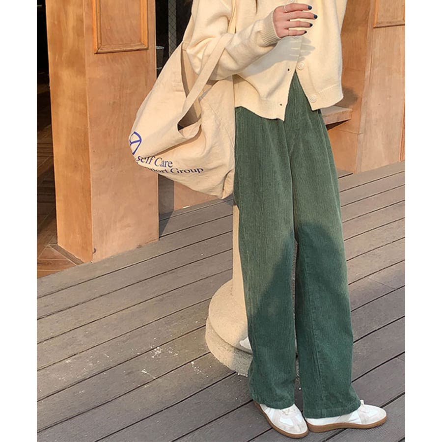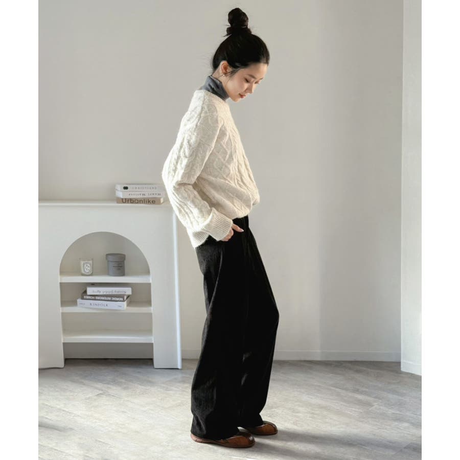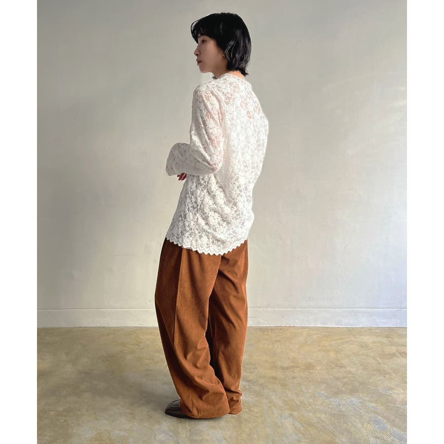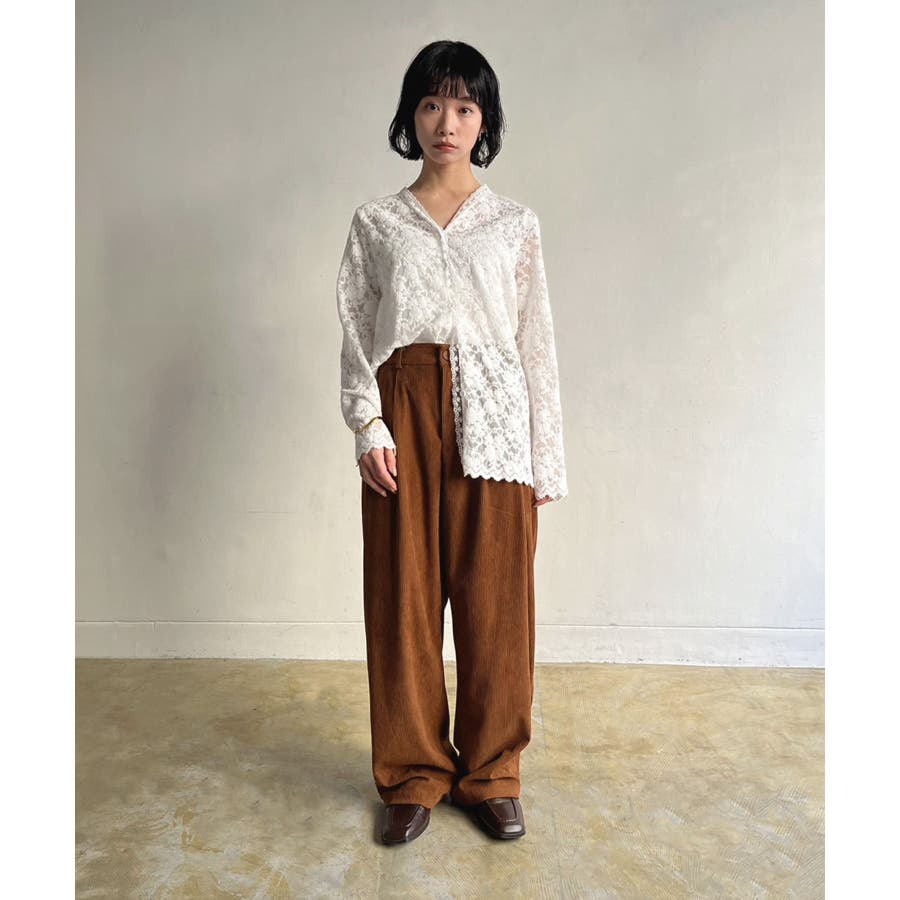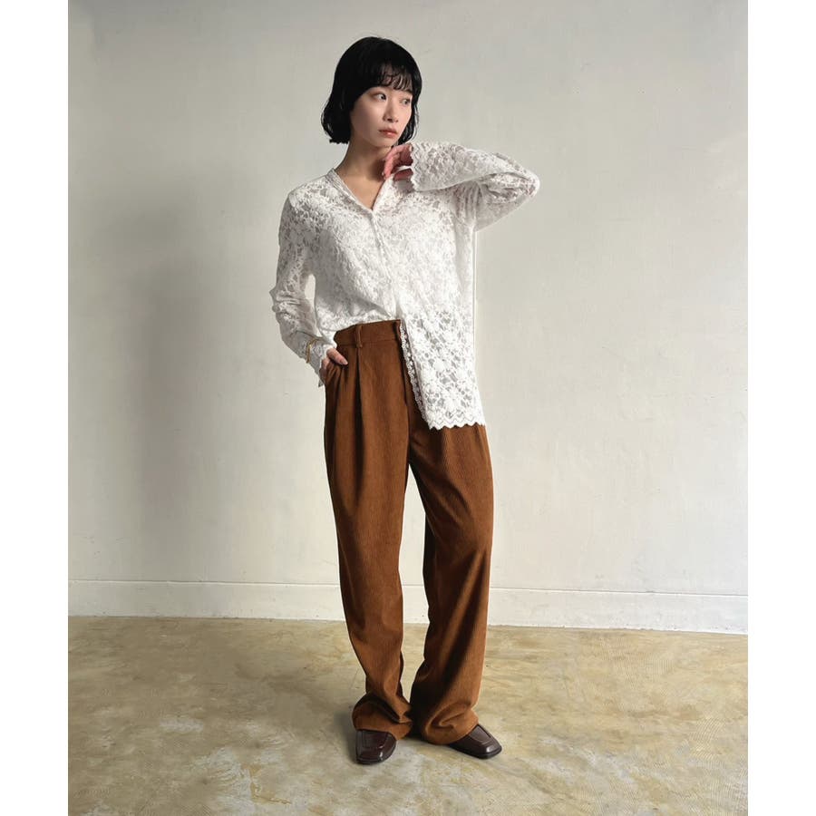 存在感のある畝が特徴のコーデュロイ生地を使用したワイドパンツ。