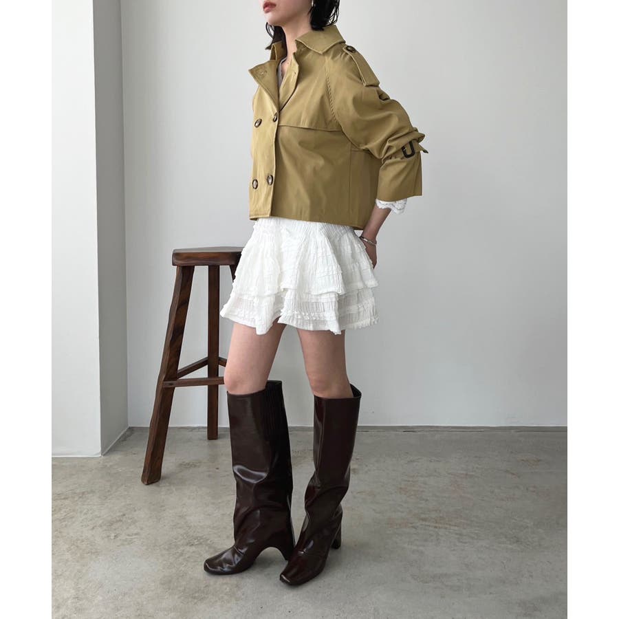 トレンチデザインのスカートと合わせてセットアップのように