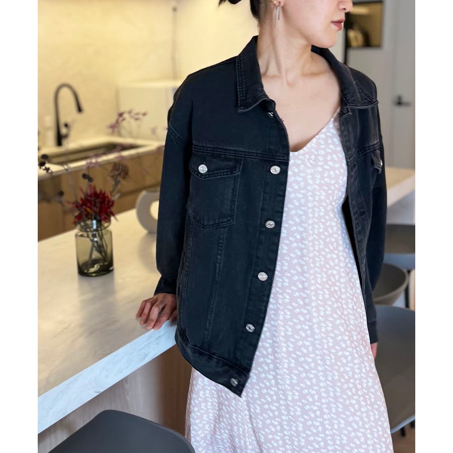 ヒップがすっぽり隠れるくらいのルーズシルエットで仕立てた