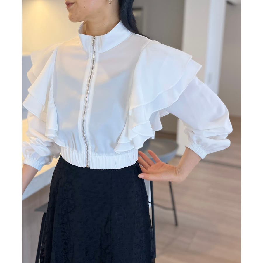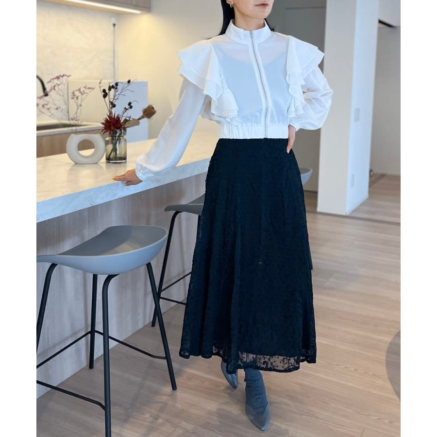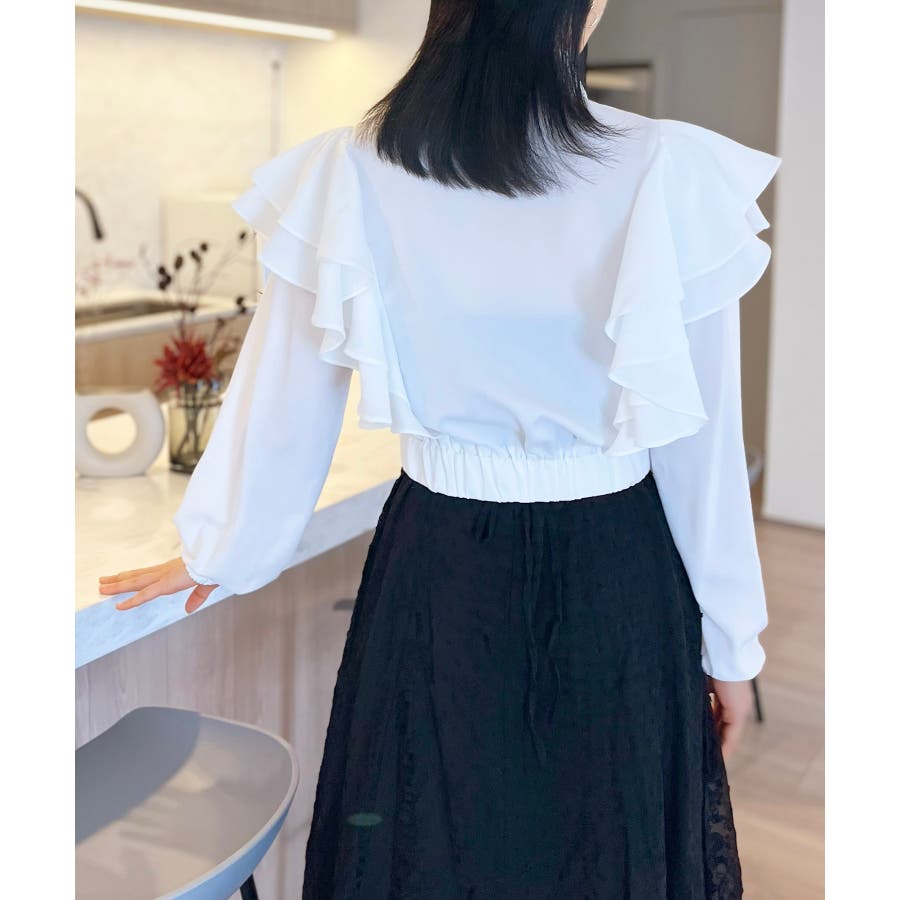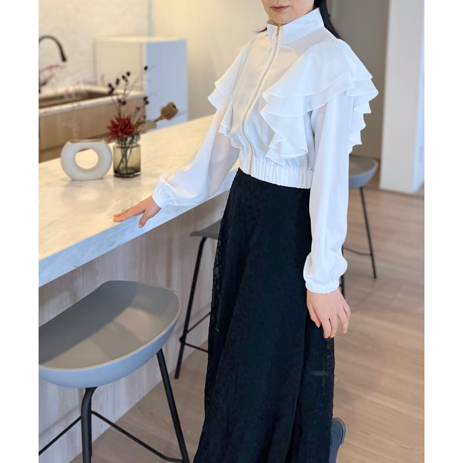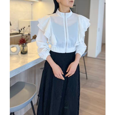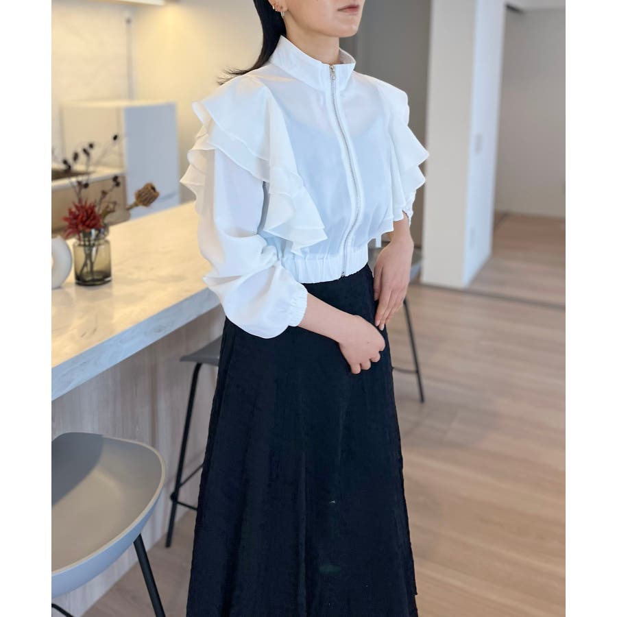 前後に挟み込んだたっぷり分量のラッフルでフェミニンさを演出!