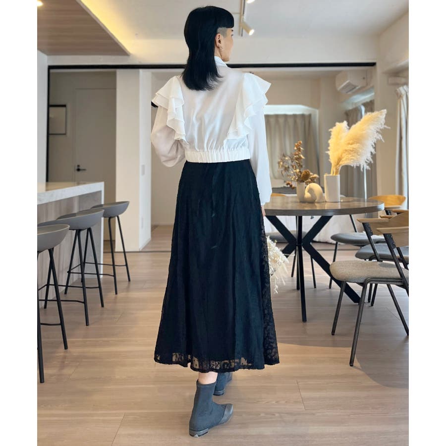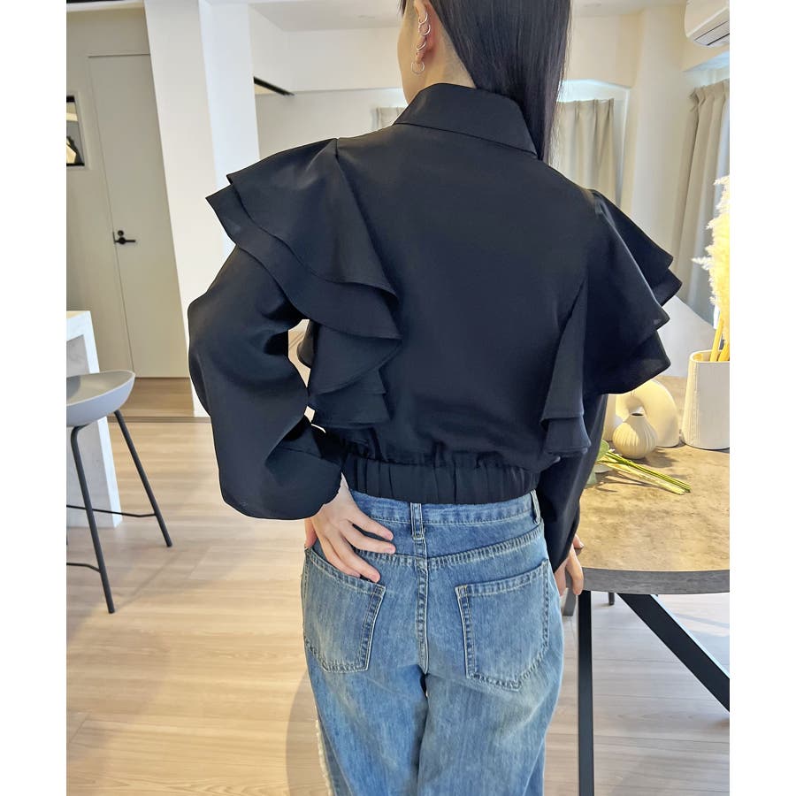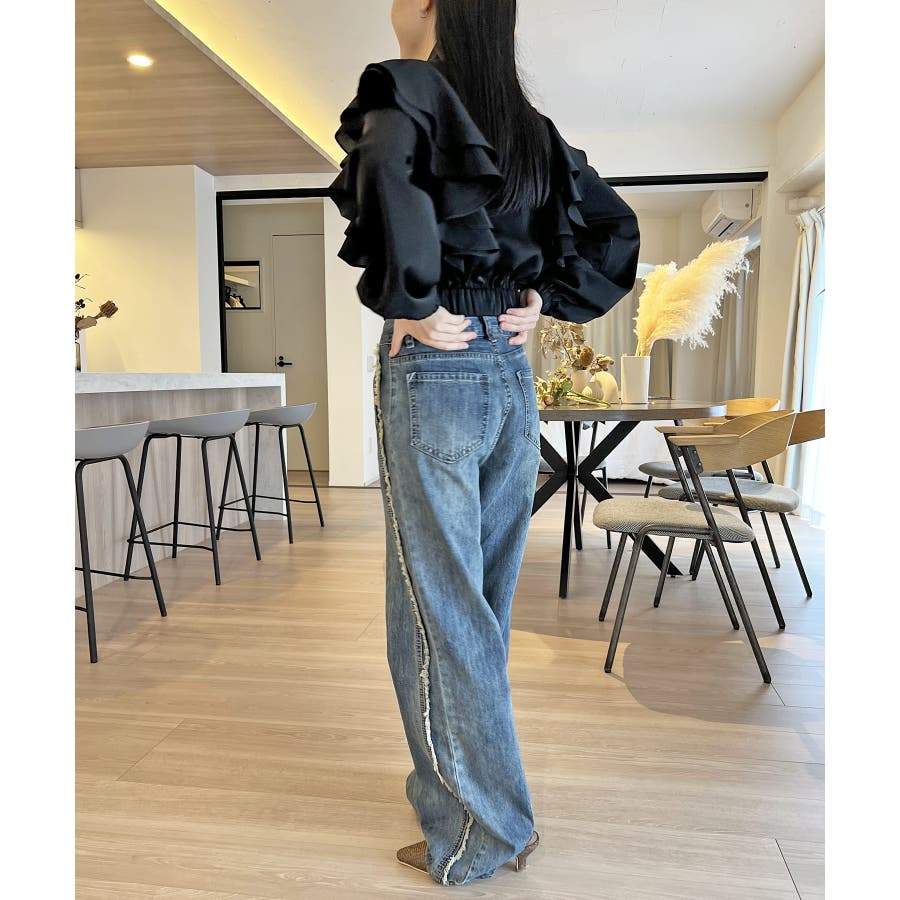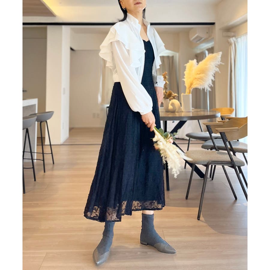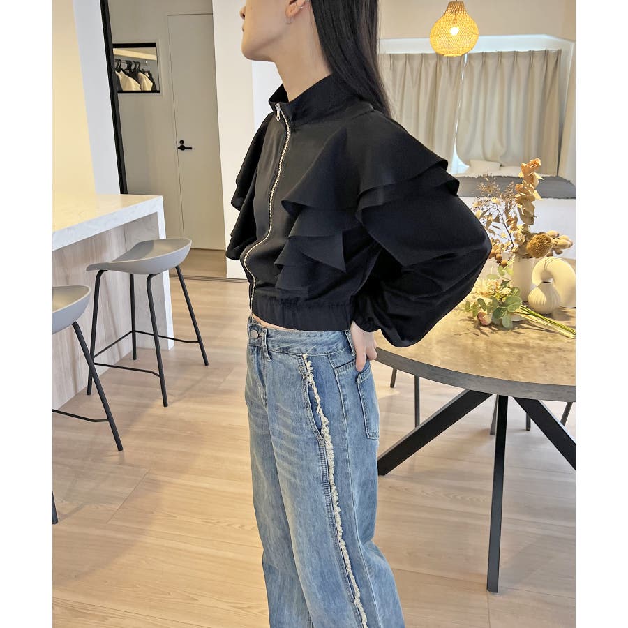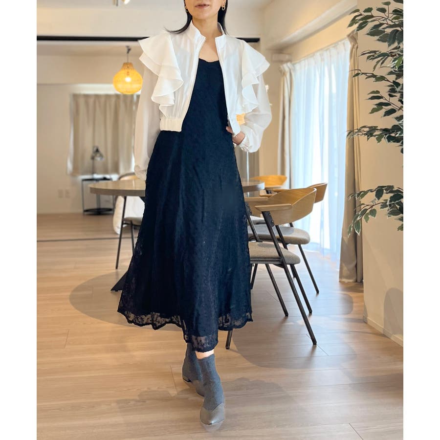 前後に挟み込んだたっぷり分量のラッフルでフェミニンさを演出!