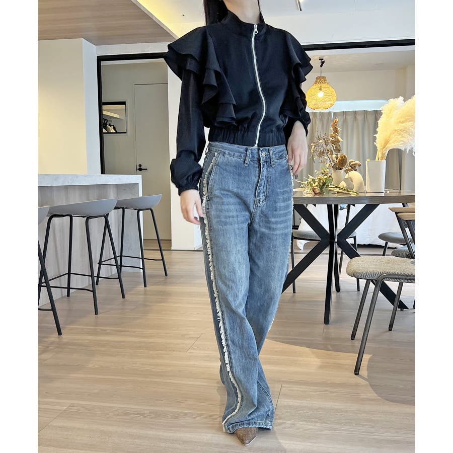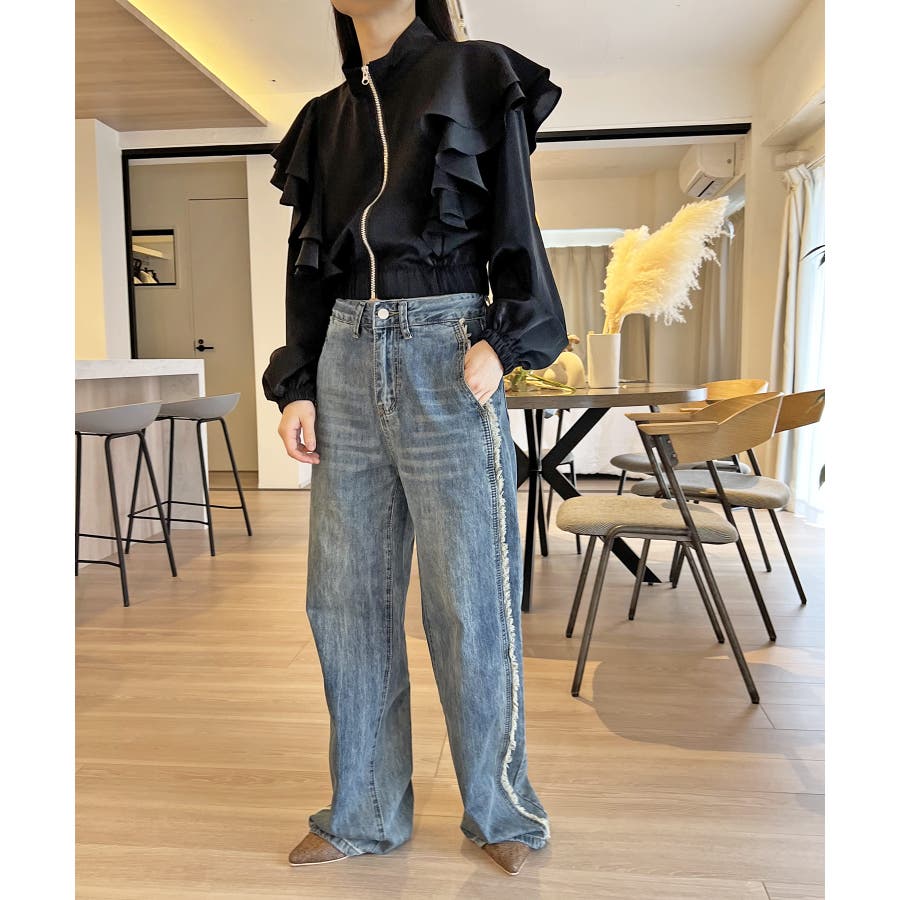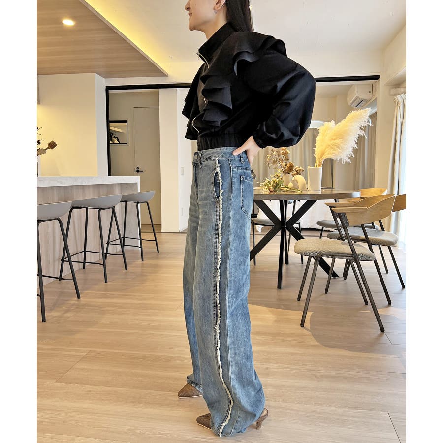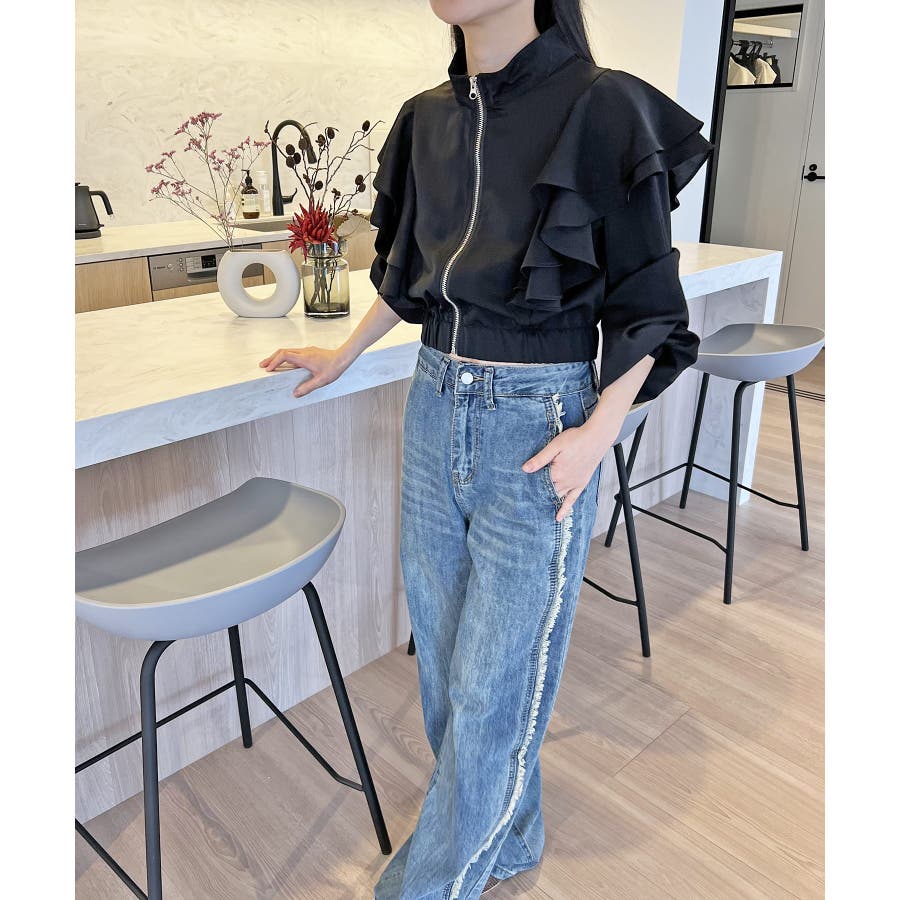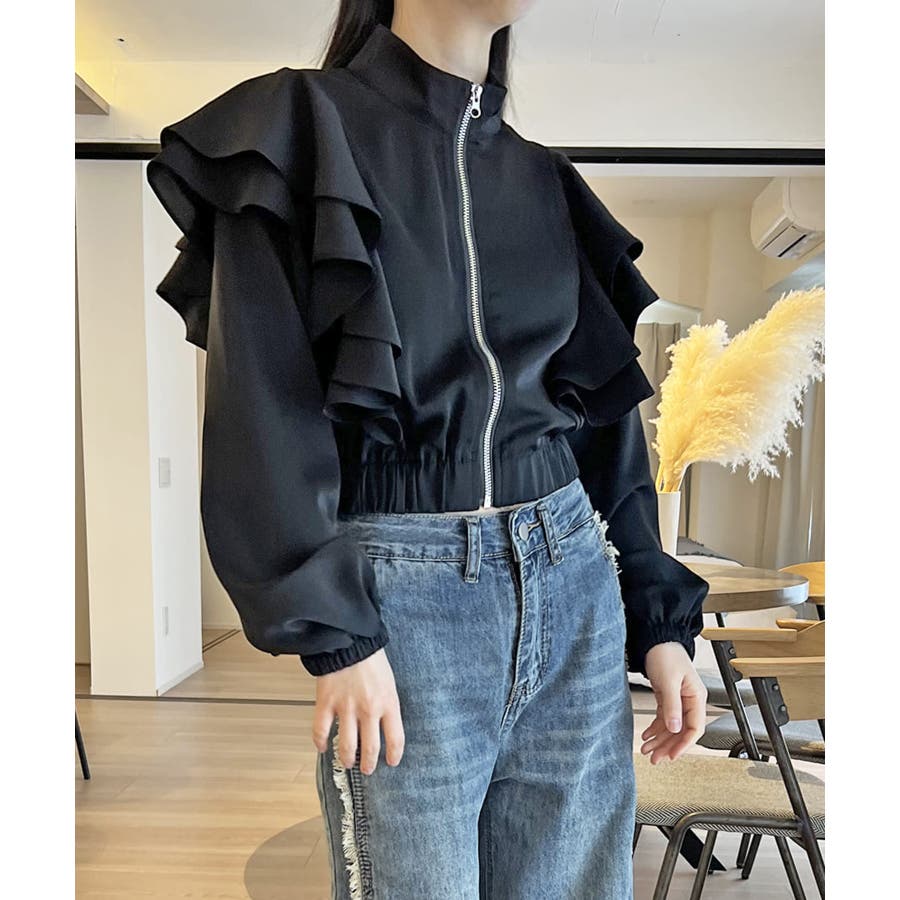前後に挟み込んだたっぷり分量のラッフルでフェミニンさを演出!