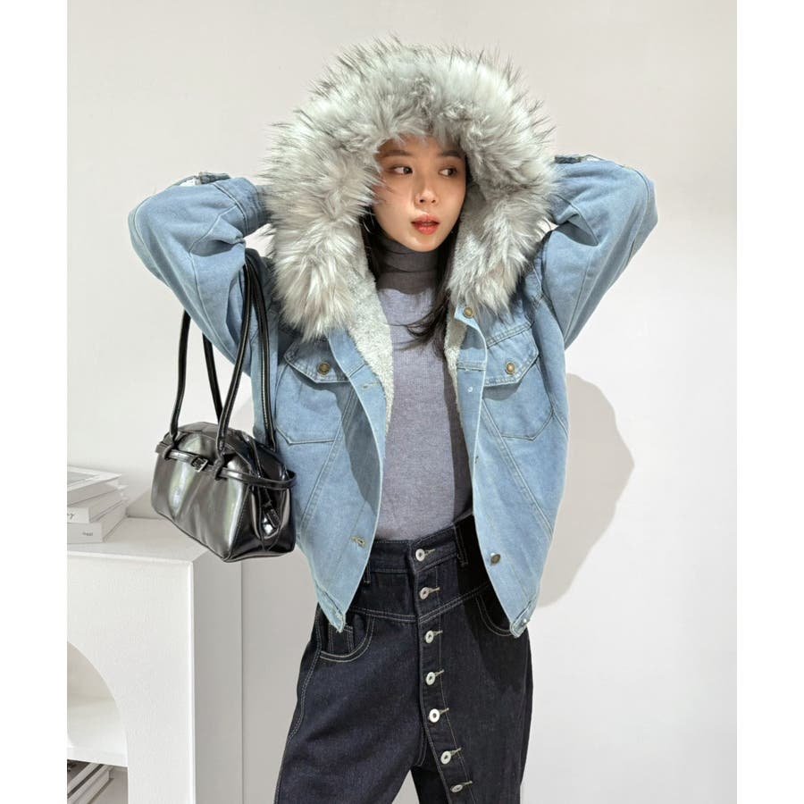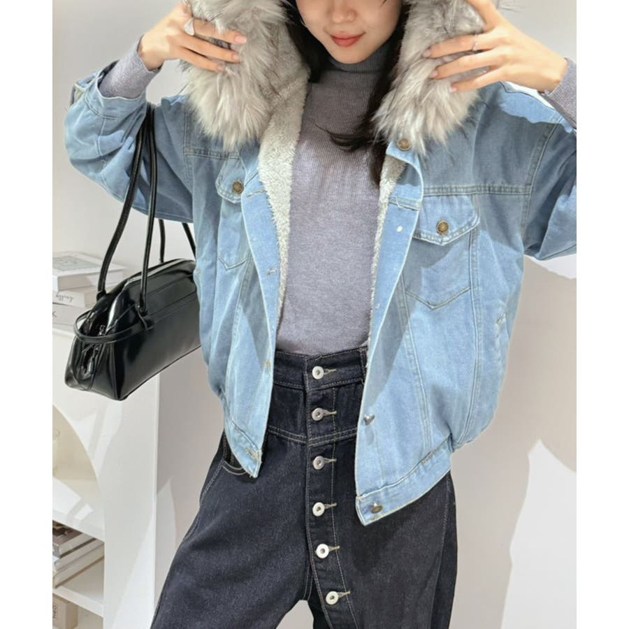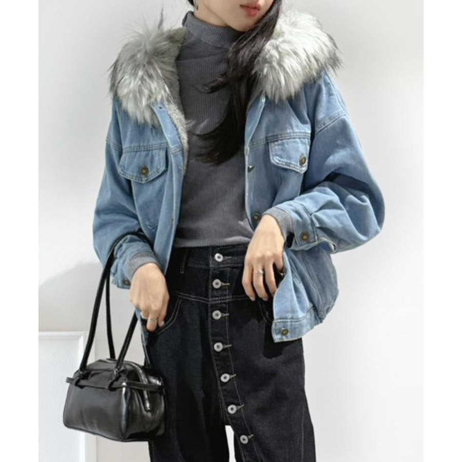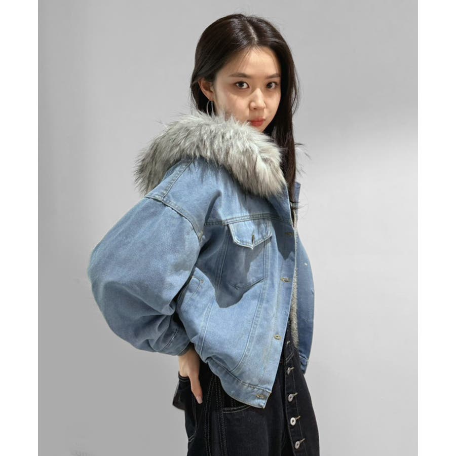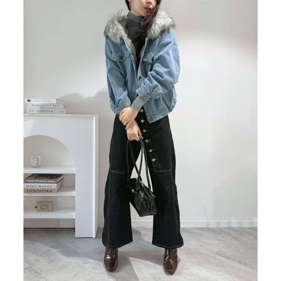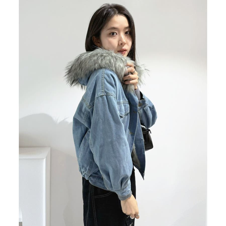 【ファー取り外し可】インナーボアデニムショートブルゾン