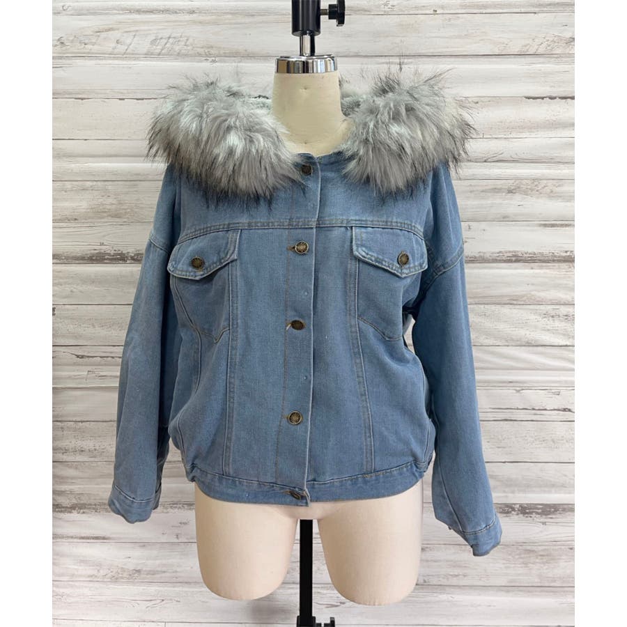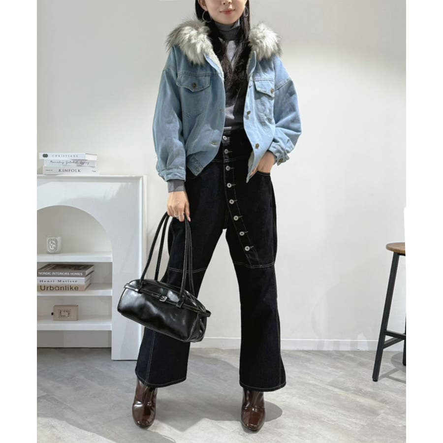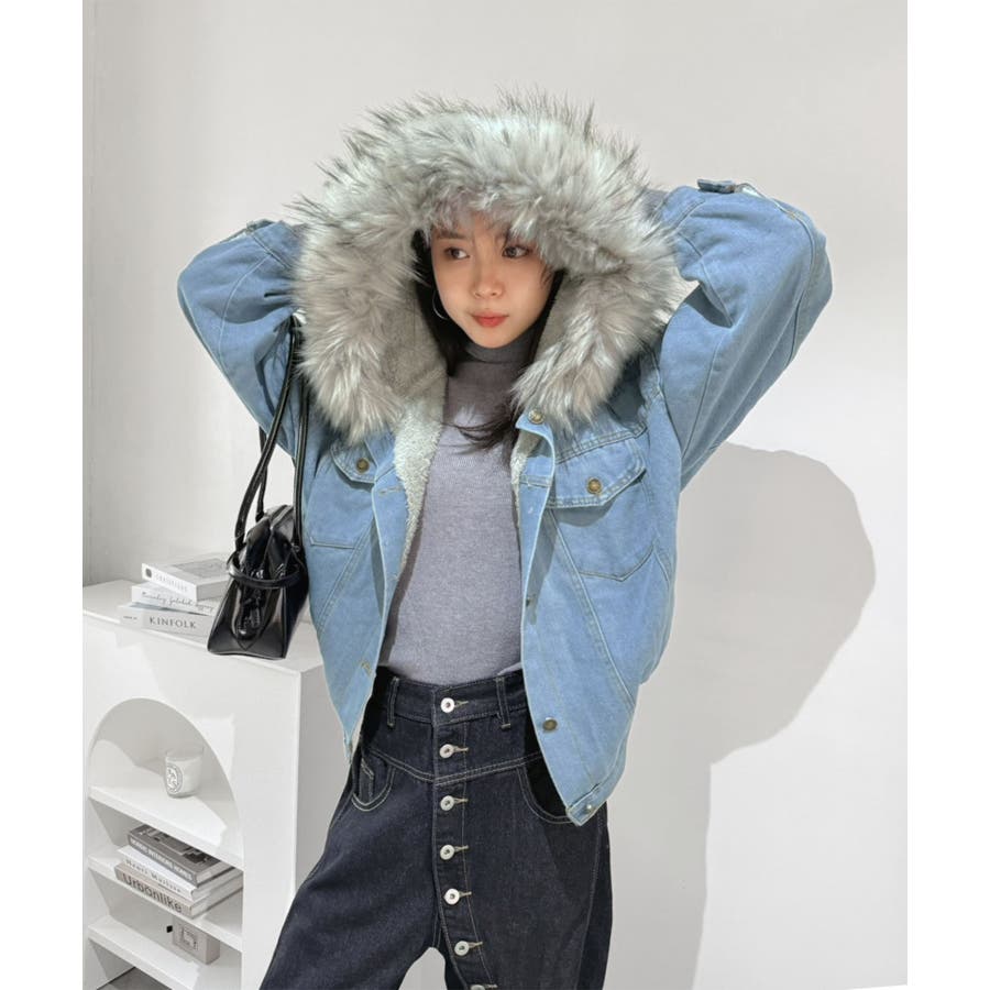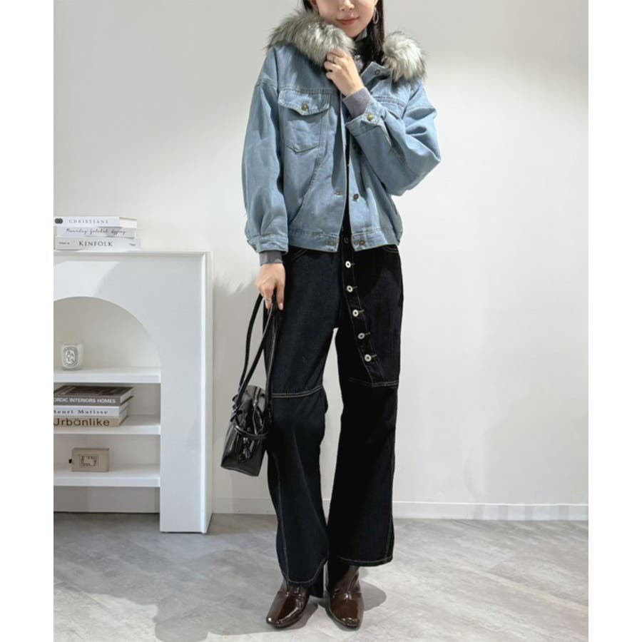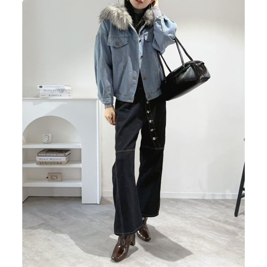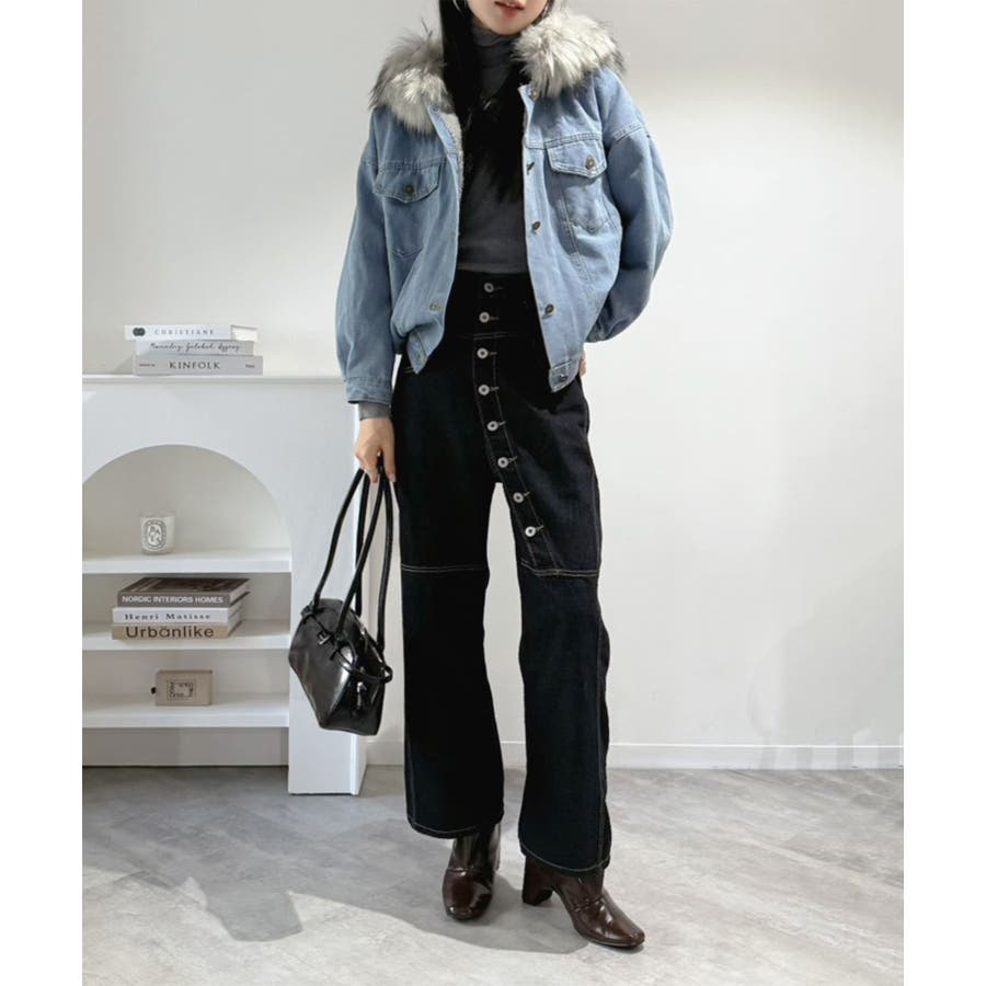 【ファー取り外し可】インナーボアデニムショートブルゾン