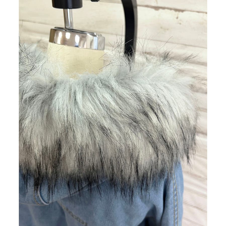毛足のあるフード端のファーもデニムとのコントラストに!