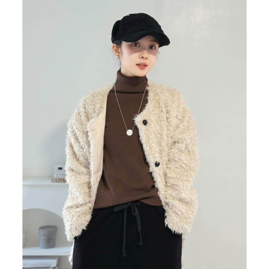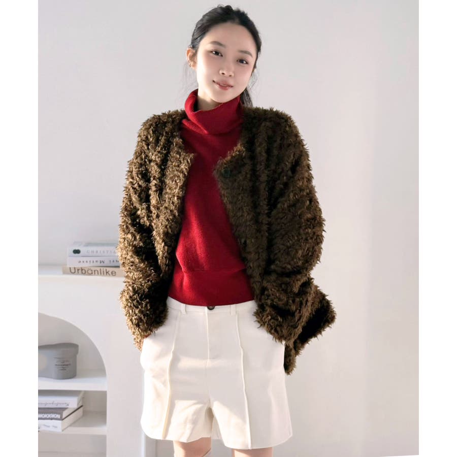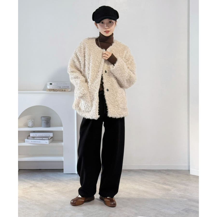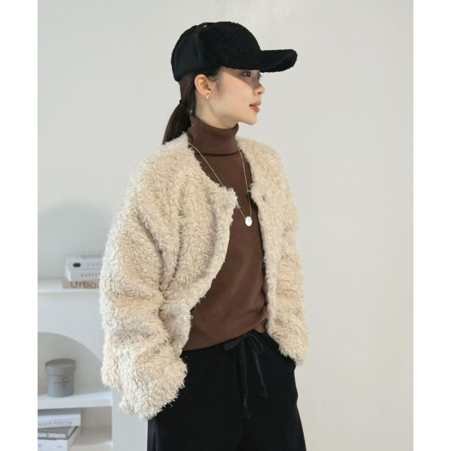 毛足が長すぎないフェイクファーも、華美な雰囲気になりすぎず