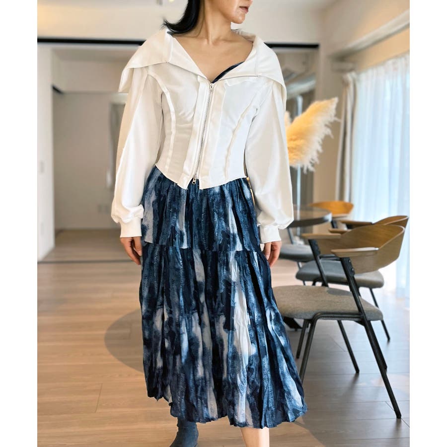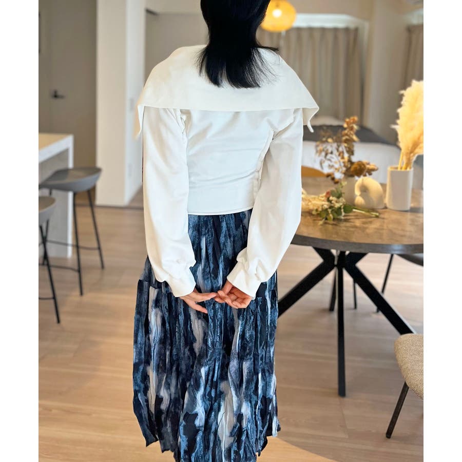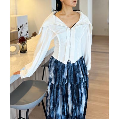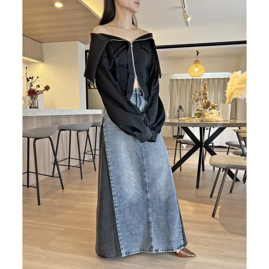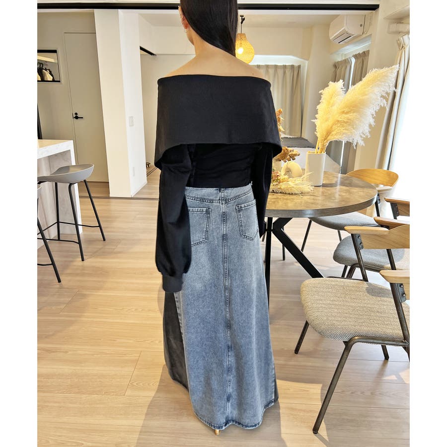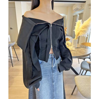 開けてオフショルダーで着ればセンシュアルさがプラスされ印象チェンジに。