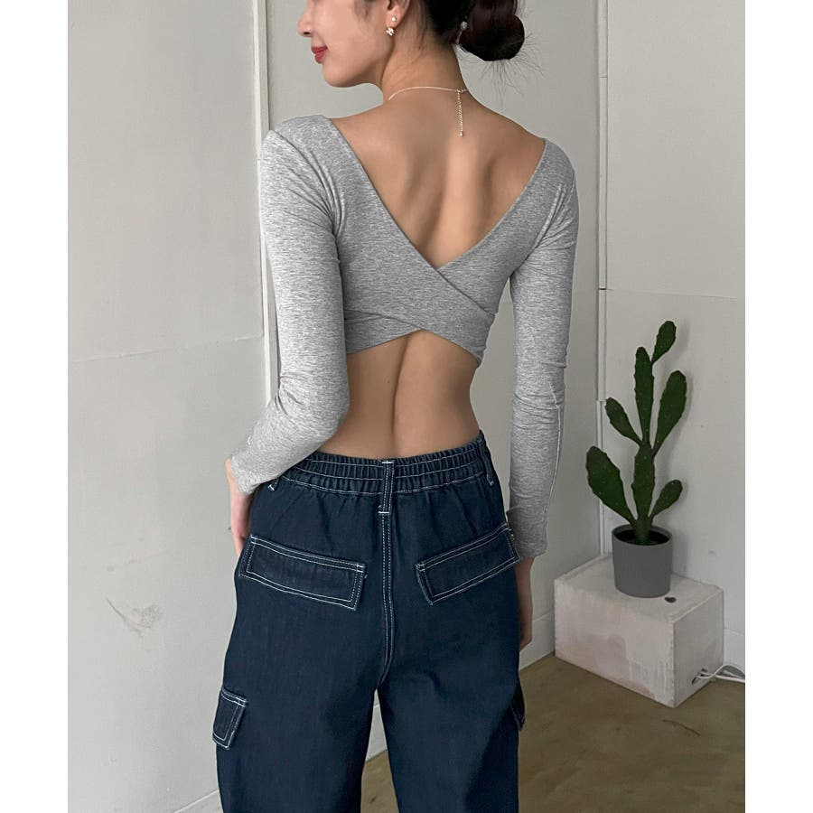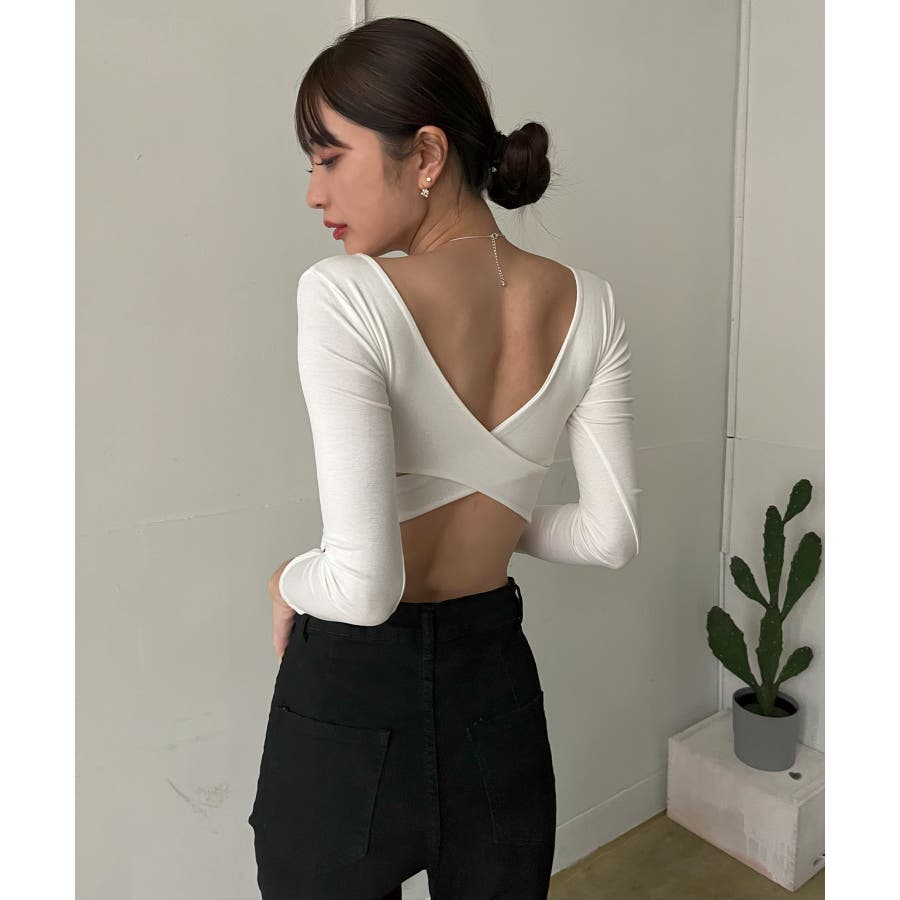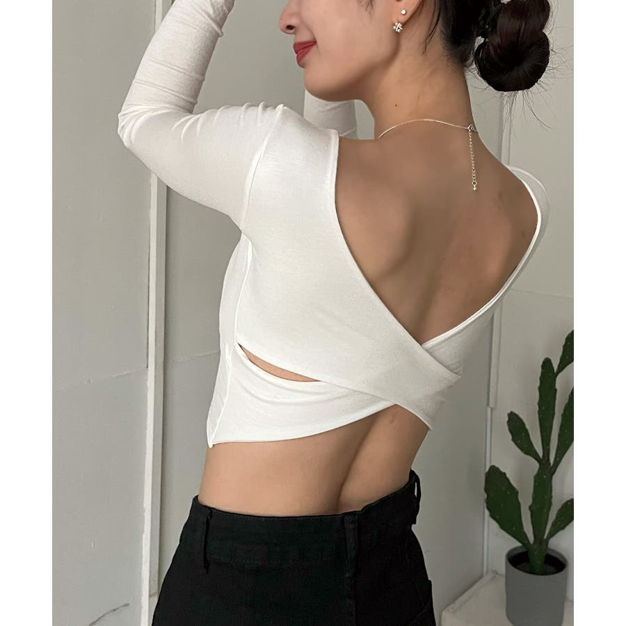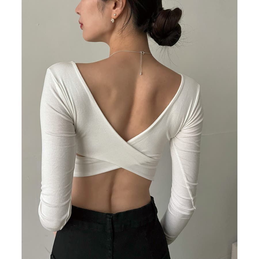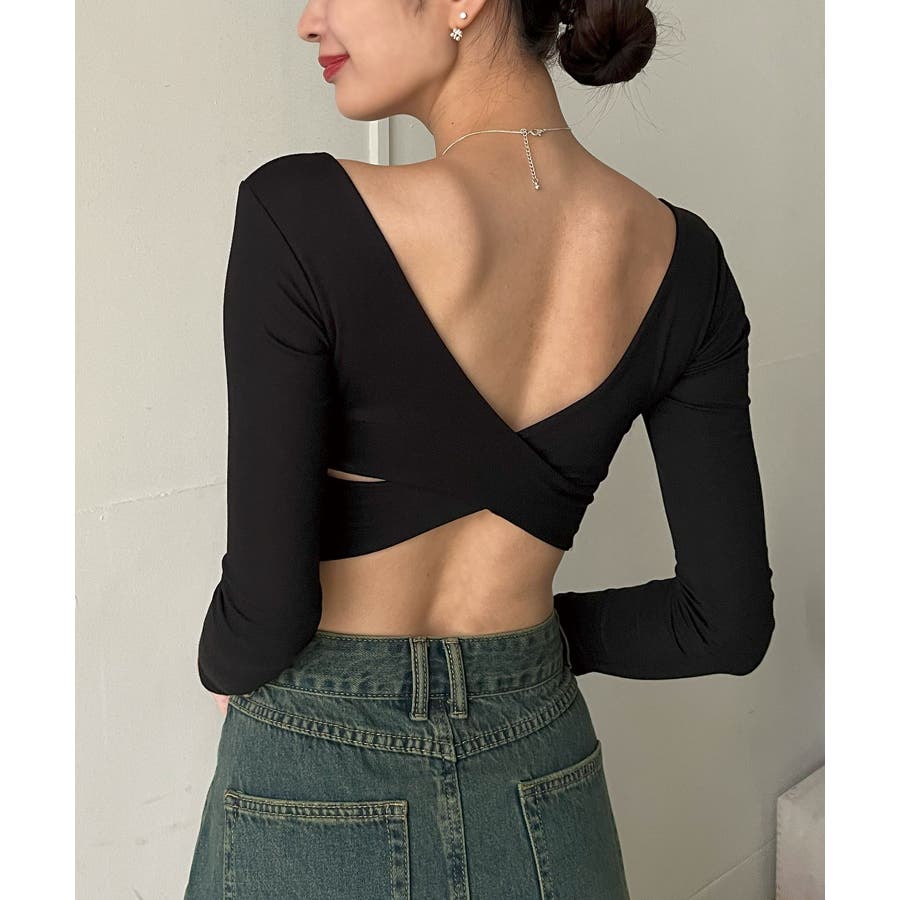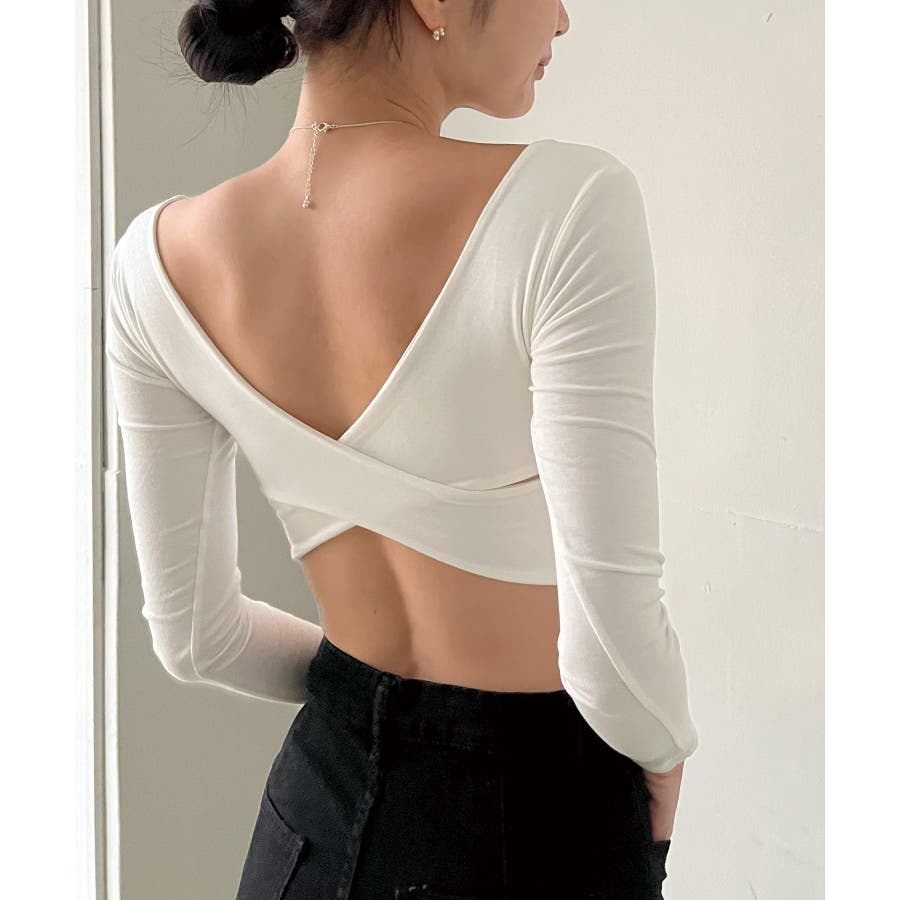 広めに開いた衿ぐりと背中のクロスデザインは女性らしさ抜群です♪