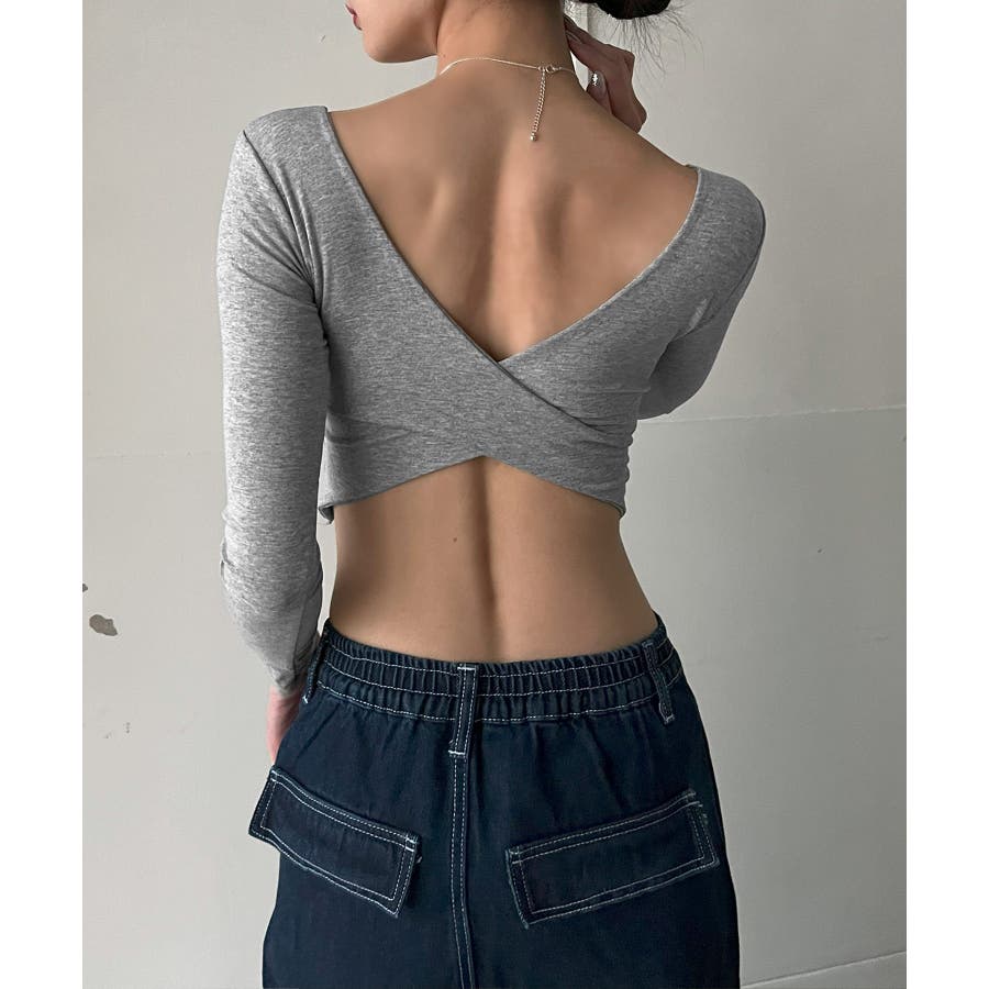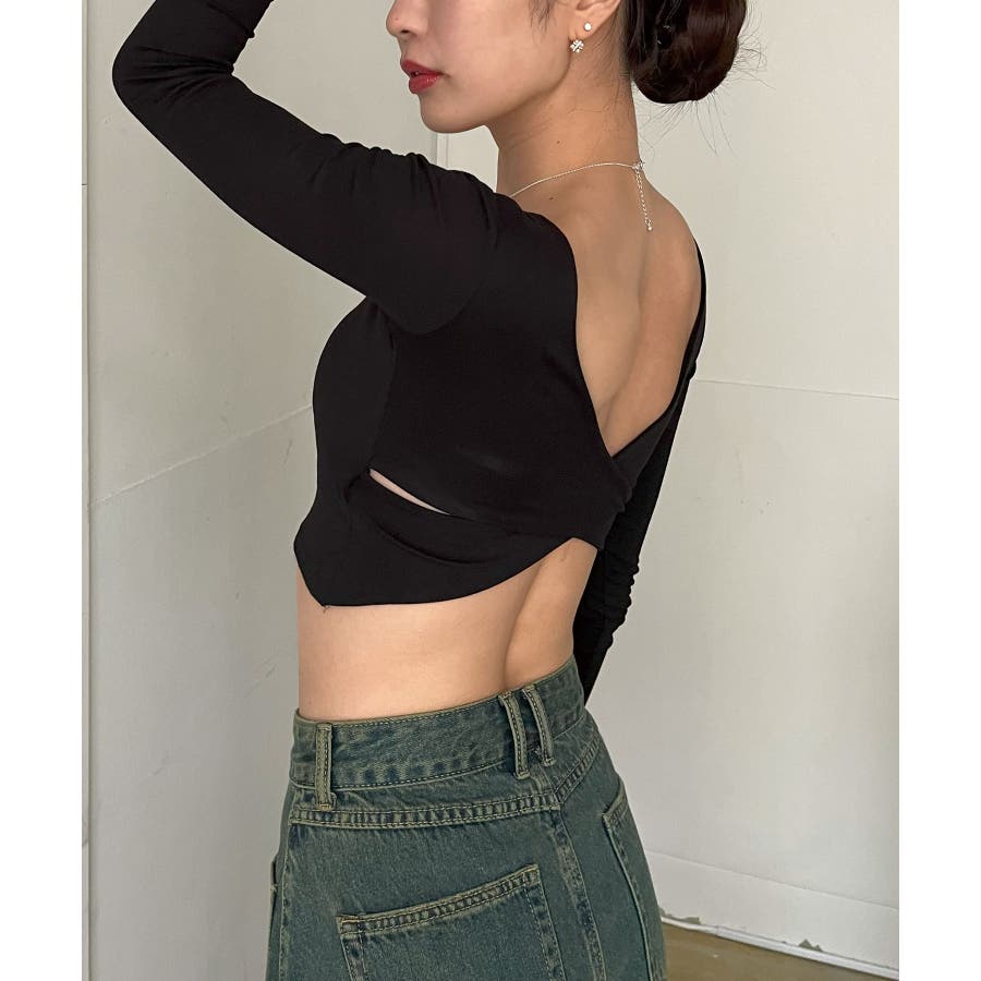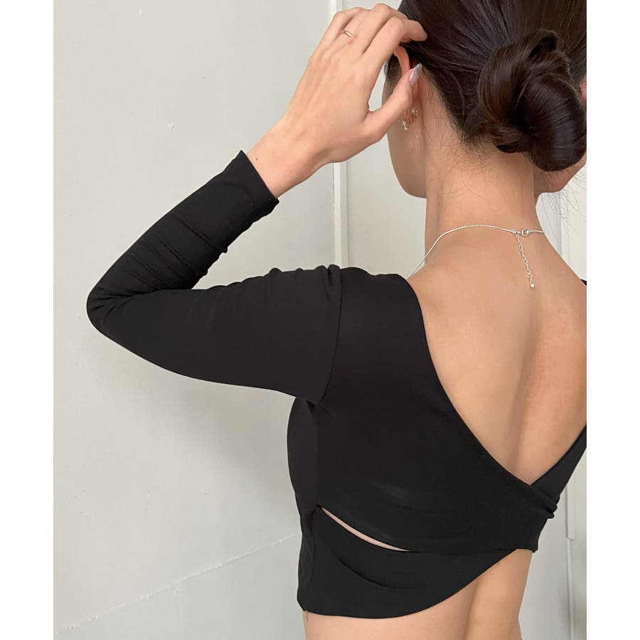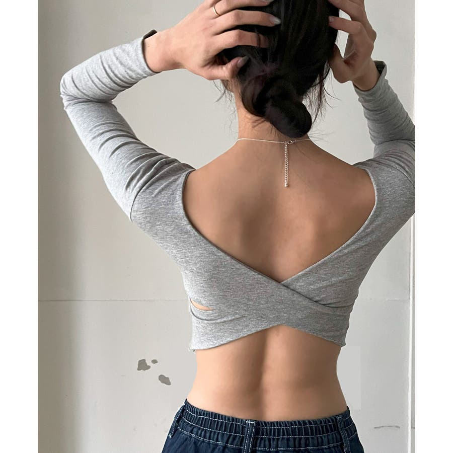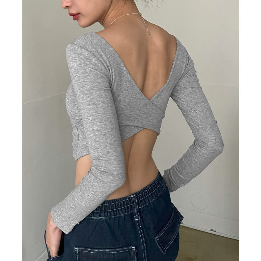 広めに開いた衿ぐりと背中のクロスデザインは女性らしさ抜群です♪
