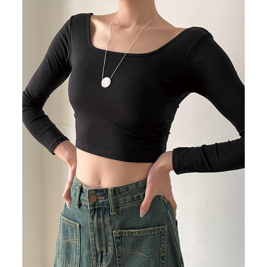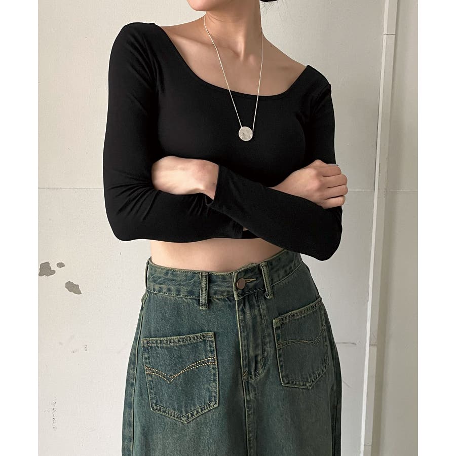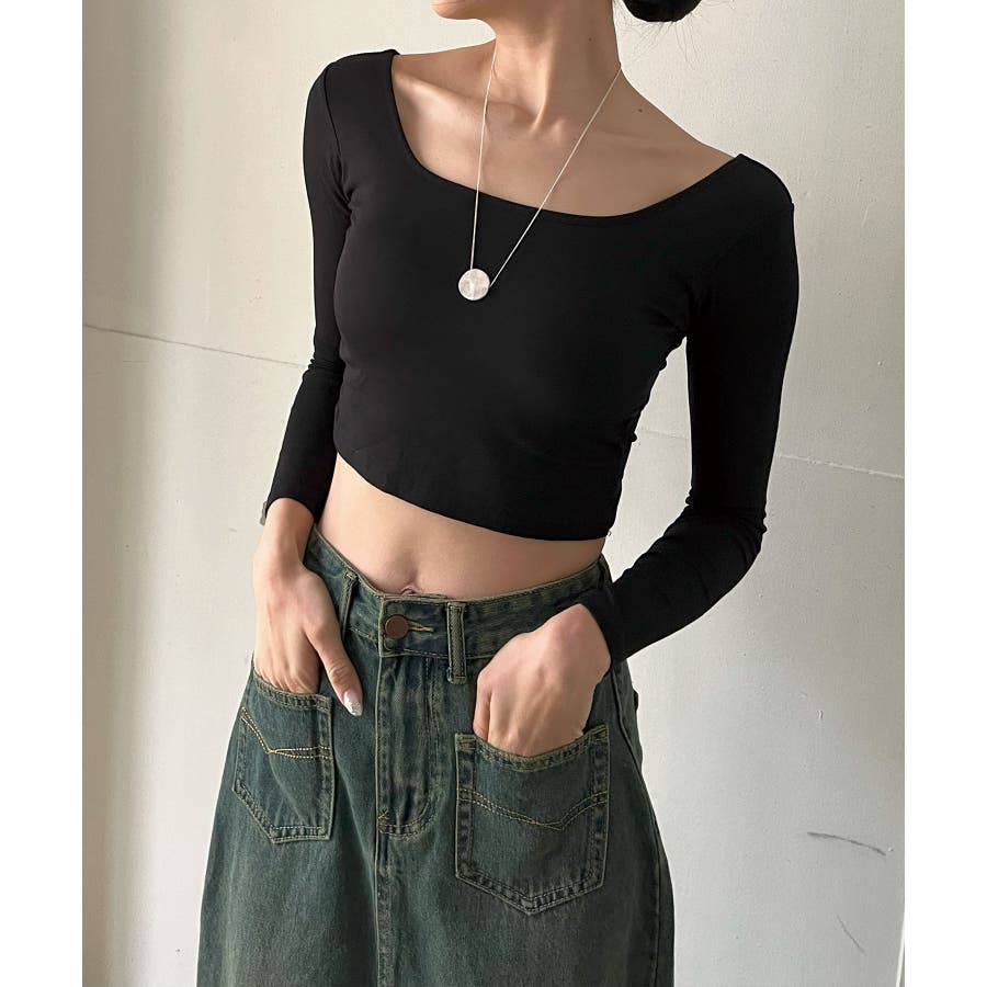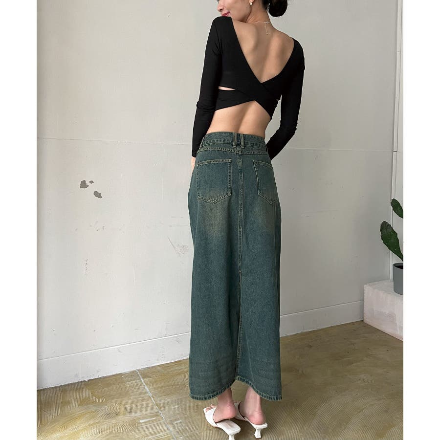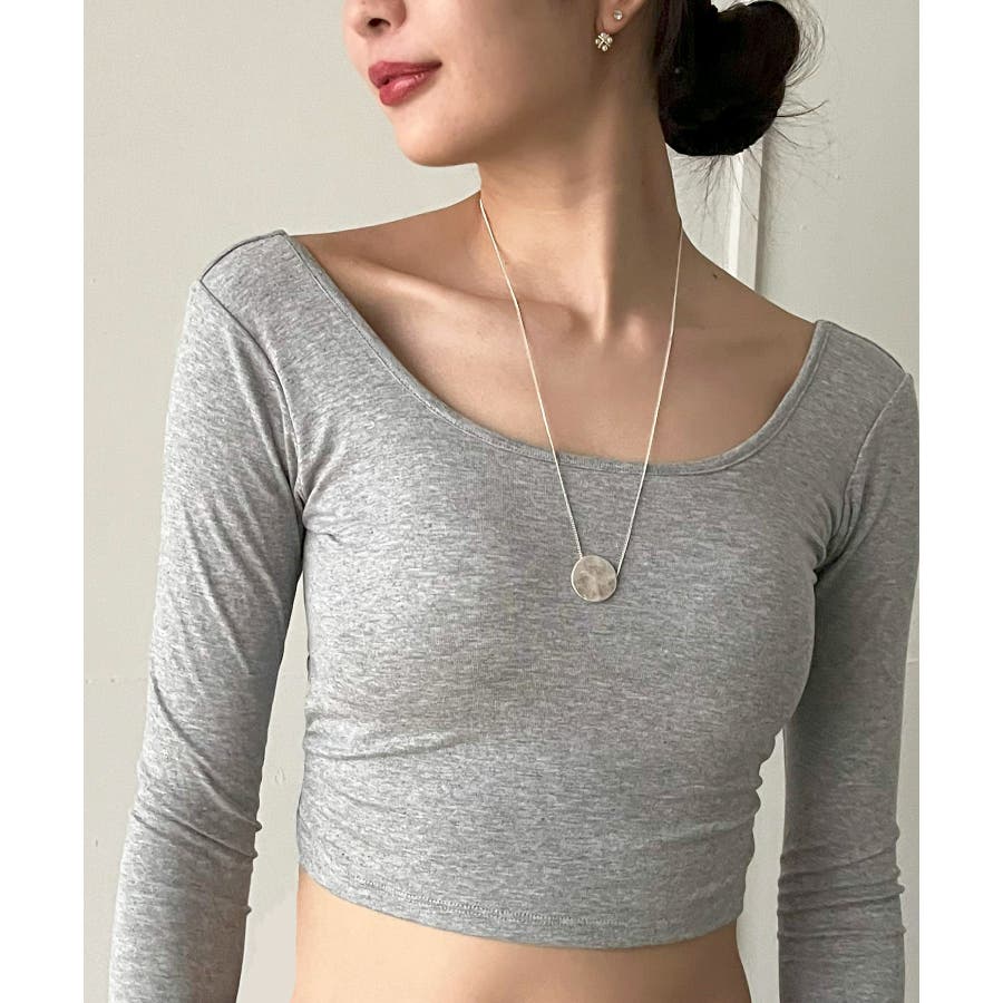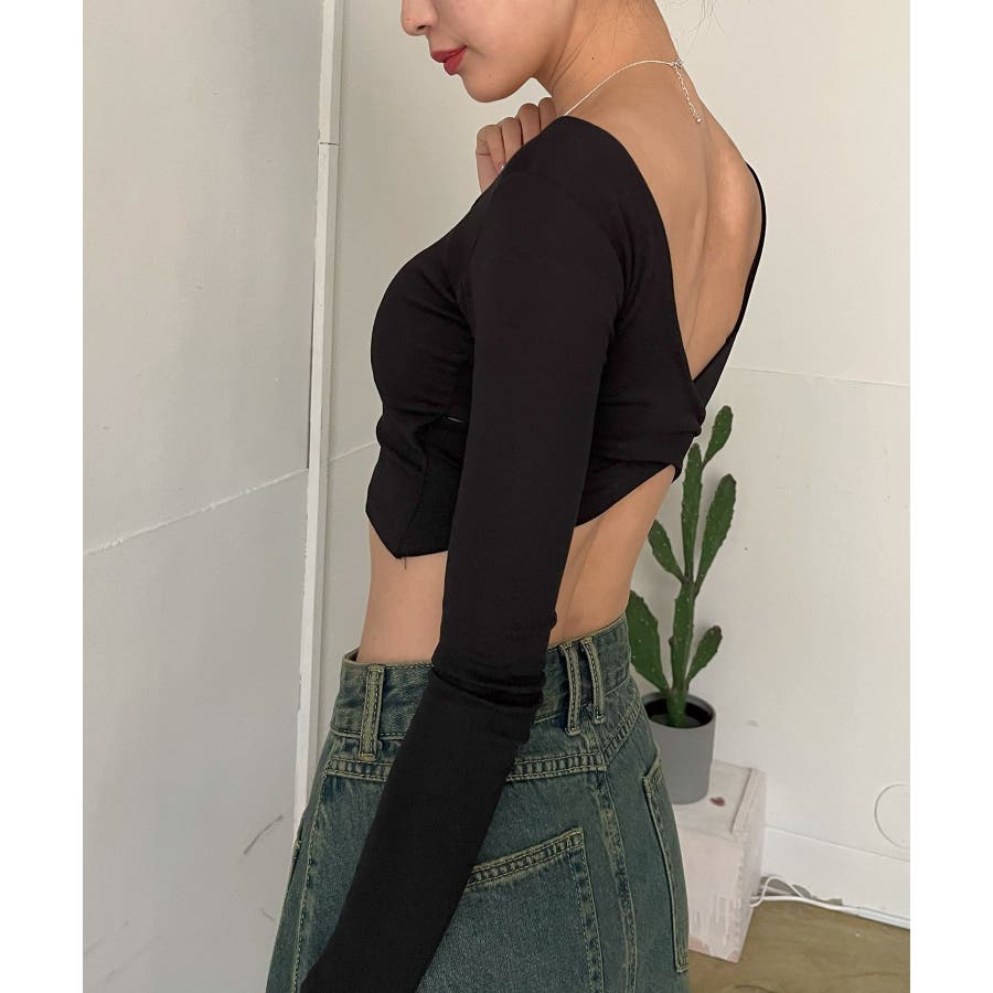広めに開いた衿ぐりと背中のクロスデザインは女性らしさ抜群です♪