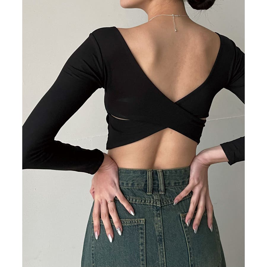思い切ったショート丈とバックのクロスデザインが目を惹く