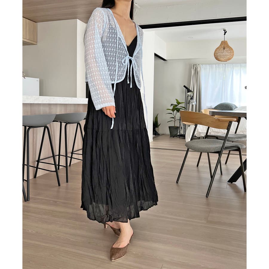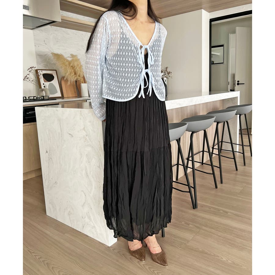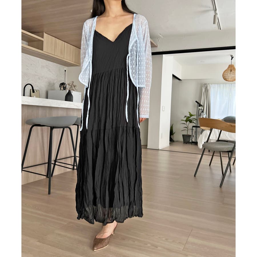 夏場のキャミワンピースやタンクトップの上にさらりと羽織って