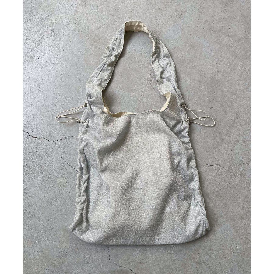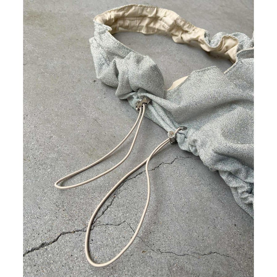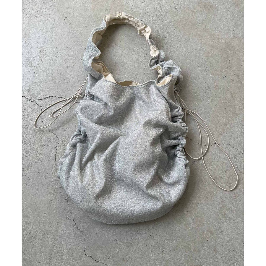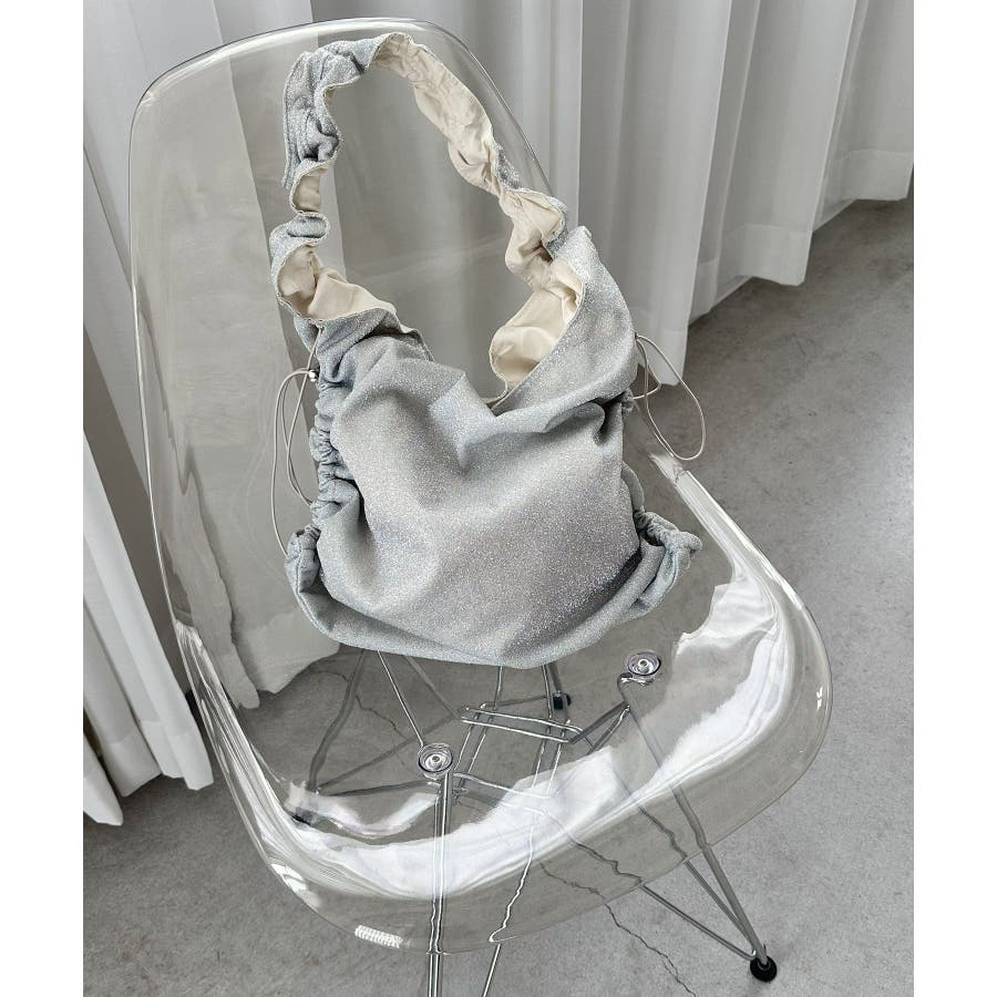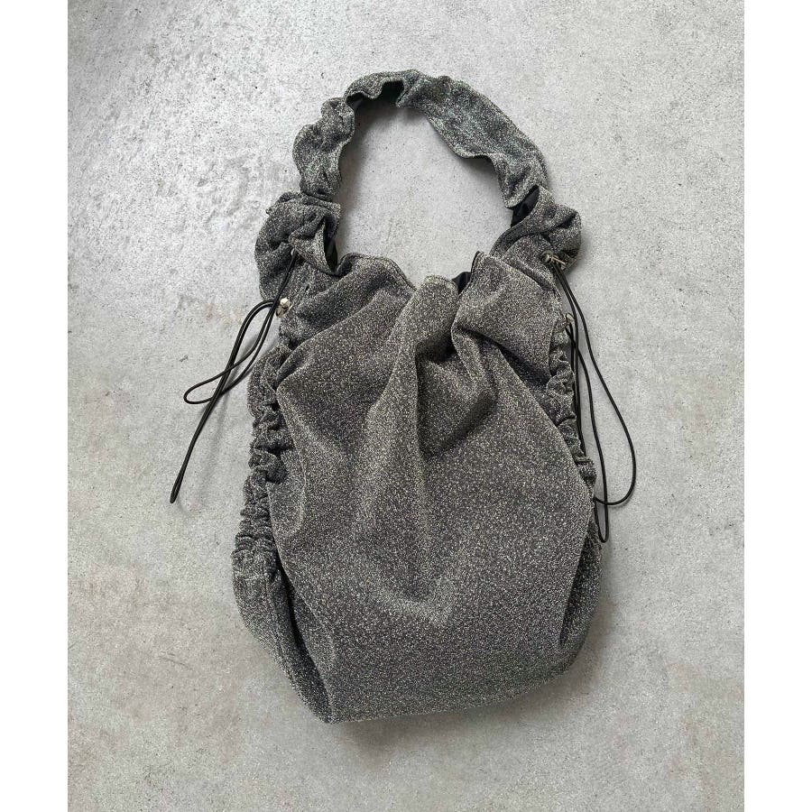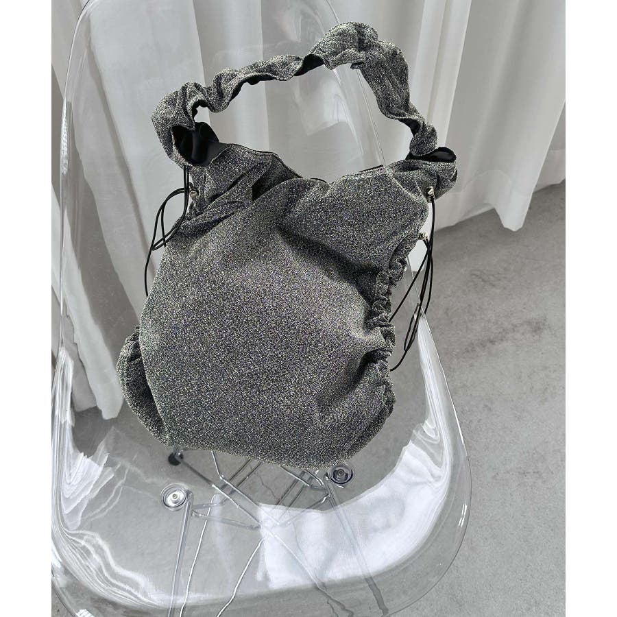 ・ラメ糸が編み込まれた生地で仕立てたショルダーバッグ。