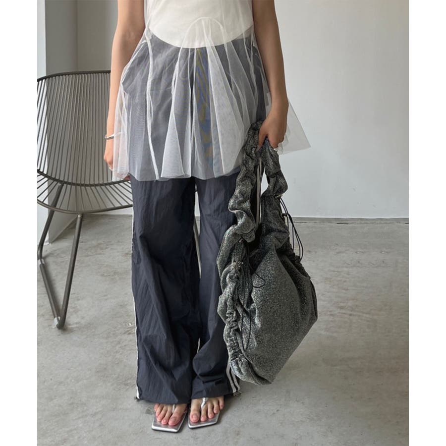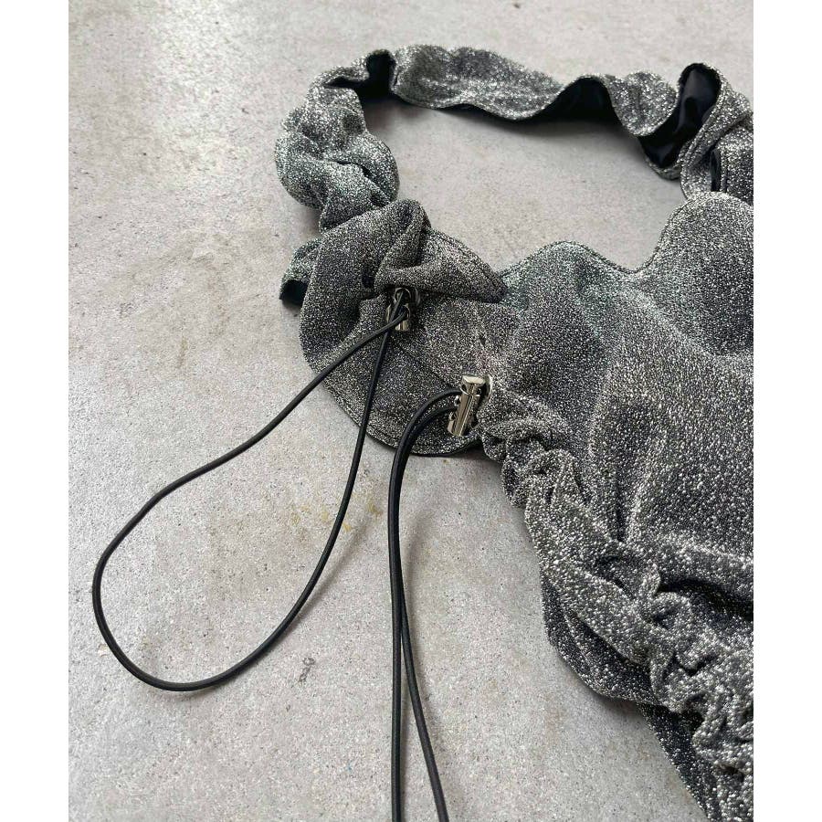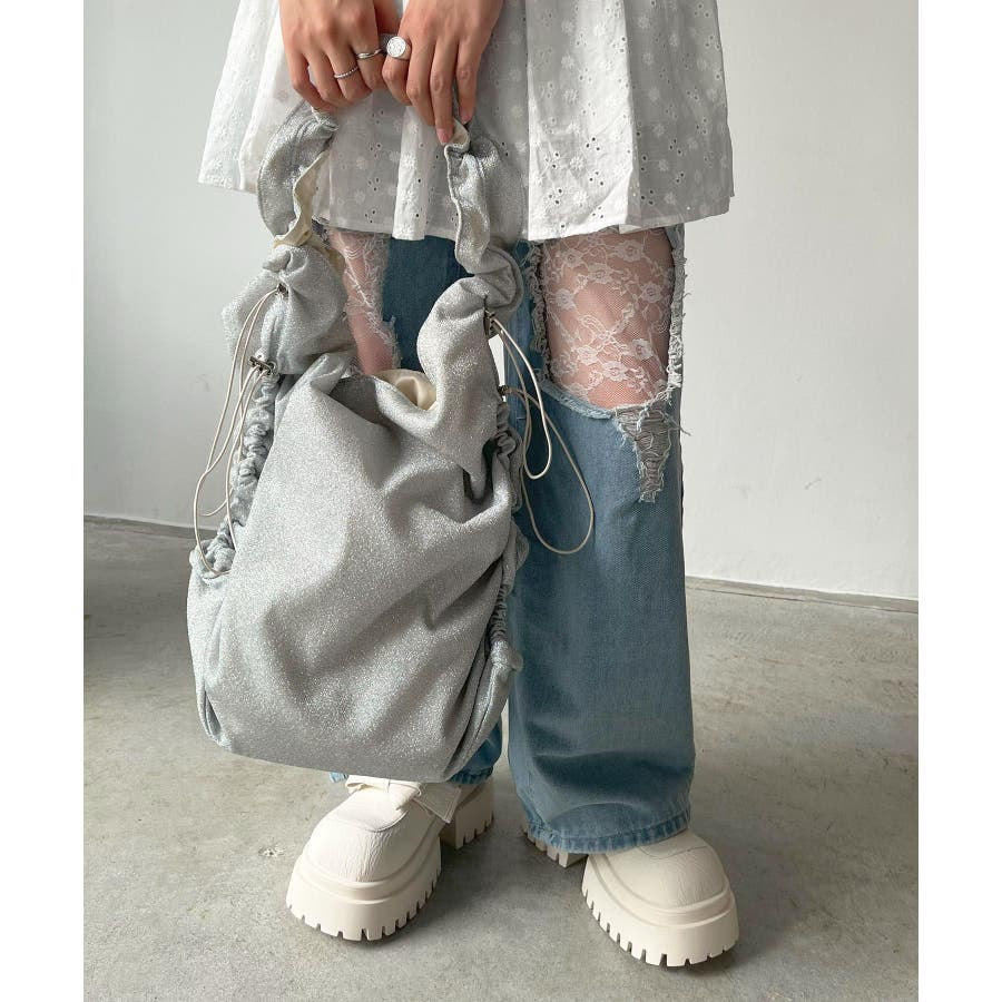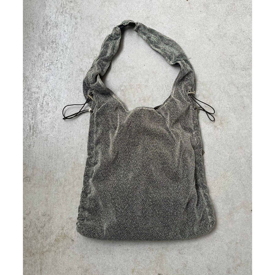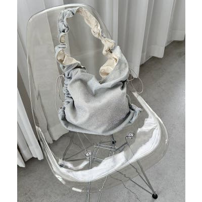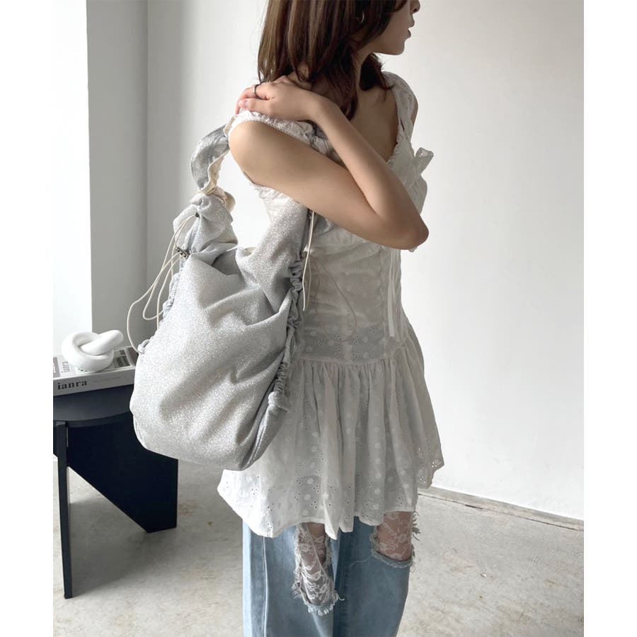 ・ラメ糸が編み込まれた生地で仕立てたショルダーバッグ。
